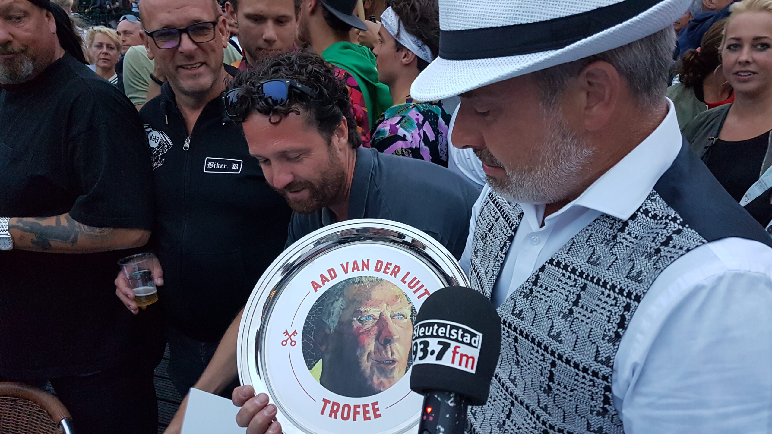 Chris de Waard sprak na afloop van de Peurbakkentocht met speakeer Erwin Roodhart, organisator Nilles Raken en Ruud Poeliejoe van De Stamgasten die niet alleen de eerste prijs wonnen bij de particulieren, maar ook de Aad van der Luit wisseltrofee.