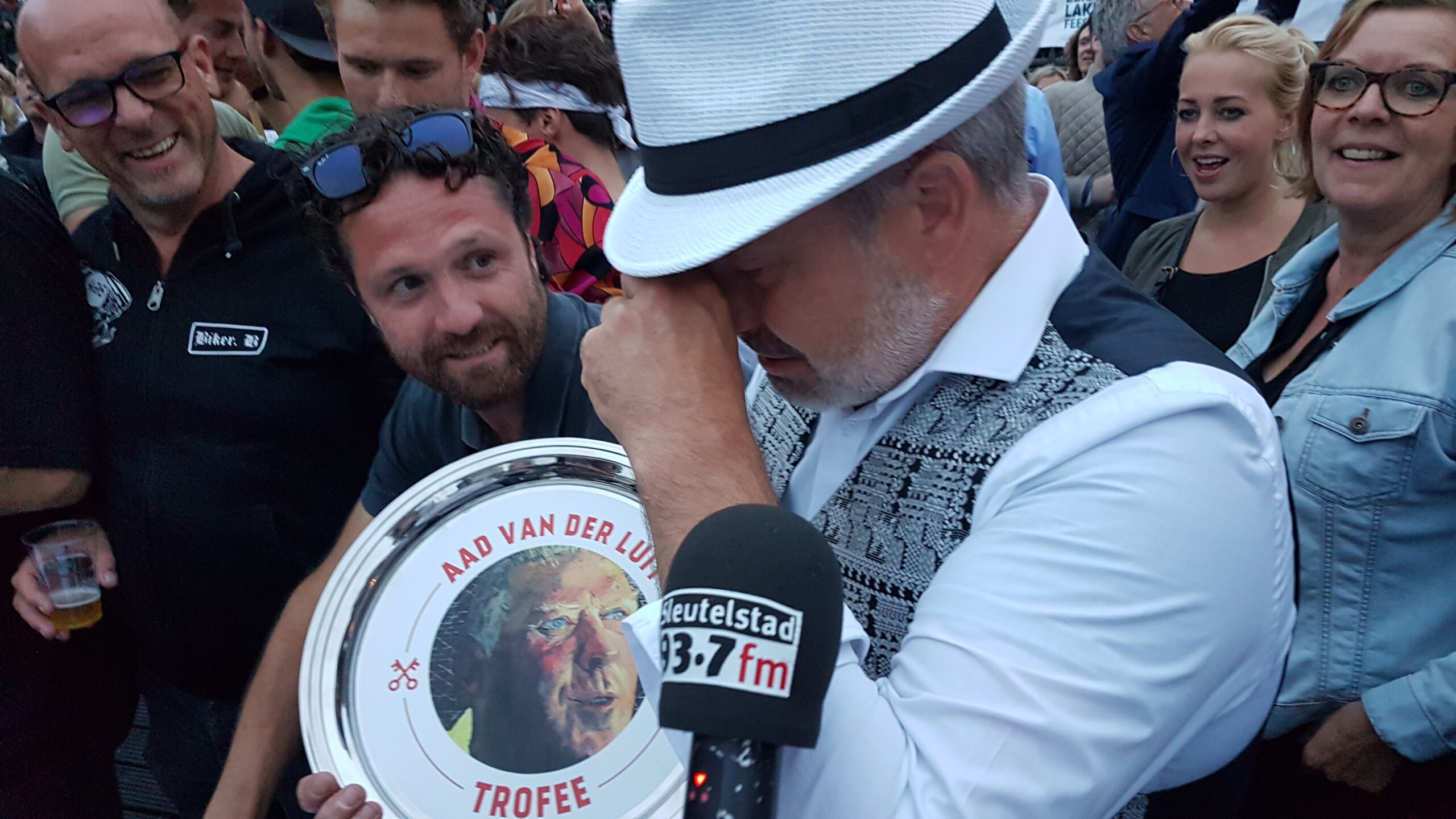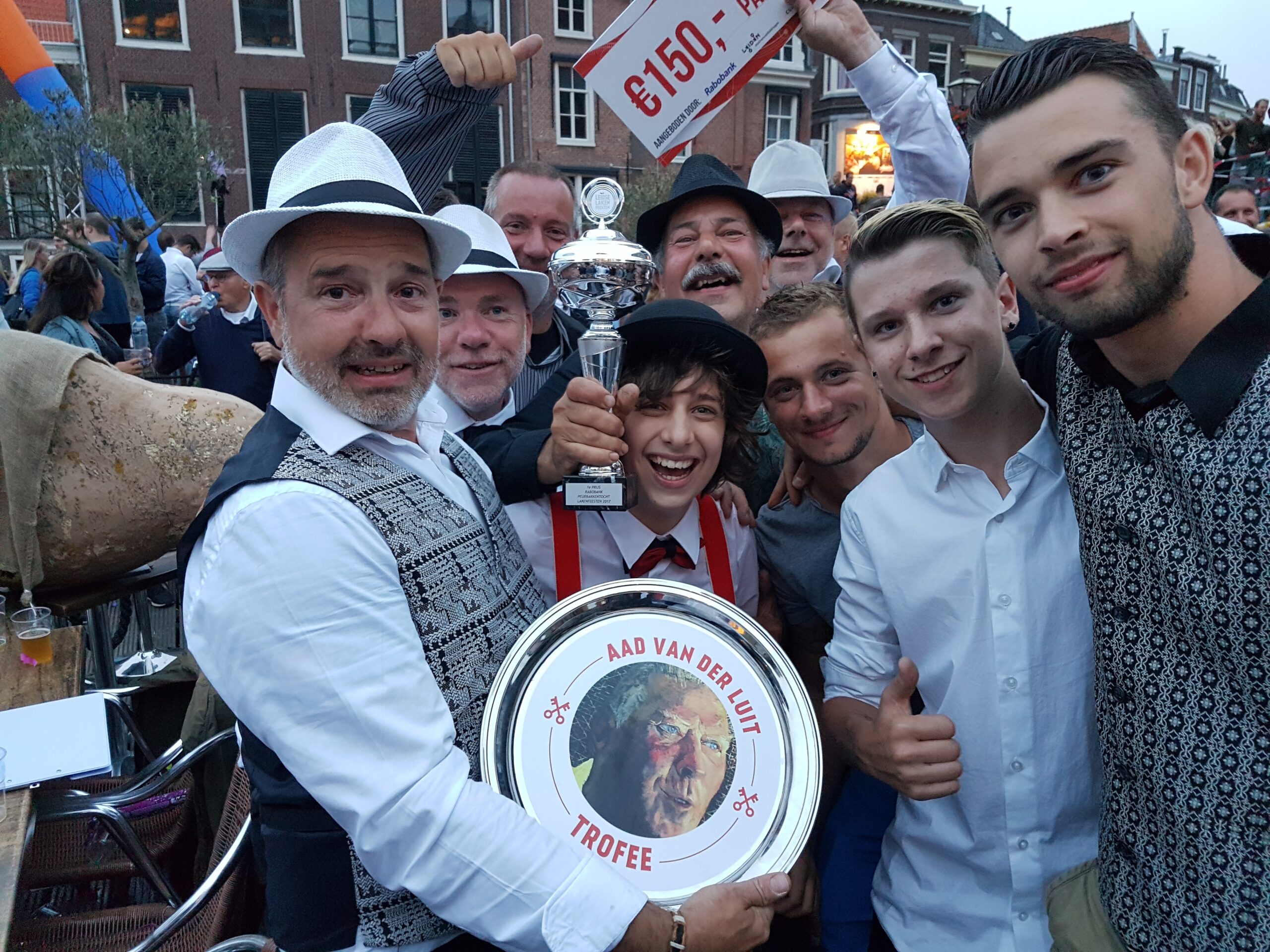 Vriendengroep De Stamgasten won vrijdagavond niet alleen de eerste prijs in de categorie particulieren, ook kregen ze, zzeer verdiend, de naar de in mei overleden Aad van der Luit vernoemde wisseltrofee. Het zorgde voor tranen van ontroering bij Ruud Poeliejoe. “Toen we langs Aad’s huis voeren hielden we het ook al niet droog.”