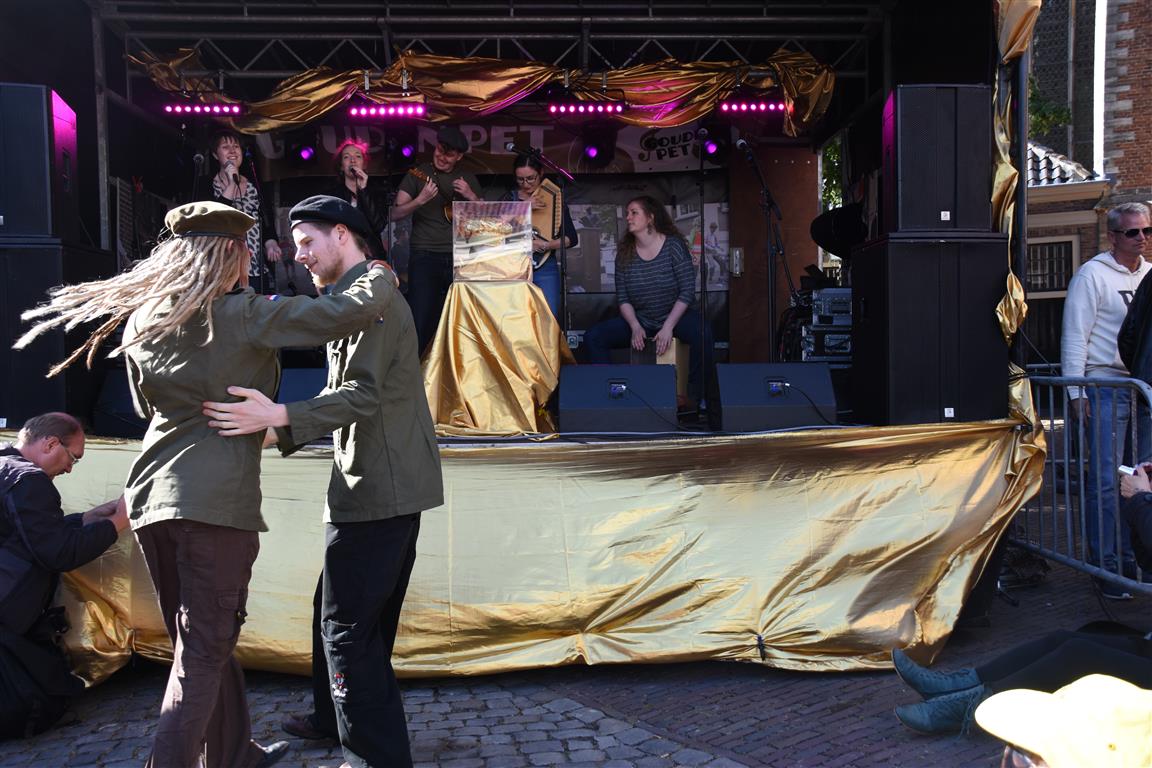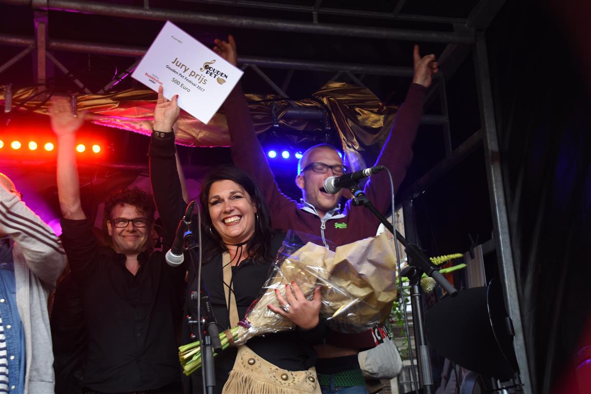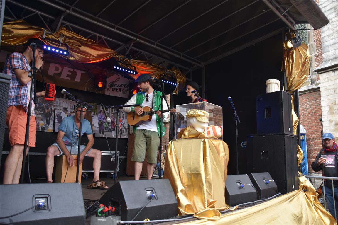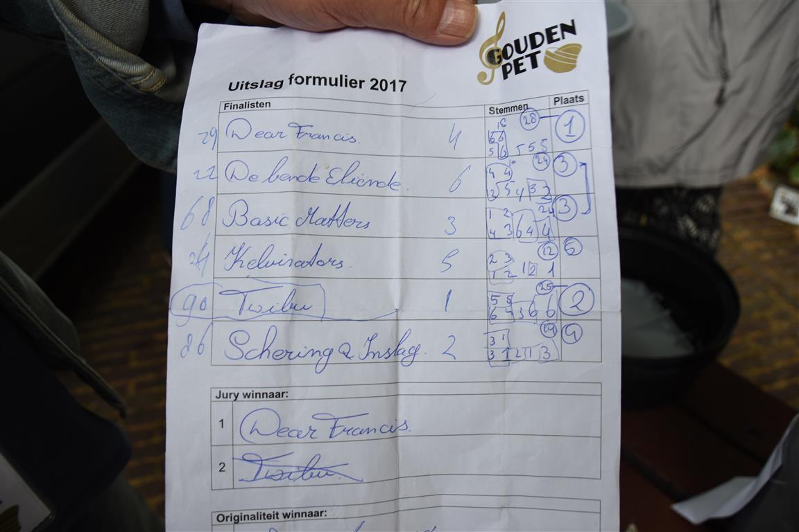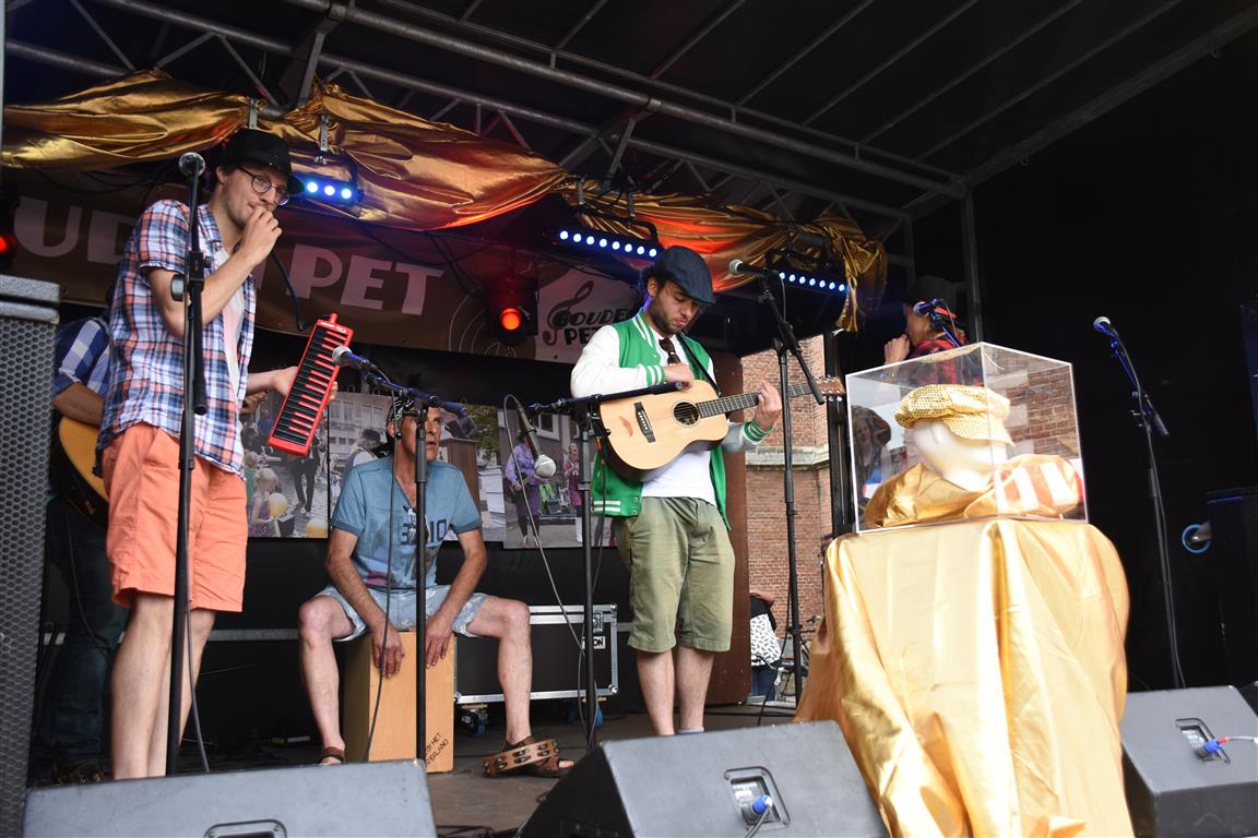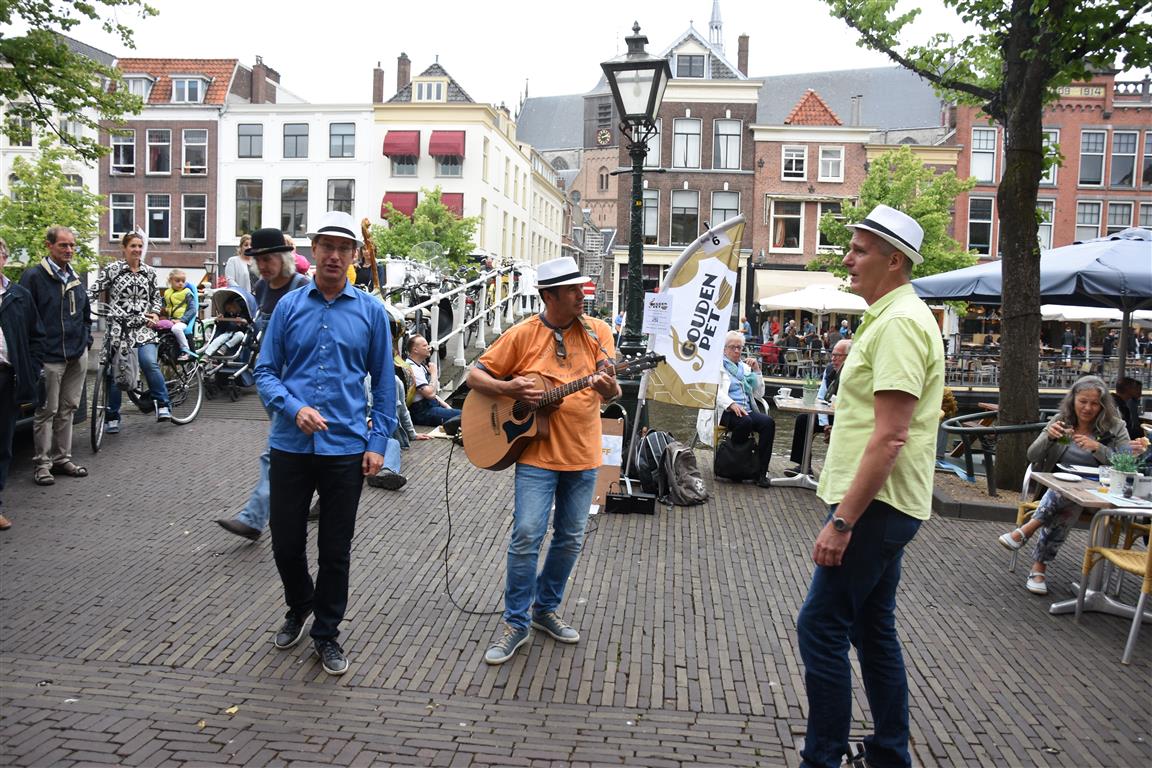 De 31e editie van het Gouden Pet Festival is gisteren gewonnen door Twibv. Zij gingen er met de publieksprijs en dus ook de Gouden Pet vandoor. Dear Francis won de juryprijs en 8 Meter Meid werd bekroond met de originaliteitsprijs. Ondanks de regen was het gezellig druk bij de optredens van de veertig straatmuzikanten. Alle muzikanten speelden vier keer een half uur op diverse plaatsen rondom De Nieuwe Rijn en het Hooglandse kerkplein.