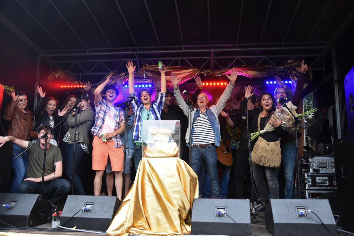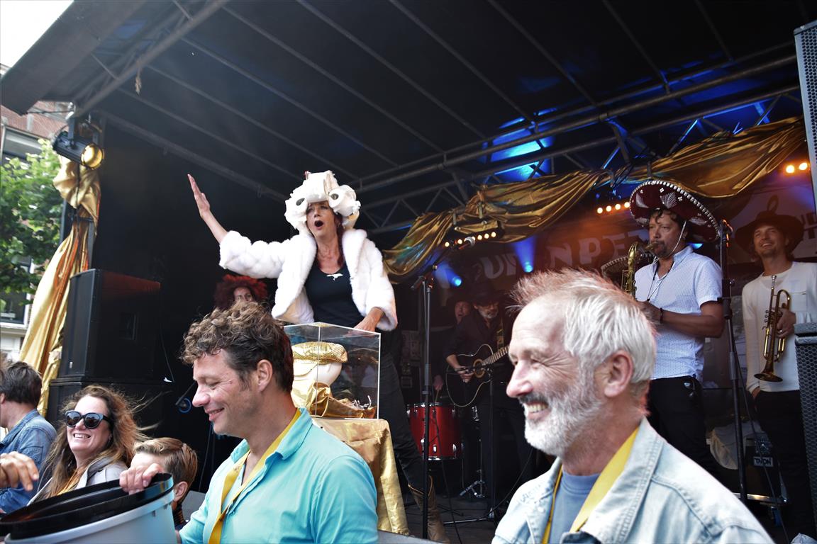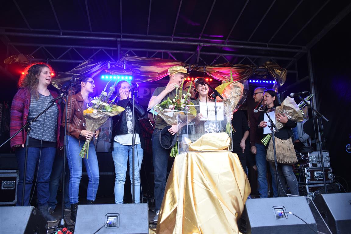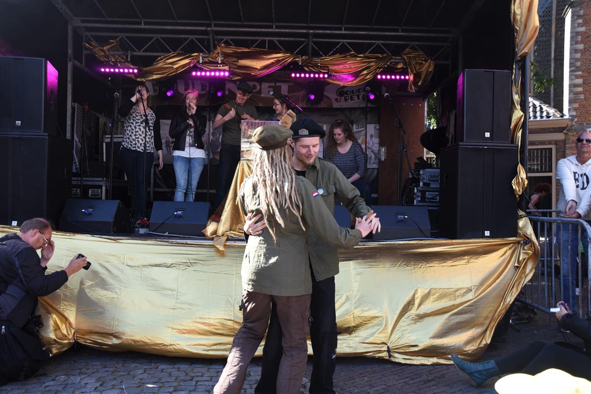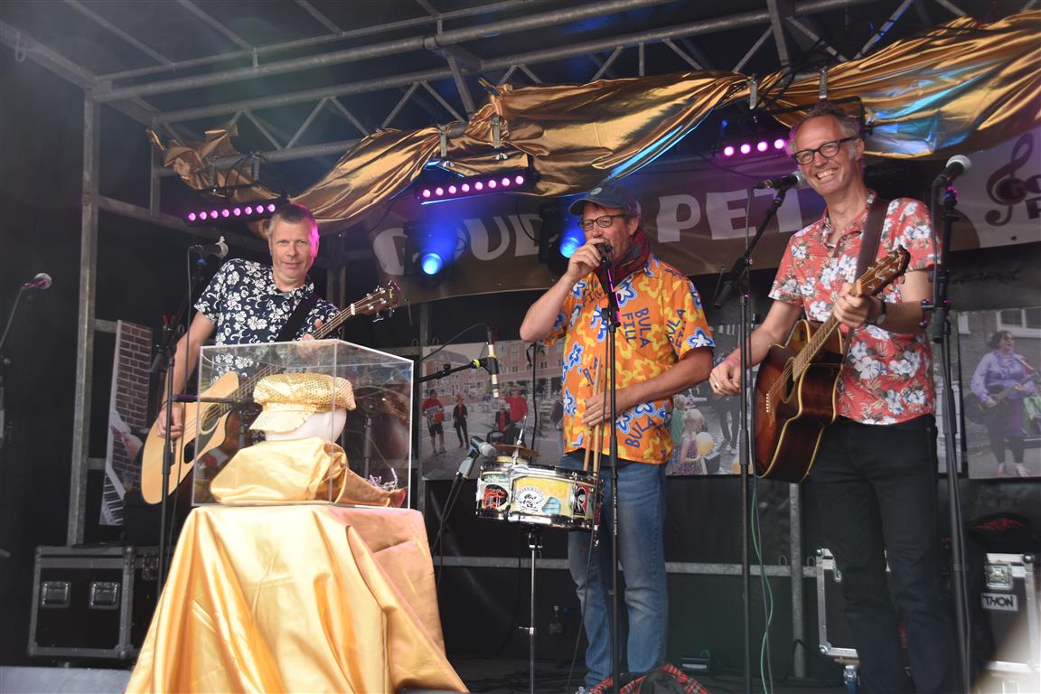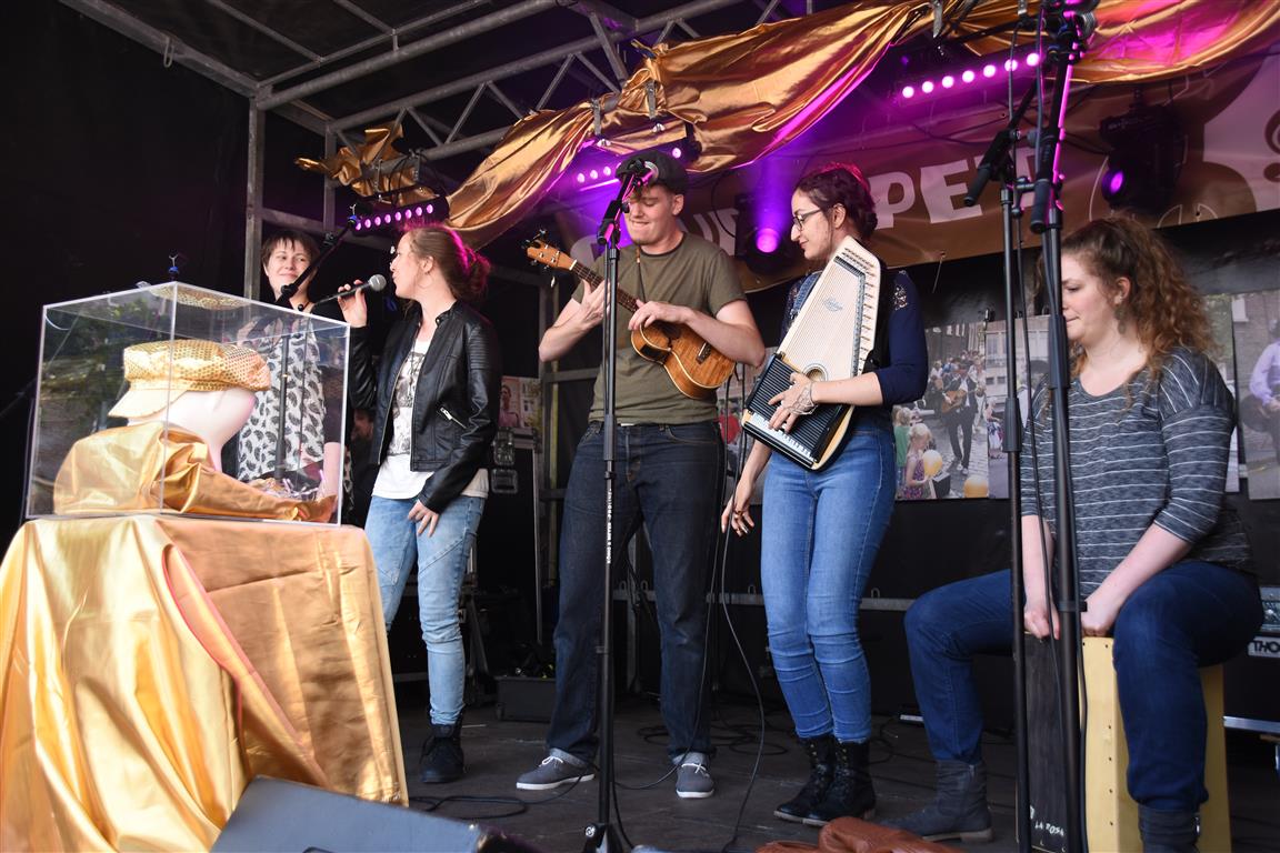 De 31e editie van het Gouden Pet Festival is gisteren gewonnen door Twibv. Zij gingen er met de publieksprijs en dus ook de Gouden Pet vandoor. Dear Francis won de juryprijs en 8 Meter Meid werd bekroond met de originaliteitsprijs. Ondanks de regen was het gezellig druk bij de optredens van de veertig straatmuzikanten. Alle muzikanten speelden vier keer een half uur op diverse plaatsen rondom De Nieuwe Rijn en het Hooglandse kerkplein.