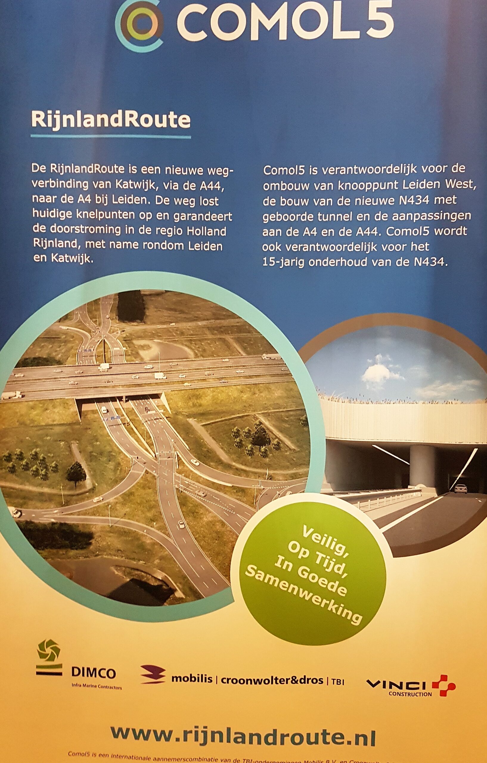 De voorbereidende werkzaamheden voor de aanleg van de Rijnlandroute (RLR) gaan deze zomer van start. Gisteravond maakte COMOL5 – de naam verwijst naar de vijfde aanbesteding voor ondergronds werk die de combinatie van samenwerkende bedrijven heeft gewonnen – die de klus gaat klaren de planning bekend tijdens een inloopavond voor belanghebbenden in Hotel Leiden aan de Haagse Schouwweg. Vanavond is er nog een tweede bijeenkomst. Dan van 19.00 uur tot 21.00 uur in de Tuin van de Smid in Polderpark Cronesteyn.
