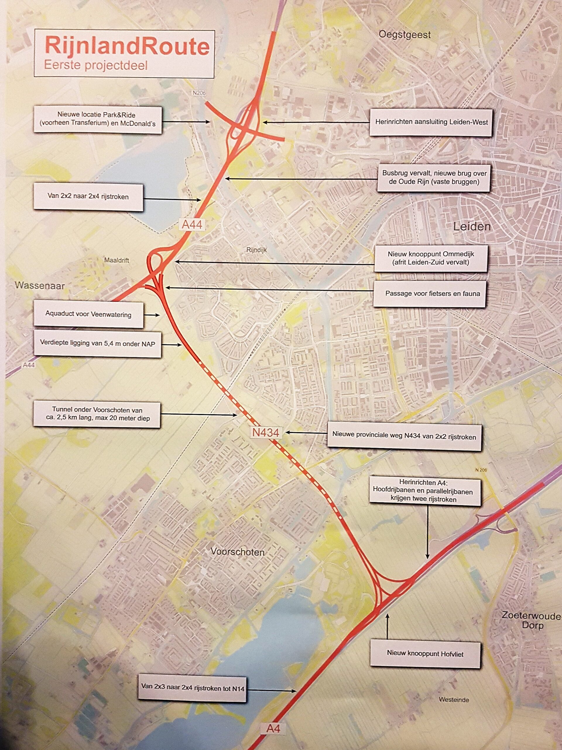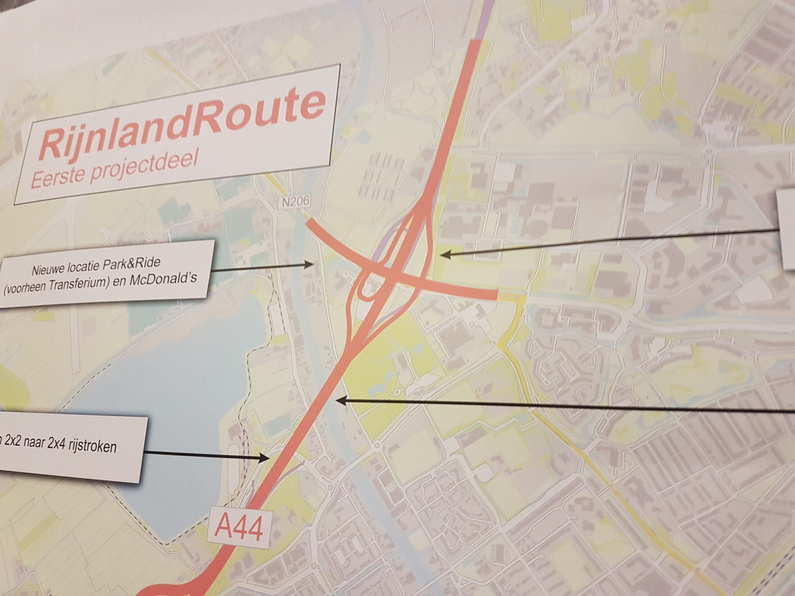 Even verderop, bij de Plesmanlaan, start eind dit jaar ook het werk voor een enorme klus. De zogenaamde ‘Knoop Leiden West’. Dat is de aansluiting op de A44 bij Transferium ’t Schouw A44 dat daarvoor trouwens moet wijken. Evenals het restaurant met McDrive van McDonalds. Dat krijgt een nieuwe plek, even verderop langs het water van de Oude Rijn.