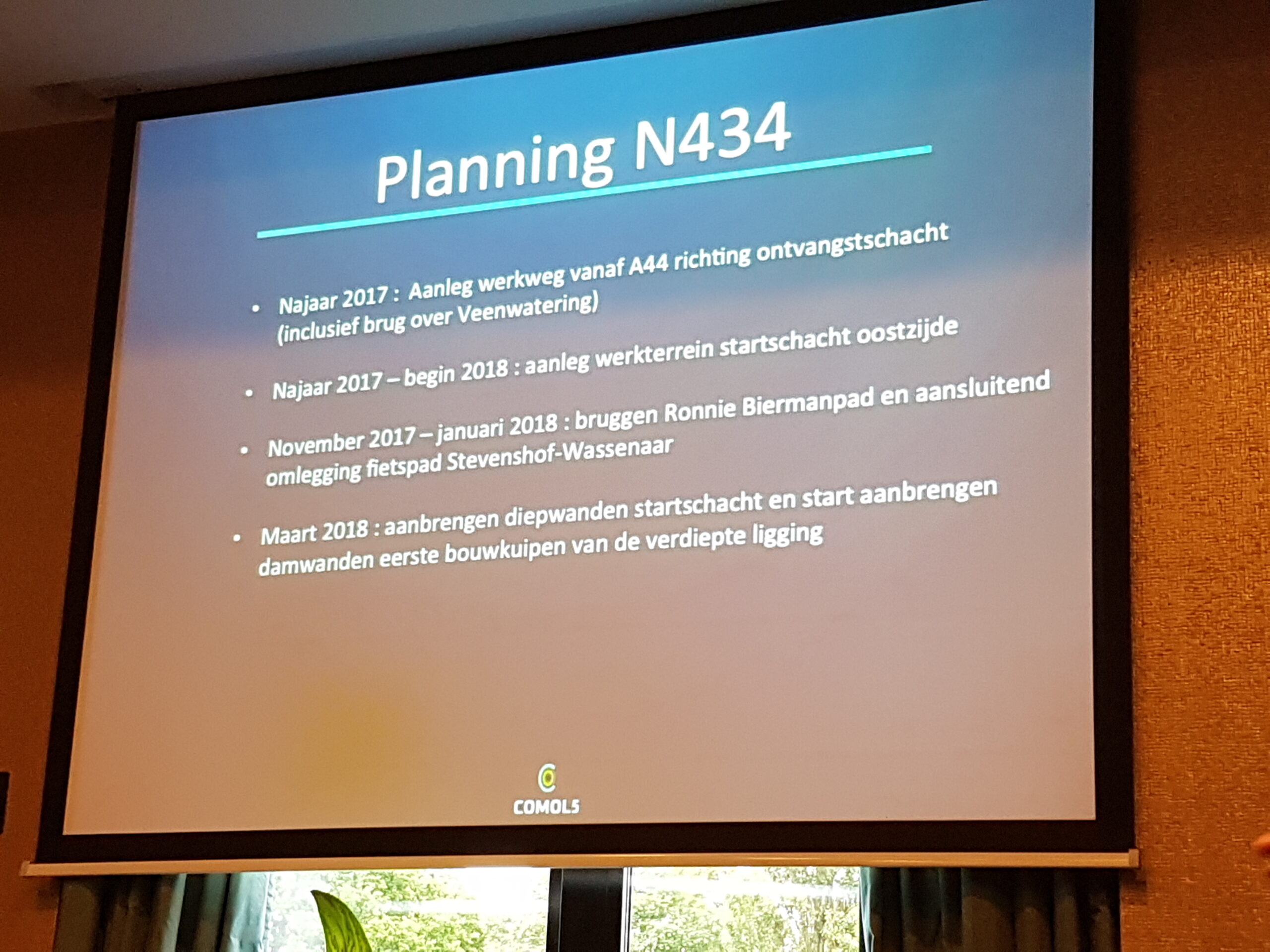 In september start COMOL5 dan met de aanleg van de bouwweg naar de startschacht. Dat is de plek in de Oostvlietpolder waar een reusachtige boormachine de grond in gaat. Die boor gaat maandenlang onafgebroken aan de slag om een tunnel onder Voorschoten door de graven. Met ongeveer vijftien meter per dag en tot twintig meter diep.