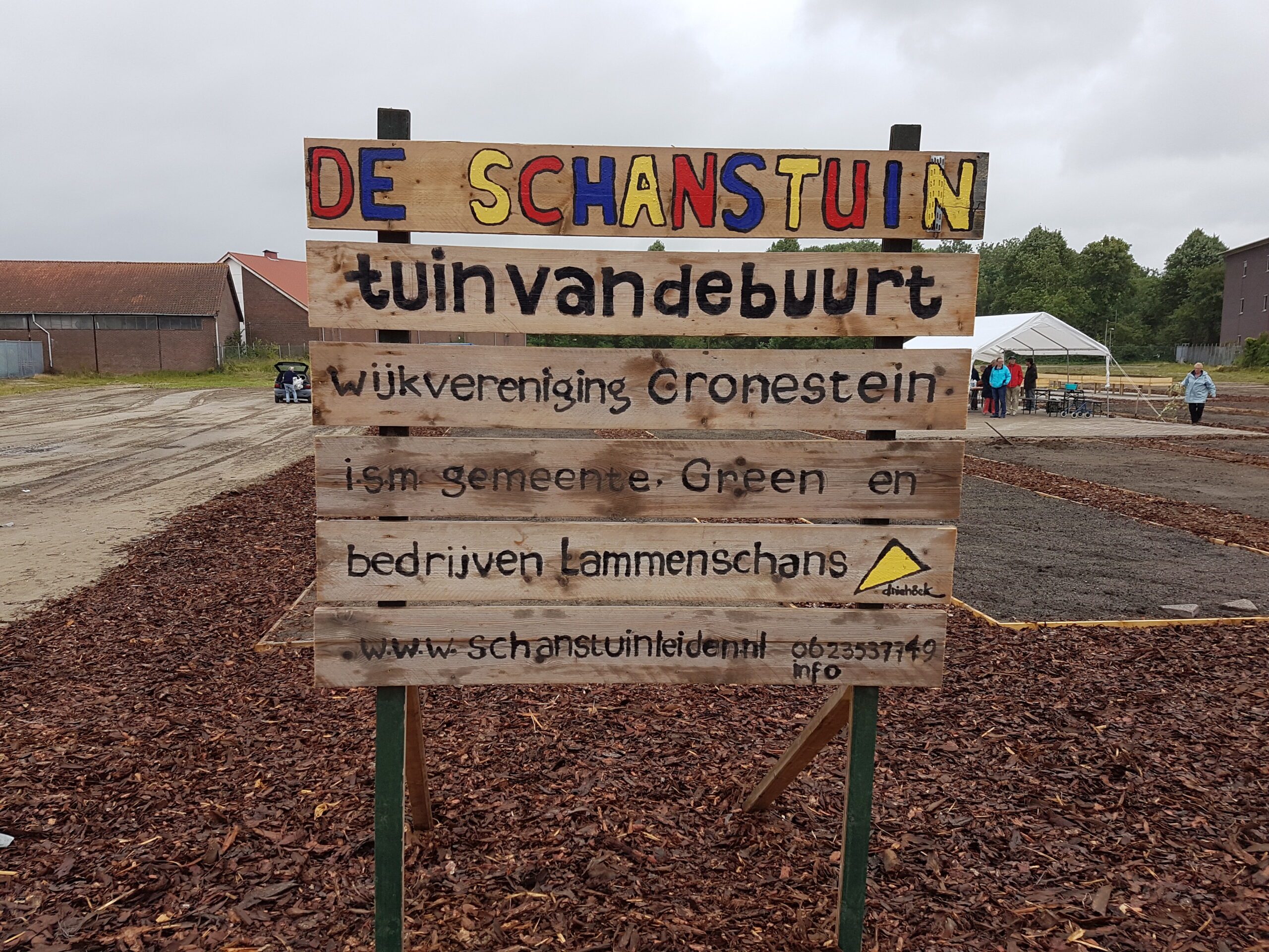 Zaterdagmorgen is in het bijzijn van enkele tientallen omwonenden de Schanstuin geopend op het voormalige Avery Dennison-terrein langs de Lammenschansweg. Sinds dat bedrijf verhuisde naar het Leiden Bio Science Park en de oude gebouwen gesloopt werden, lag het terrein braak.