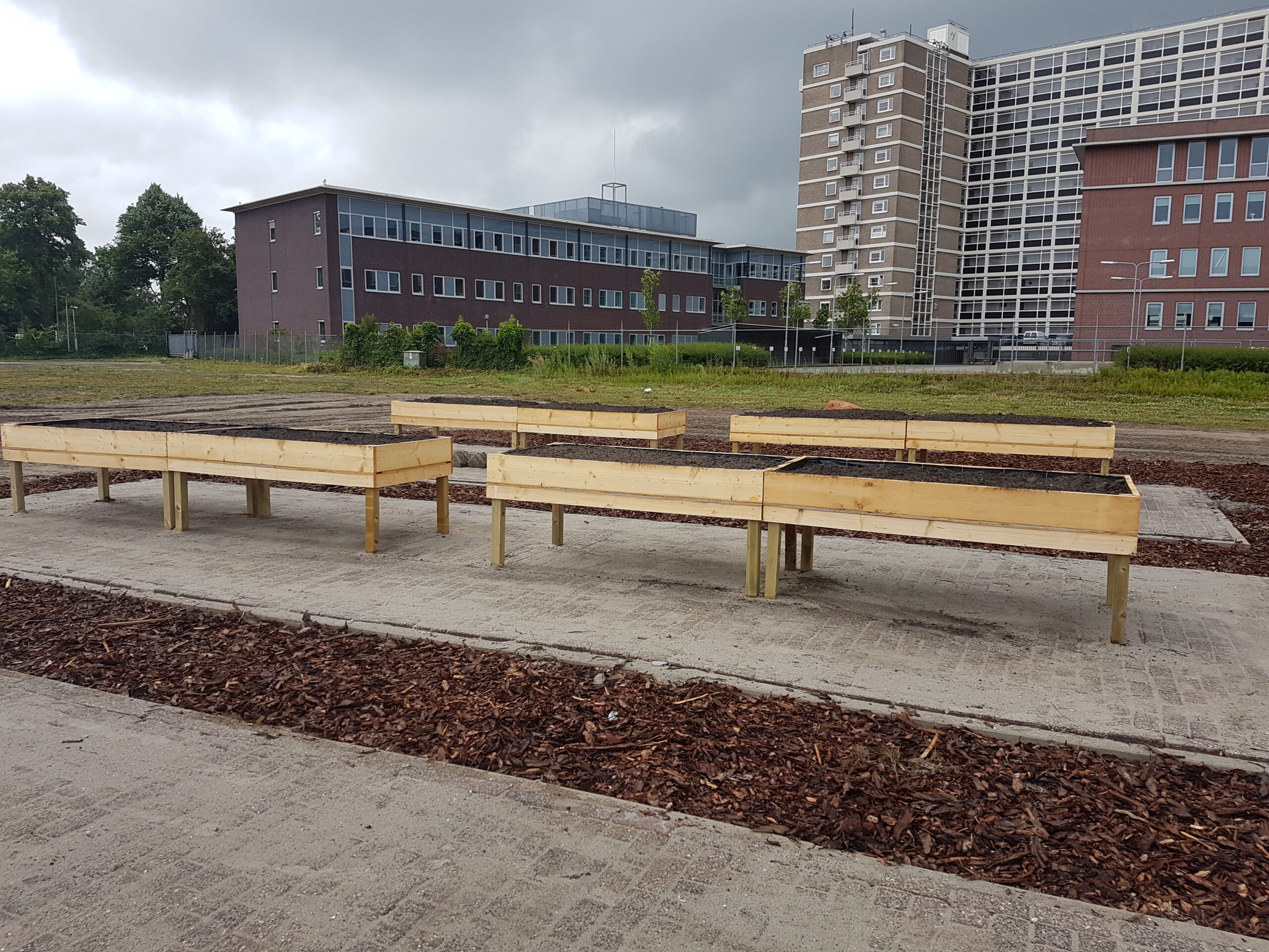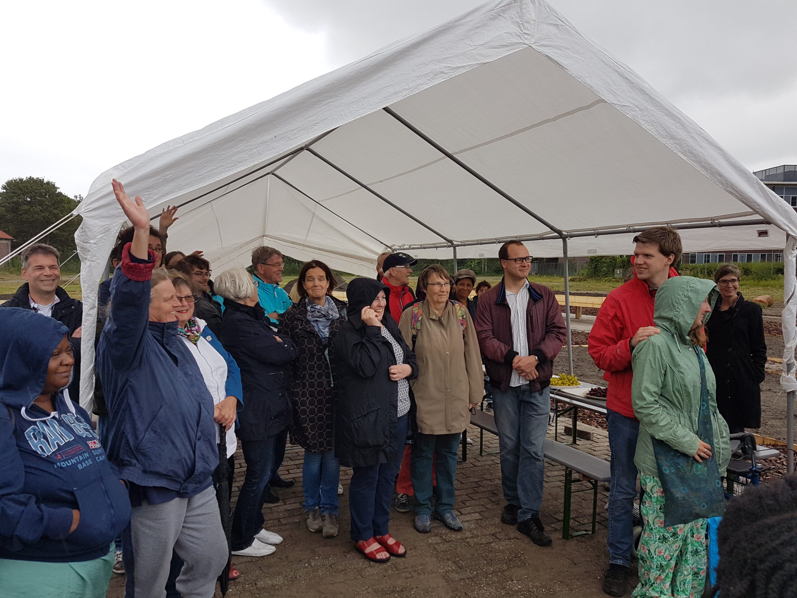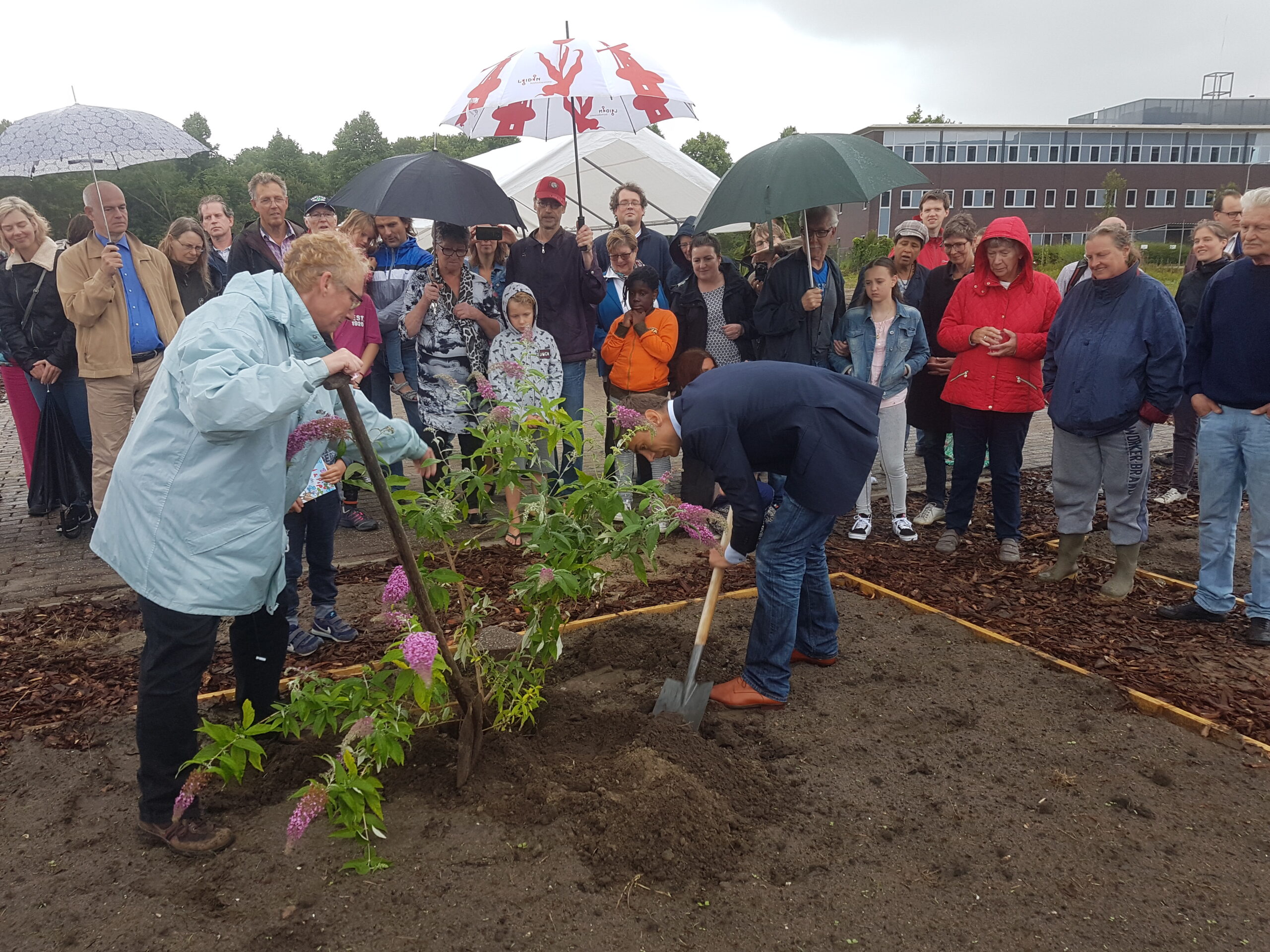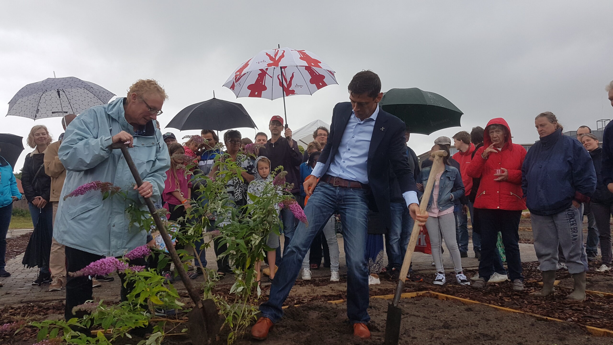 Die opening vond plaats in de regen: “Alleen vandaag is water geen probleem,” zo benoemde Groenendaal het enige echte probleem dat nog rest. Er is op het terrein geen water en dat is wel nodig als je bloemen en planten wilt laten groeien en groente wilt verbouwen. Buurman Zirkzee Wonen en Slapen zorgt vrijwel zeker voor de oplossing: “Ik denk dat we wel een buitenkraan kunnen aanleggen,” zei eigenaar Willem-Jan Zirkzee die ook even kwam kijken bij de feestelijke ingebruikname.