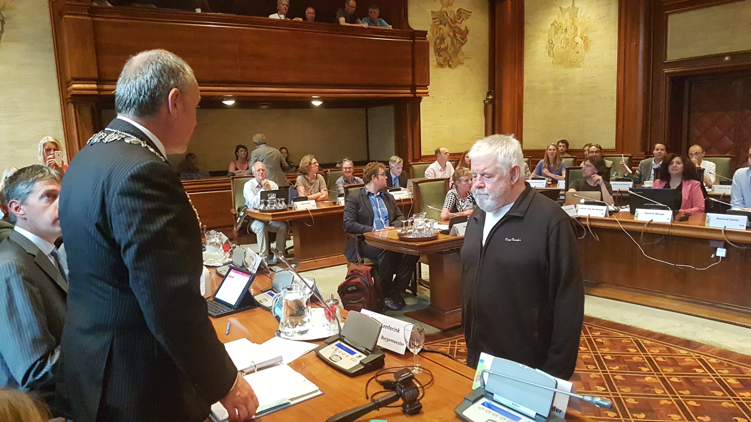 Donderdagavond Willy Sorel tijdens de raadsvergadering beëdigd tot raadslid voor Leefbaar Leiden. hij neemt voor die partij zitting in de commissies Leefbaarheid & Bereikbaarheid en Onderwijs & Samenleving.