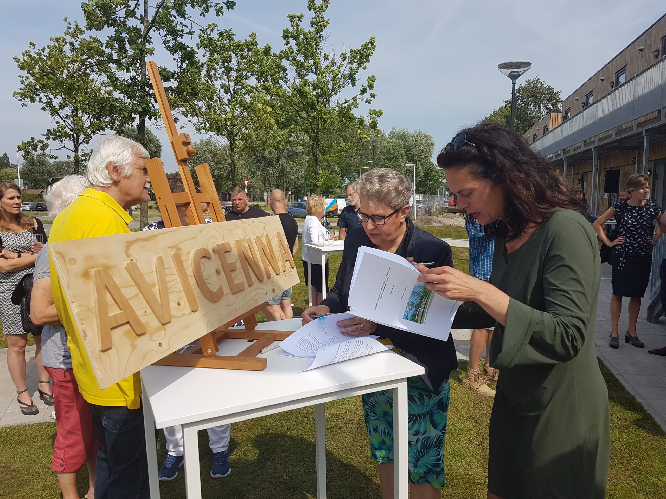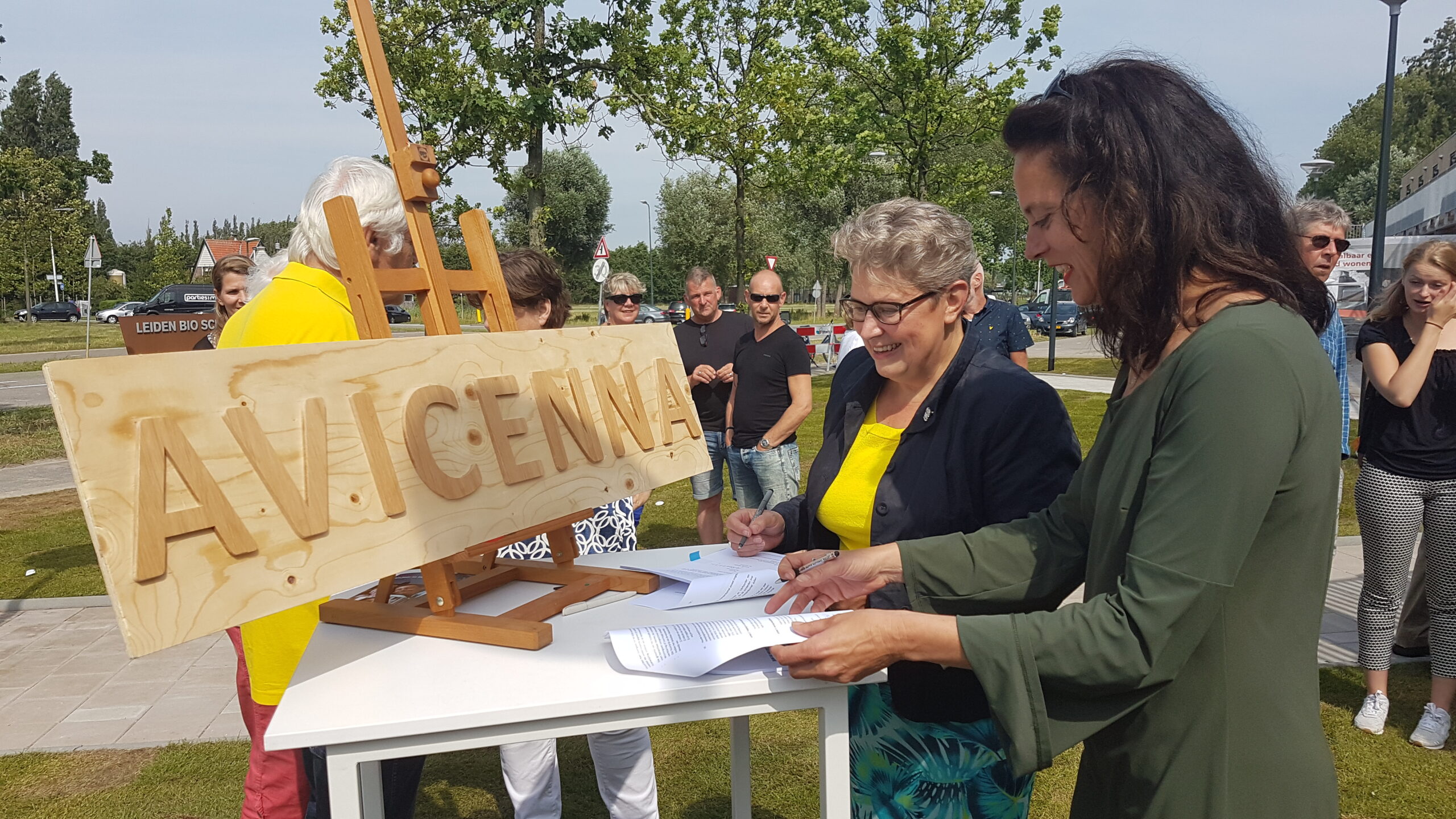 Bij de feestelijke oplevering werd ook een naambord onthuld van het nieuwste straatje in Leiden, het Avicennapad, genoemd naar een islamitische geleerde van Perzische afkomst. Ook tekenden woningcorporatie Portaal en Stichting de Binnenvest een huurcontract voor acht units die de binnenvest op haar beurt gaat onderverhuren aan daklozen die de opvang gaan verlaten en hier een nieuwe start kunnen maken.