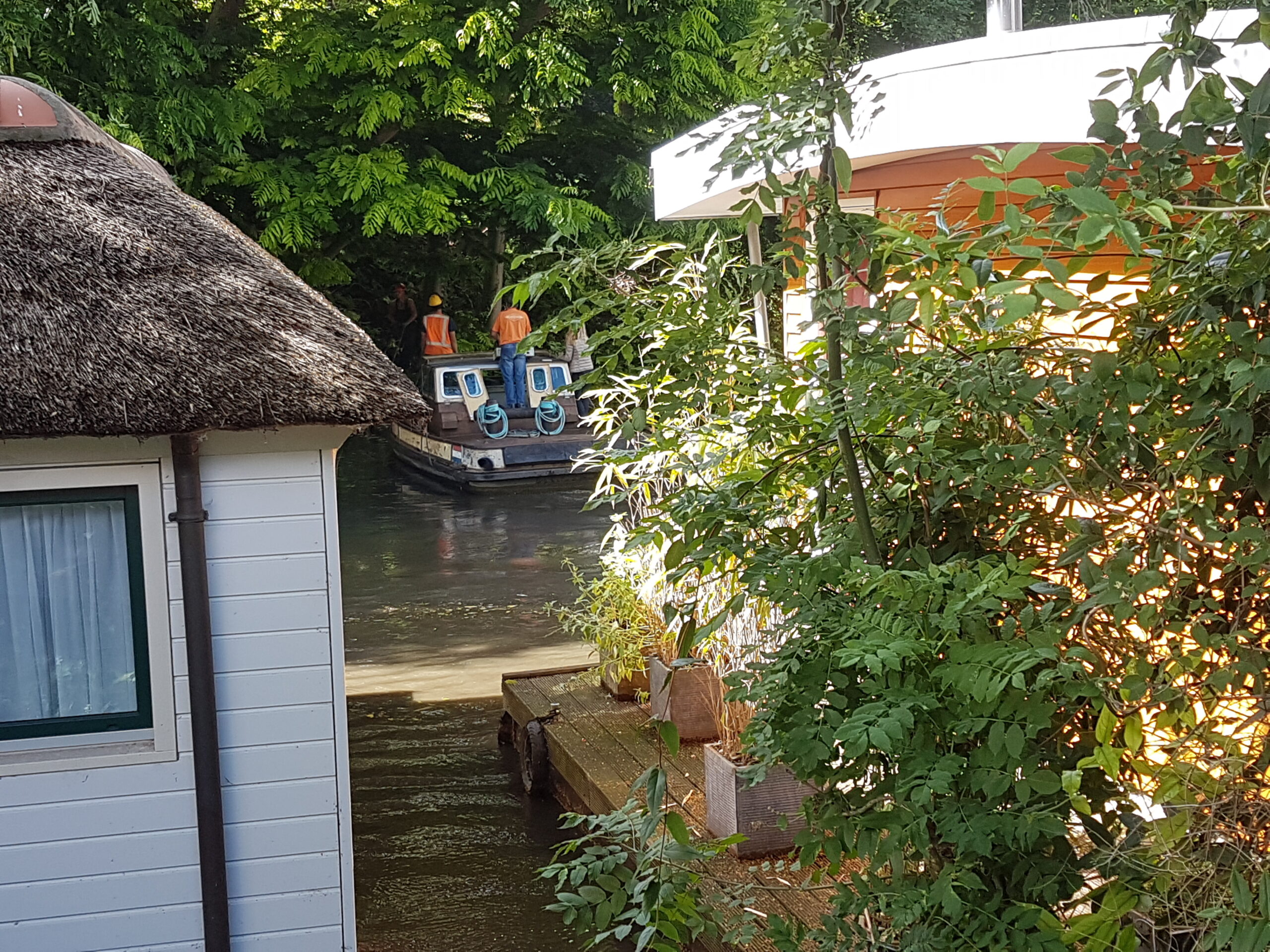 Op begraafplaats Groenesteeg zijn vanmiddag twee bomen omgegaan. Door de hevige regenval zakte een boom het water van de Zijlsingel in. In de val ging ook een tweede boom omver. De gemeente gaat de bomen uit het water halen. Boten kunnen nog net passeren tussen de woonboten ter plaatse en de omgevallen bomen.