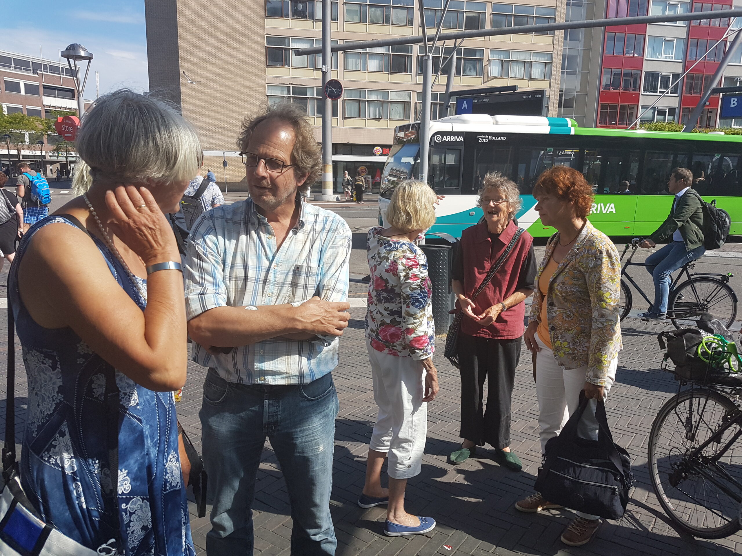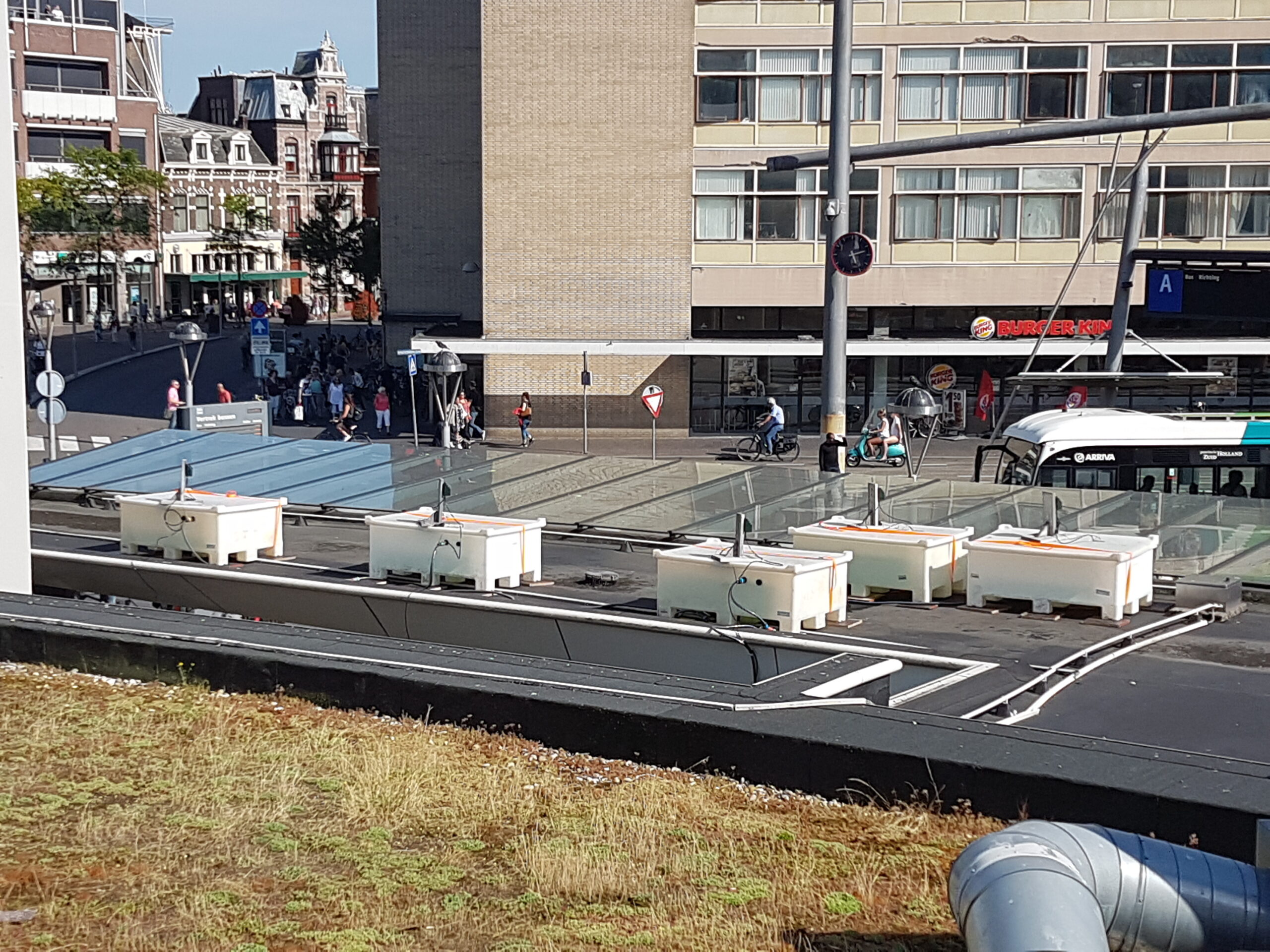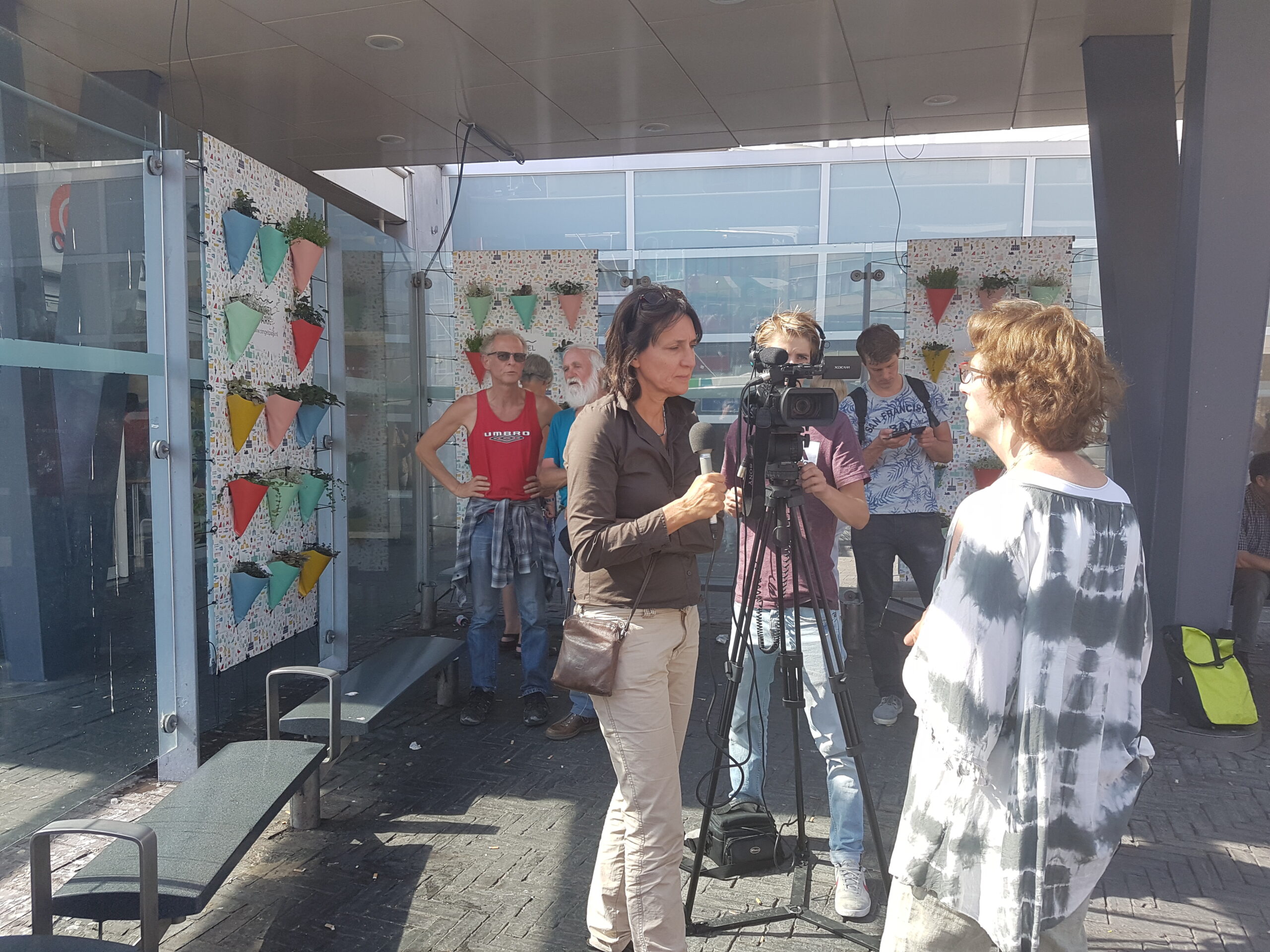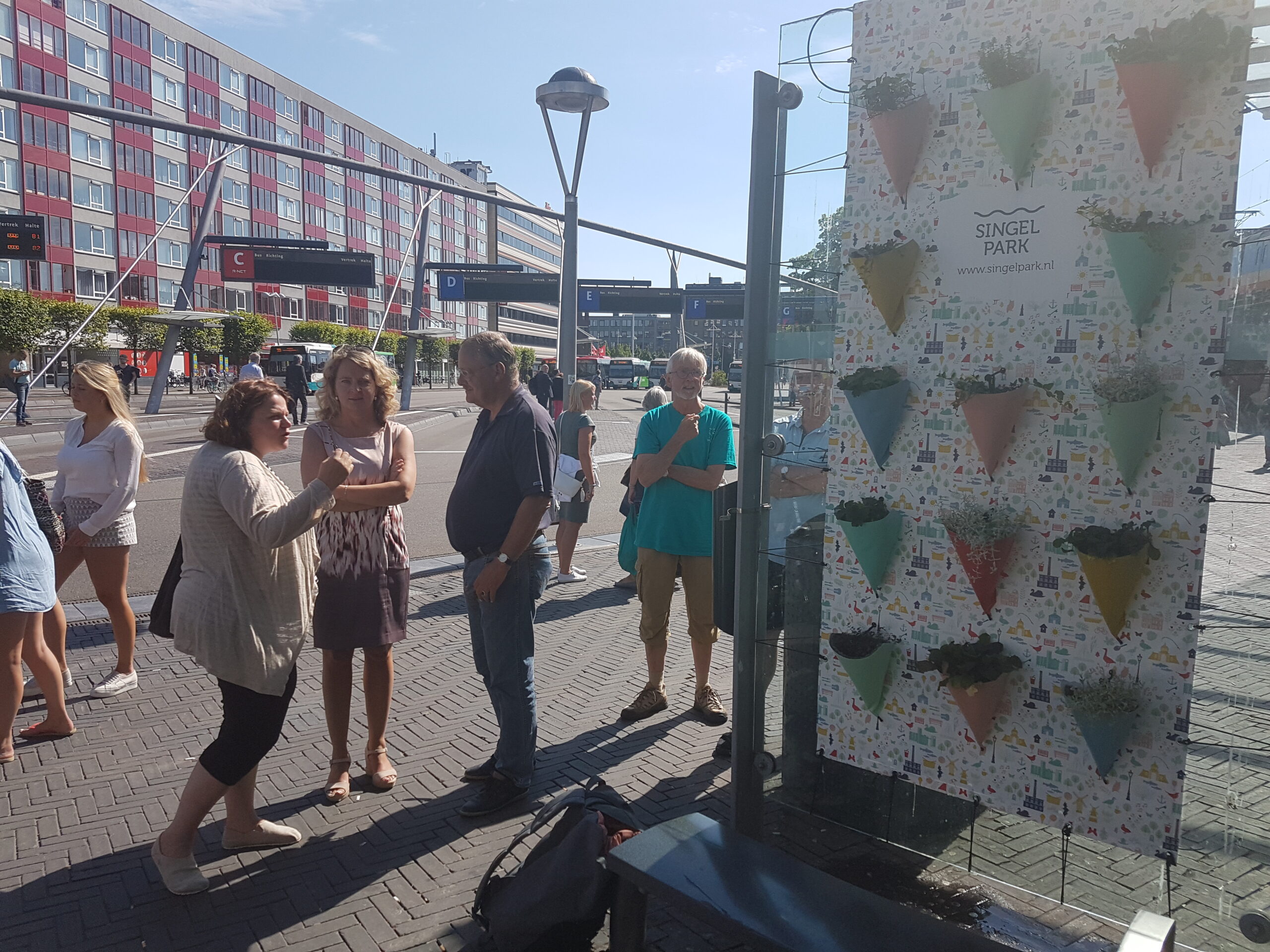 Vanmiddag zijn bij het busstation voor Leiden Centraal vijf postertuinen onthuld door de Vrienden van het Singelpark. De postertuinen zijn een alternatief voor geveltuintjes op plekken waar die niet aangelegd kunnen worden. De versteende stationsomgeving is nu de eerste plek in Leiden waar deze tuinen zijn opgehangen.