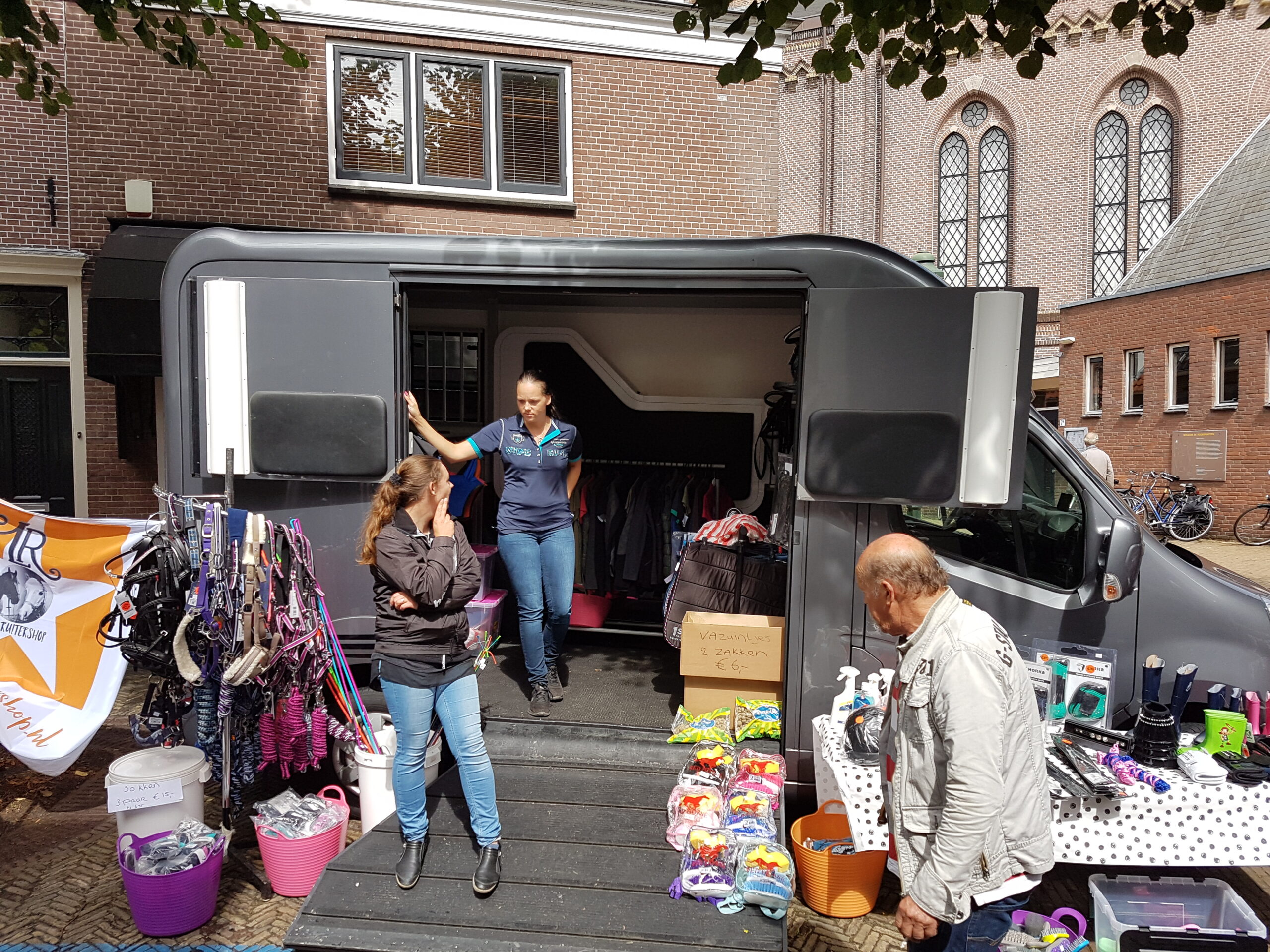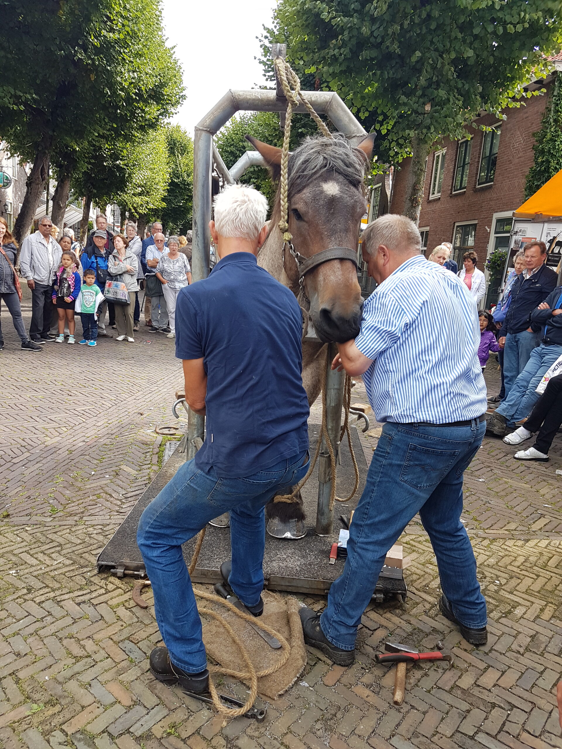De paardenmarkt bracht vanmorgen al vroeg veel volk op de been in Voorschoten. De verplaatsing naar de laatste zaterdag van juli blijkt een gouden greep.