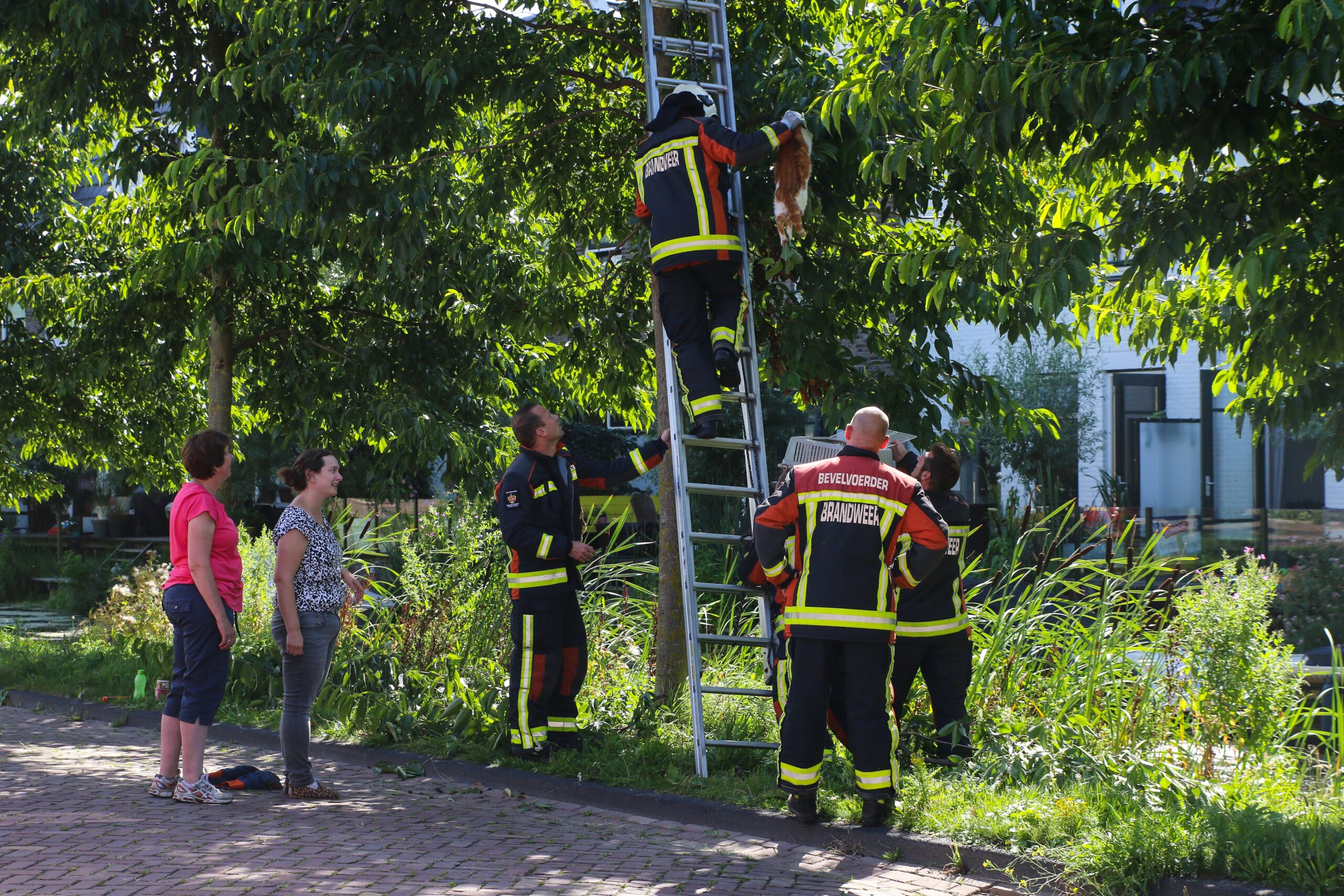 Vanmiddag heeft de brandweer een kat uit de boom gehaald. Het diertje was aan de Evenementenlaan in Leiden Groenoord Noord in de boom geklommen en weigerde naar beneden te komen. Met behulp van een ladder heeft de brandweer de kat uit de boom weten te krijgen, waarna het dier is herenigd met het baasje