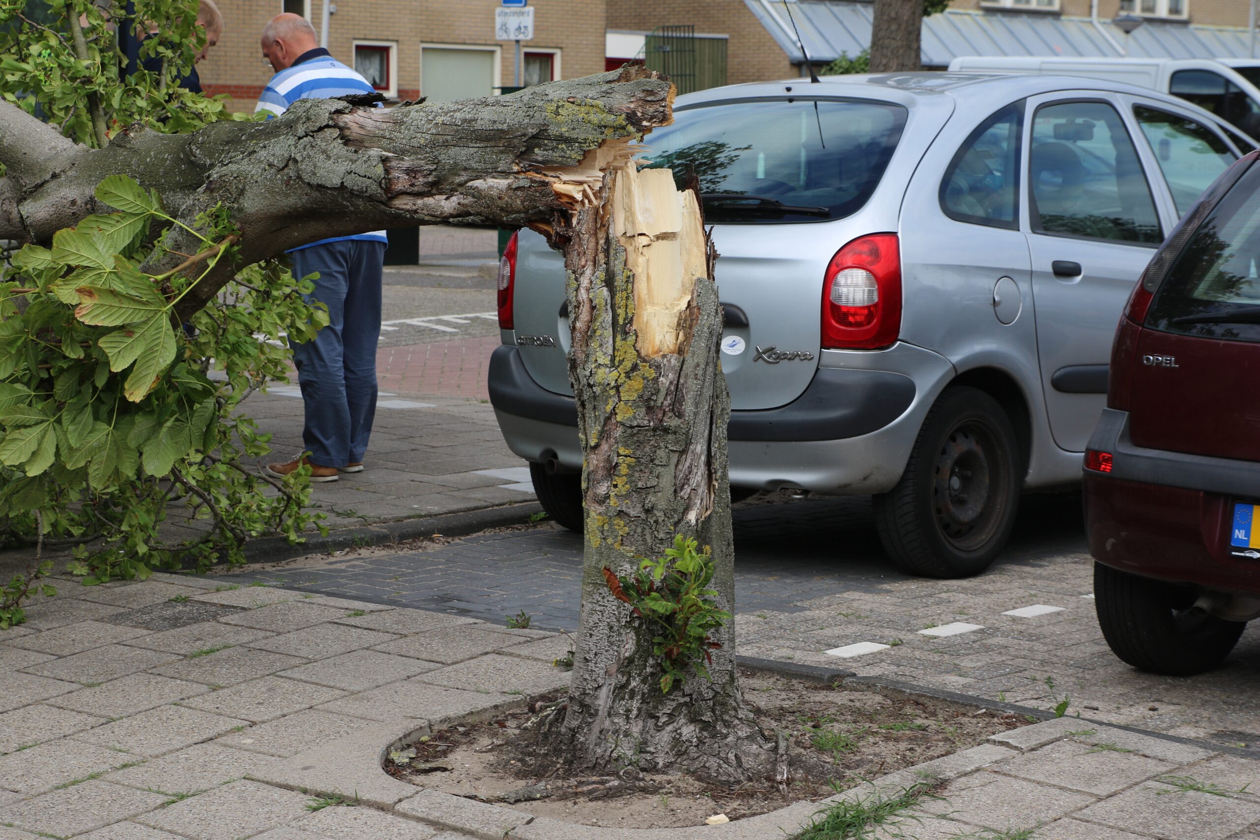 Onder meer op de Sumatrastraat ging het mis. Een boom brak door de wind finaal doormidden en raakte daarbij een auto. Die raakte licht beschadigd. De brandweer heeft de boom in stukken gezaagd. Niemand is gewond geraakt.