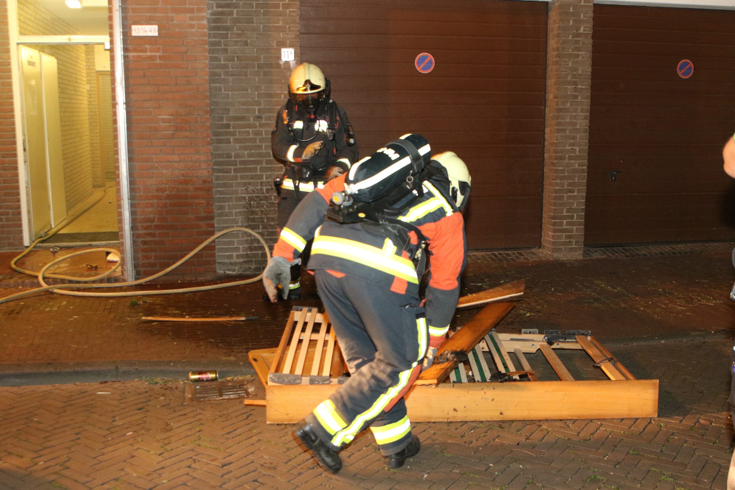 De melder van de brand stond nog in het portiek toen de hulpdiensten arriveerden. De politie heeft hem daar voor zijn eigen veiligheid uit gehaald.