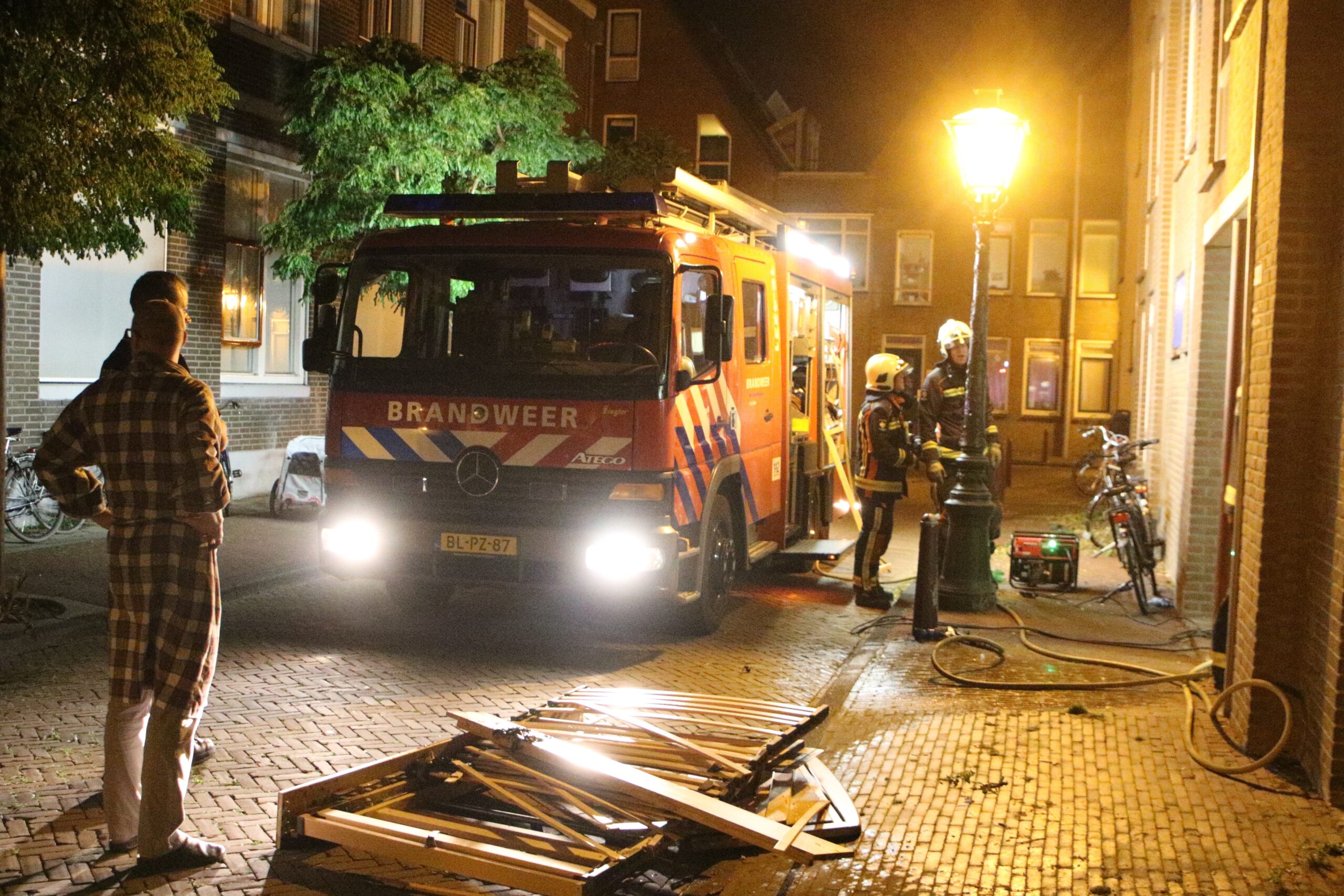 In een portiek van een appartementengebouw in de Waardkerksteeg in Leiden is gisteravond laat een oud bed in brand gestoken. Al snel was het hele portiek daardoor in rook gehuld. De brandweer kwam ter plaatse, maar hoefde niet meer te blussen, het houten beddenframe was al zo goed als uit. Wel heeft de brandweer het portiek geventileerd.