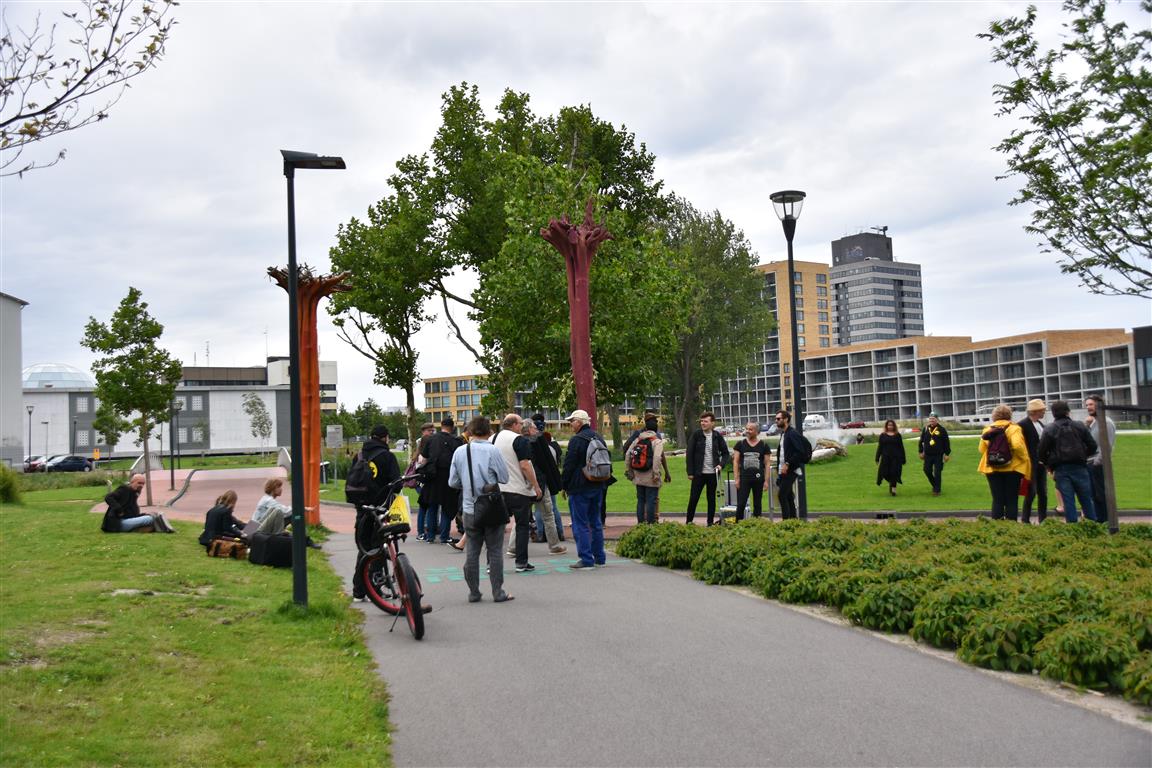 De Poëziebus met daarin 24 podiumdichters uit Nederland en België was zaterdag in Leiden. Door de hevige regenval liet het publiek het afweten. De eerste stop was bij Leiden Centraal, waar de dichters op diverse plekken hun gedichten voordroegen. Daarna werden er workshops gegeven bij de Tuin van Noord. De tour eindigde bij de Koornbeurs.