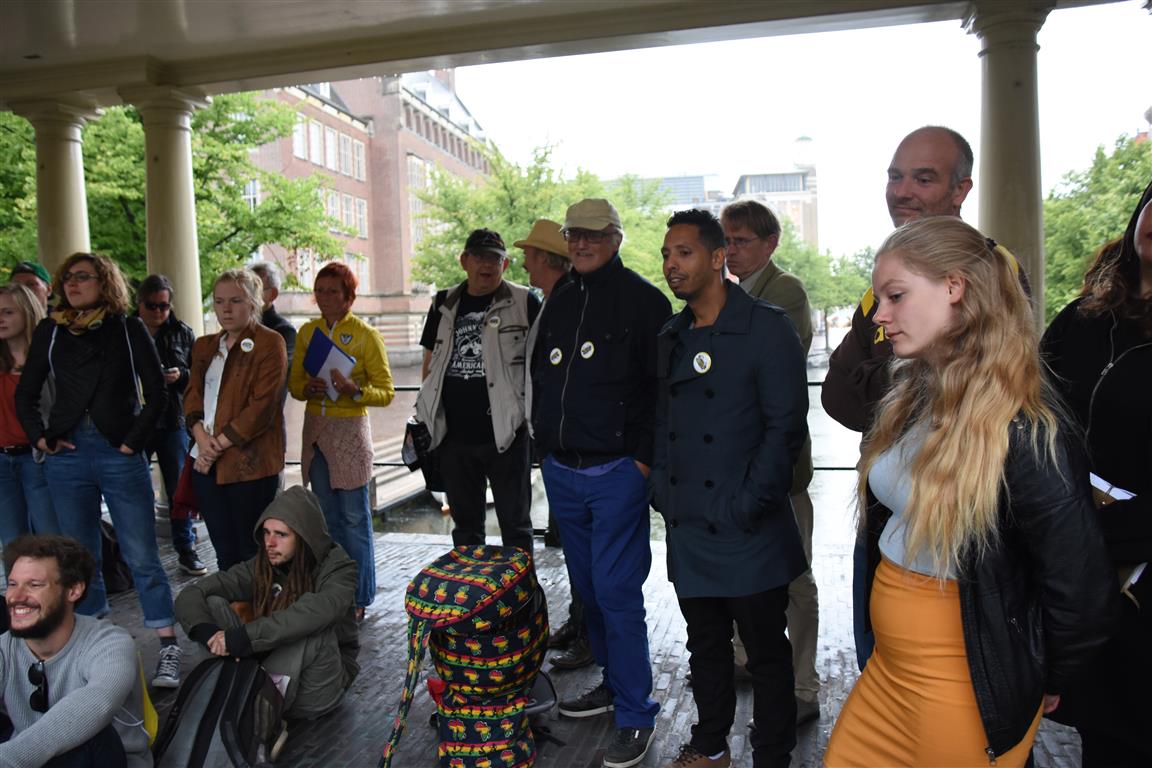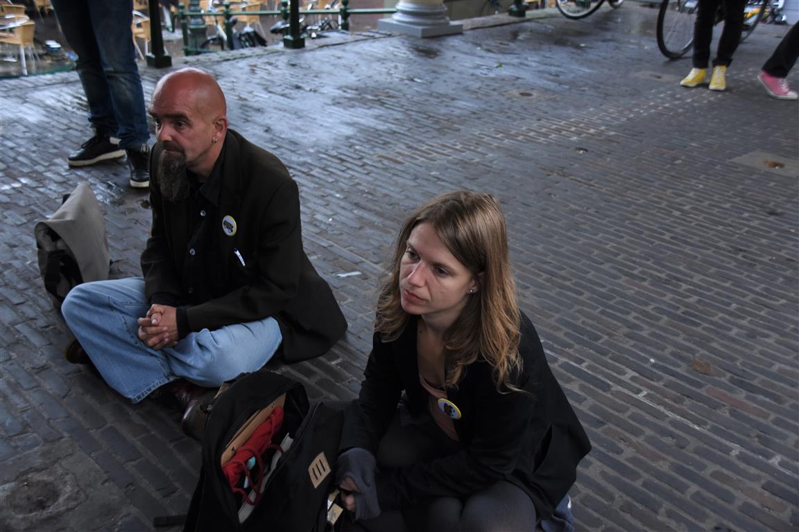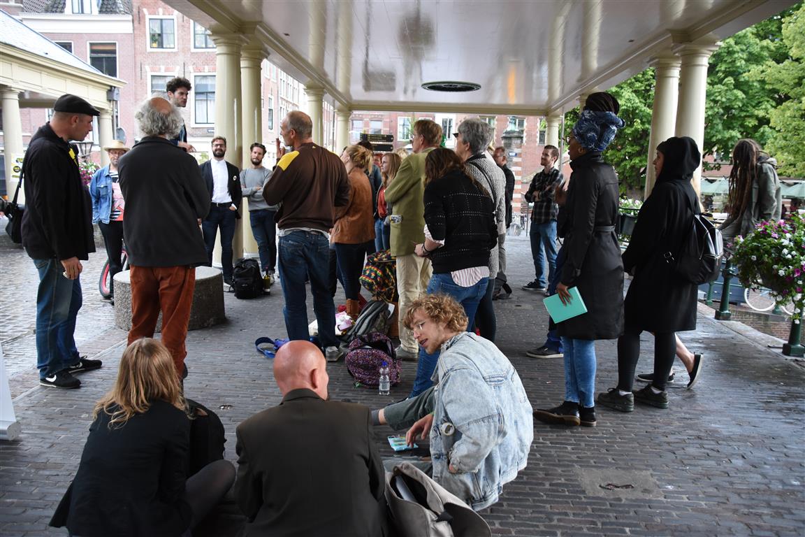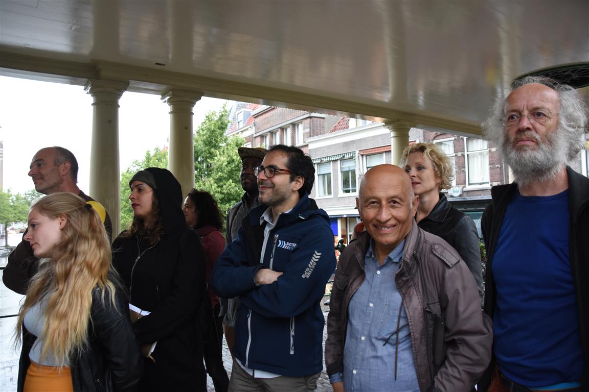 Ondanks het gebrek aan publiek was de sfeer op de Koornbrug goed en genoten behalve de mensen die toch de regen hadden getrotseerd, ook de dichters en organisatoren.