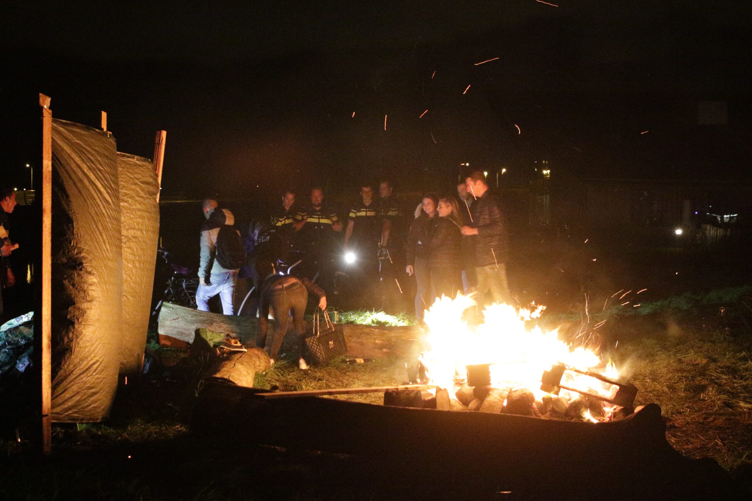 De politie noteerde de gegevens van de jongeren en verzocht hen de plek te verlaten. De jongeren waren het daar in eerste instantie niet mee eens maar zijn uiteindelijk toch weggegaan. De brandweer heeft het vuur geblust.