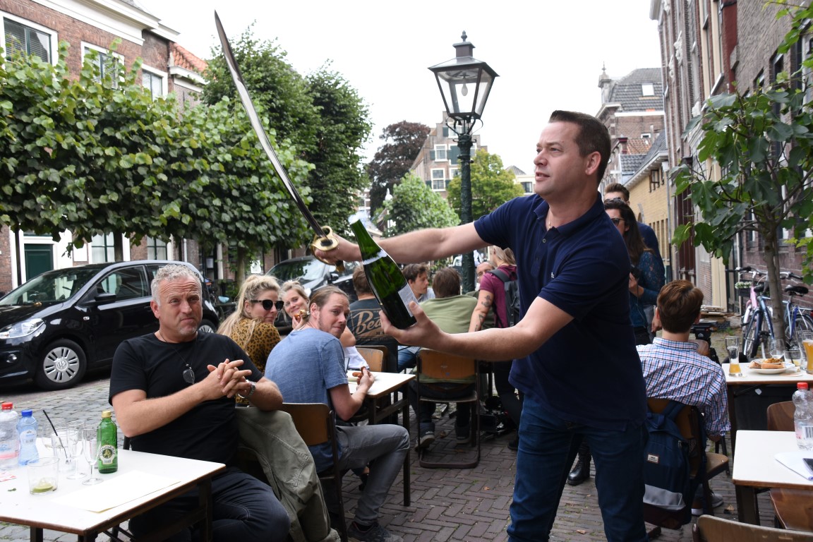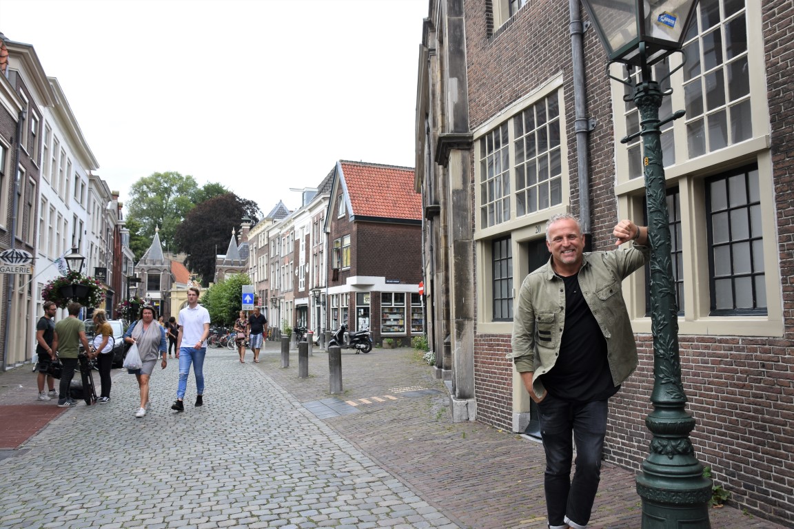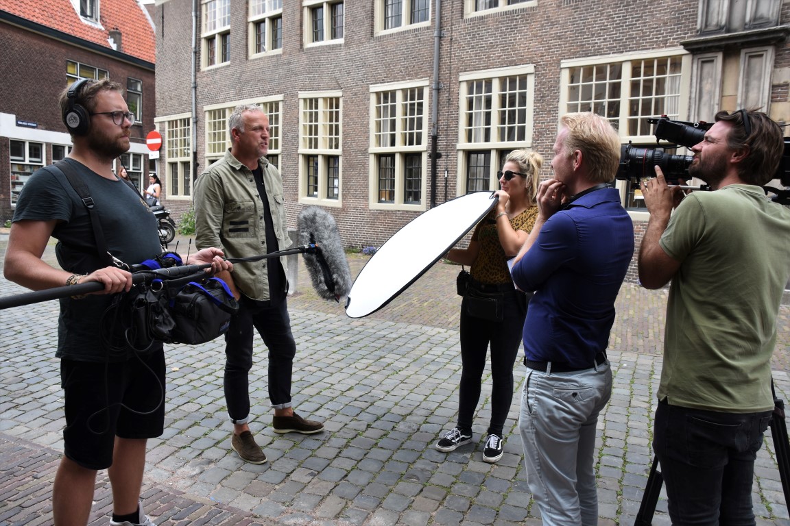Onder de huwelijkskandidaten ook een Leidenaar. En dus kwam de bekende Nederlander onlangs met filmploeg naar de Sleutelstad om opnames te maken voor het programma. Op het terras van Jazz- en Wijncafé De Twee Spieghels liep onze eigen paparazzi Emile van Aelst ze tegen het lijf en maakte snel wat plaatjes.