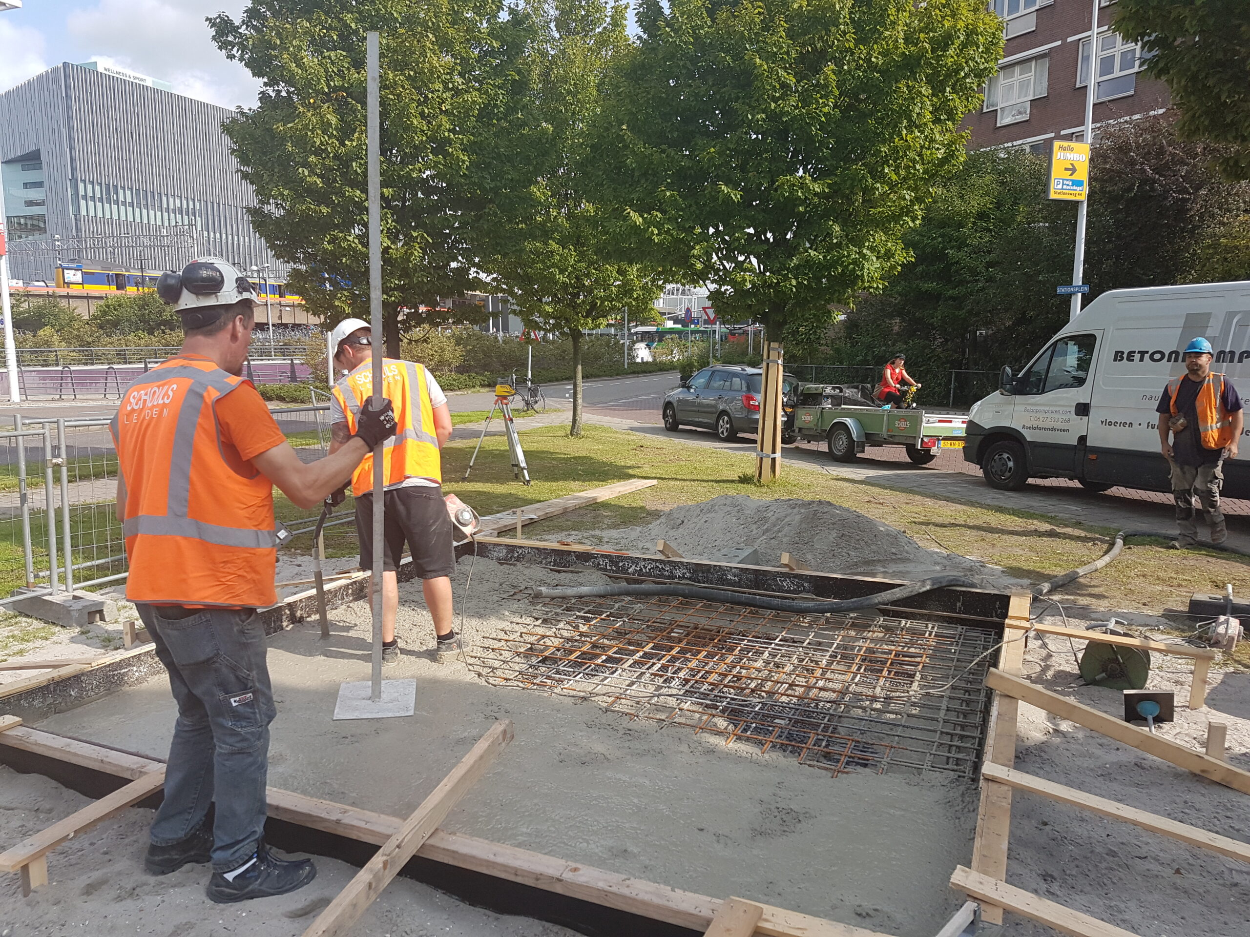 De realisatie van het kunstwerk Vierkant in Vierkant is nu echt begonnen. Vanmorgen is het fundament van gewapend beton gestort. Dat is nodig om het kunstwerk te dragen. Vierkant in Vierkant wordt drieënhalf bij drieënhalve meter, acht meter hoog en wordt opgebouwd uit betonblokken van vijftig bij vijftig centimeter. Het geheel weegt zo’n 74.000 kilo.