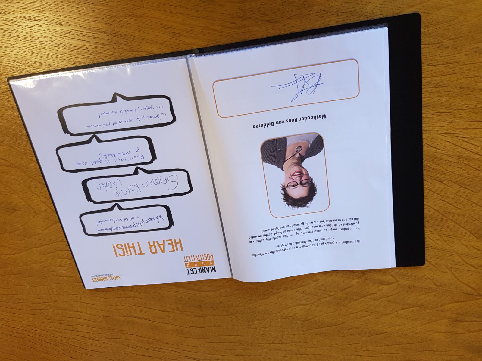 Wethouder Roos van Gelderen heeft gistermiddag op het stadhuis het ‘Manifest voor meer positiviteit rondom de jeugd’ overhandigd gekregen van de organisatie Social Brokers Leiden. In het manifest zijn diverse handtekeningen, quotes en foto’s van inwoners van Leiden verzameld en gebundeld. Deze mensen vinden dat er meer aandacht mag zijn voor positieve verhalen en energie rondom jongeren.