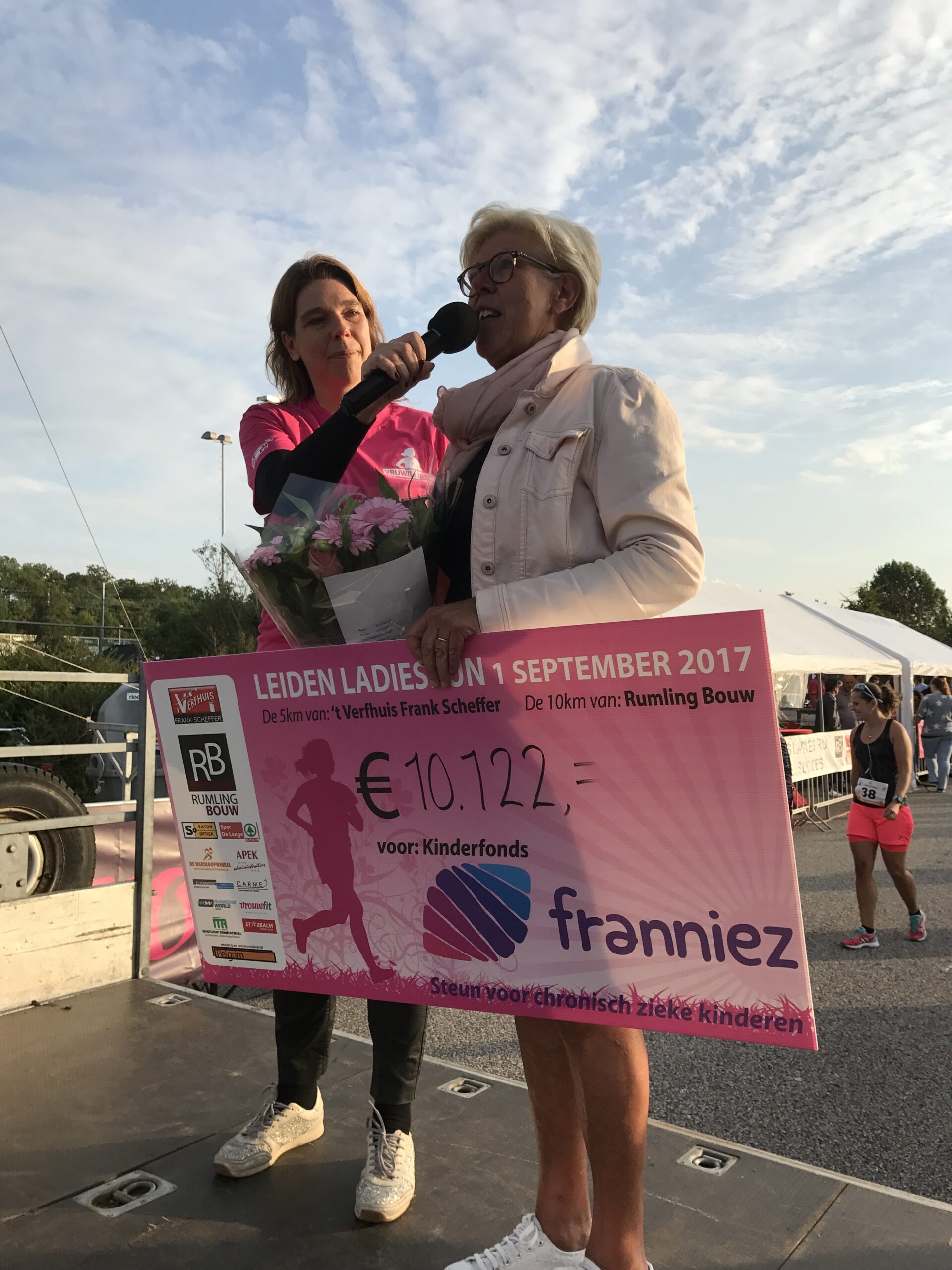 Ruim 1000 dames begonnen de maand september sportief met een ronde van 5 of 10 kilometer door de Leidse Stevenshof. Met hun startgeld zamelden ze € 10.122 in voor het goede doel: Franniez. Franniez is een initiatief van het Willem-Alexander kinderziekenhuis (LUMC) dat chronisch zieke kinderen een vrolijk gekleurd spiraal geeft waarmee ze hun verhaal van het ziek-zijn voor zichzelf kunnen volgen en aan anderen kunnen vertellen.