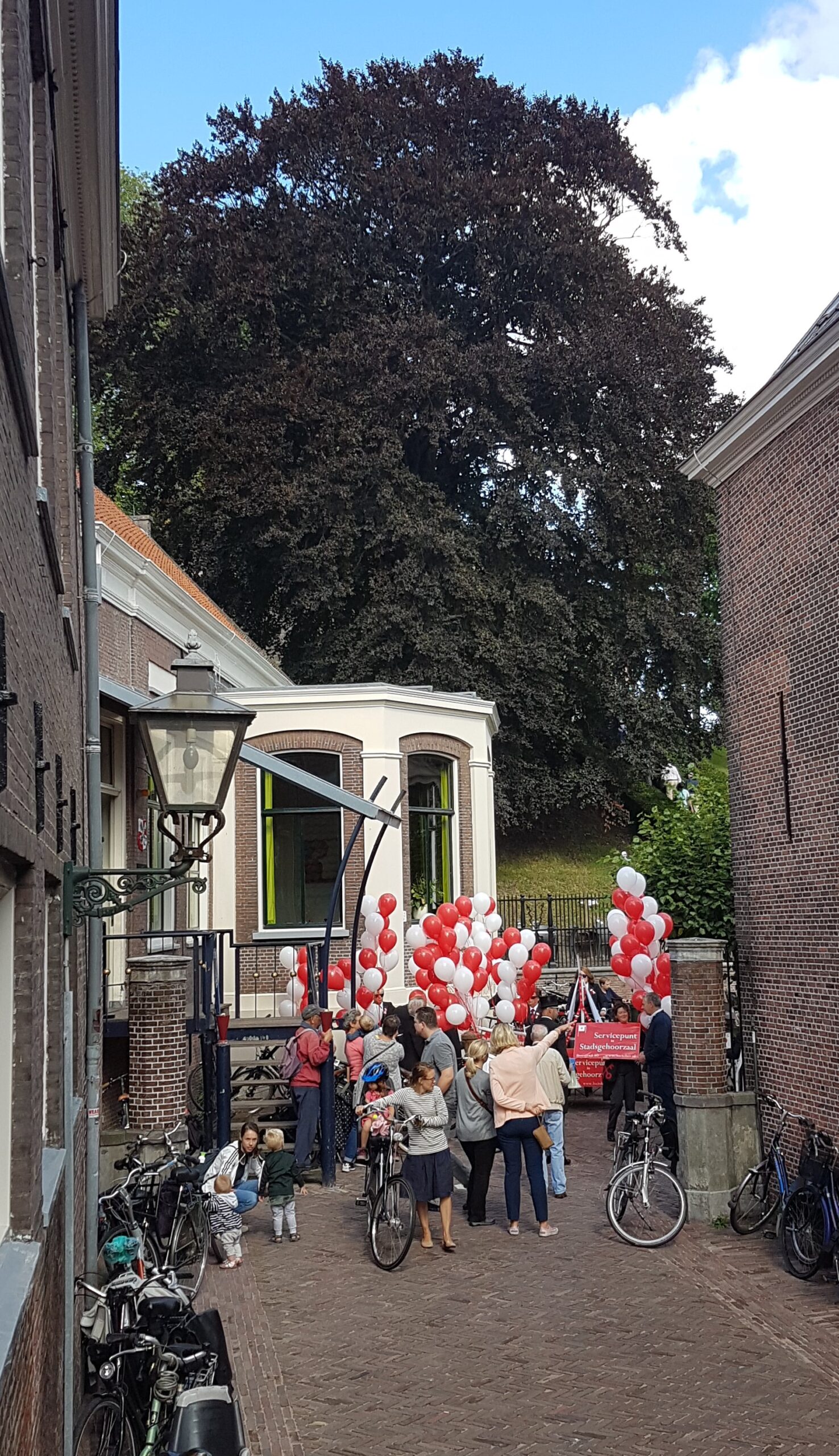Chris de Waard liep van de Burcht mee naar de Breestraat waar het servicepunt zaterdag werd geopend in de foyer van de Stadsgehoorzaal.