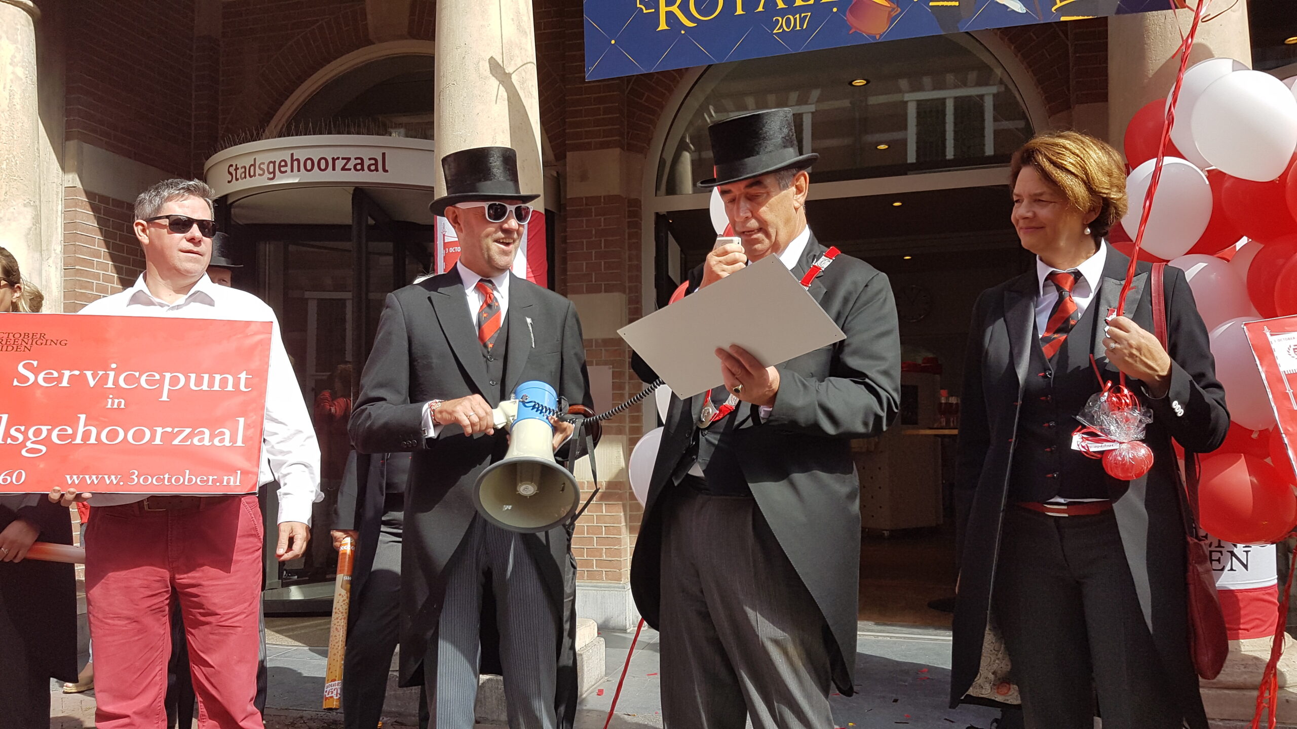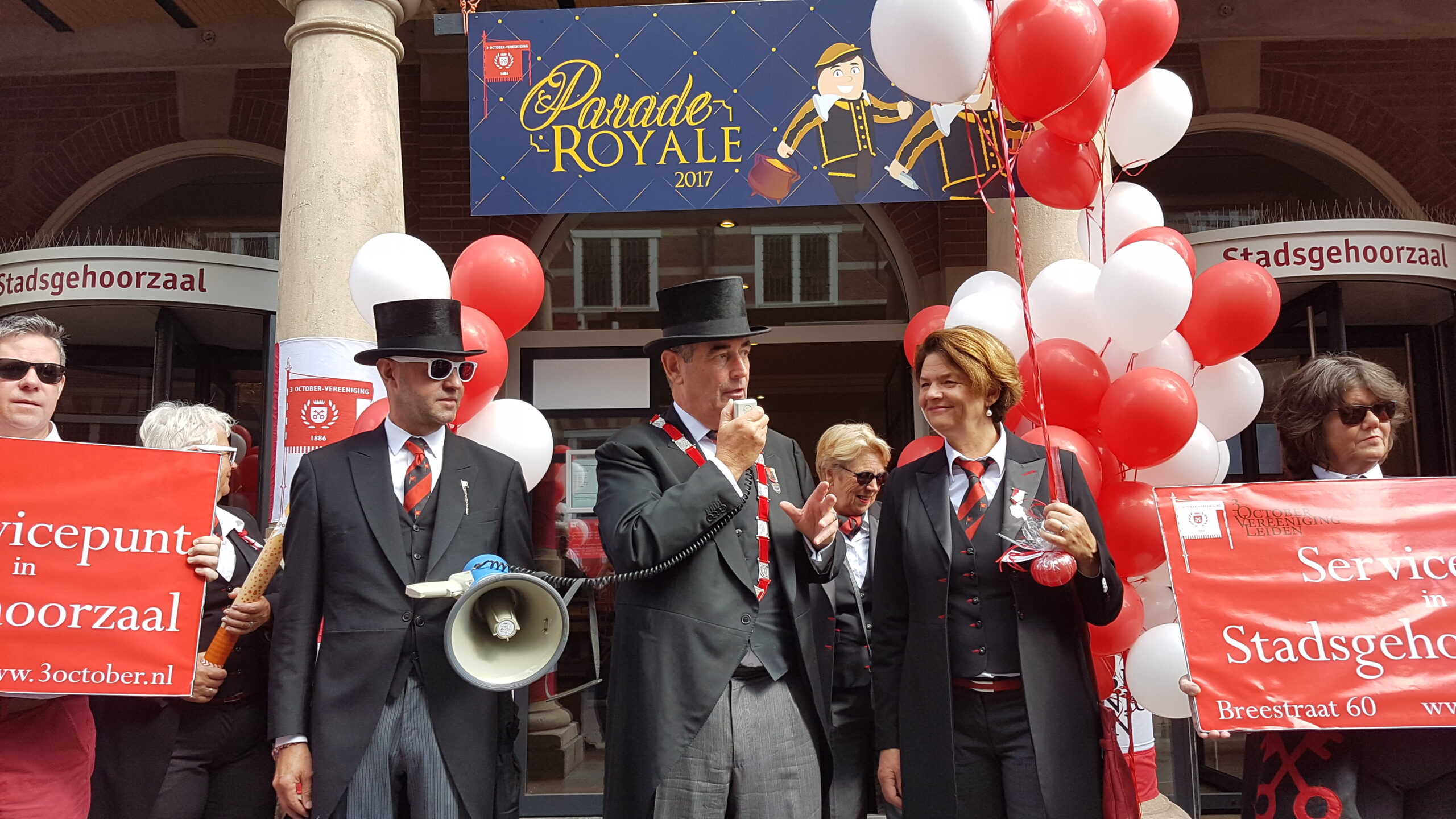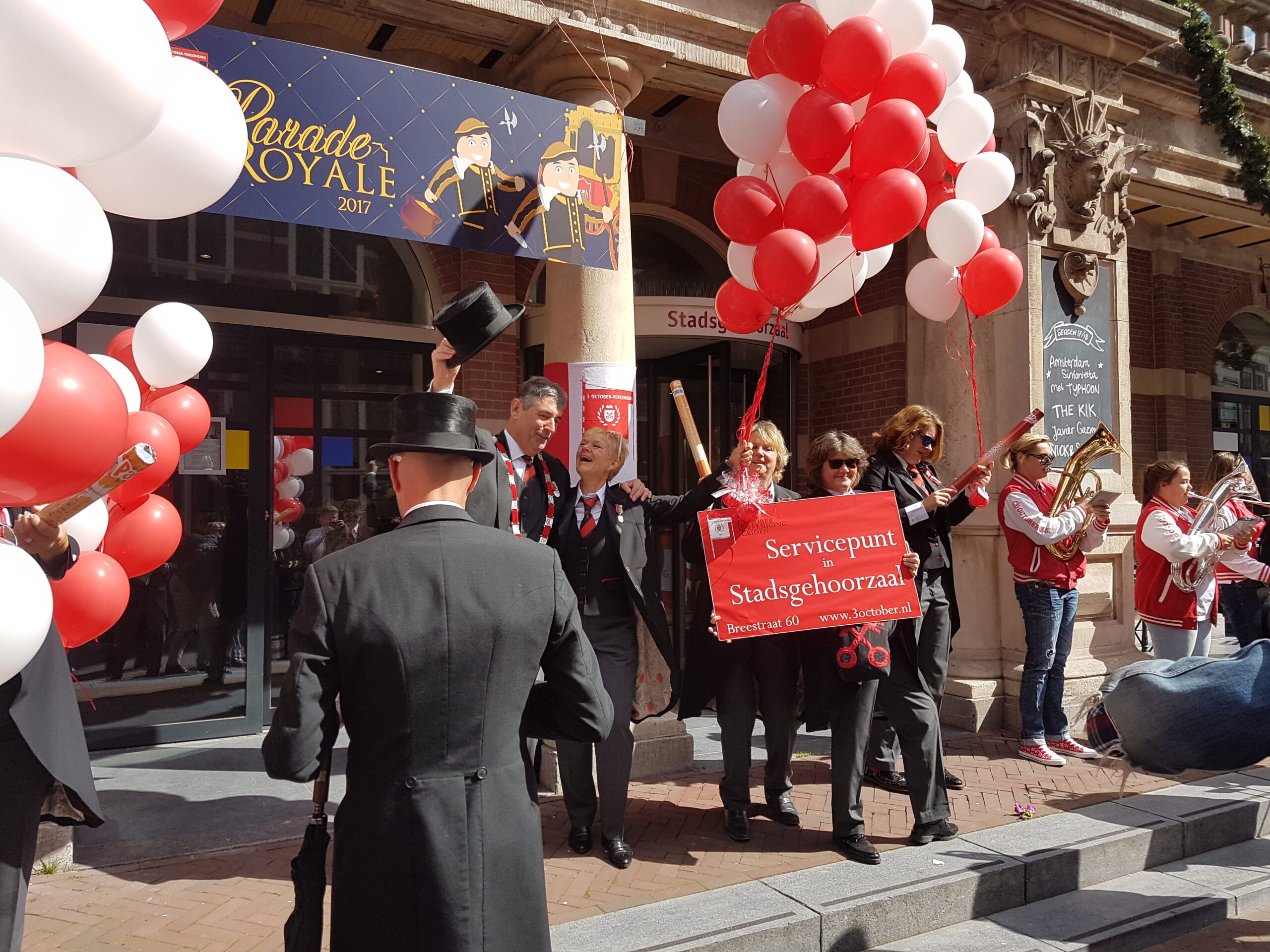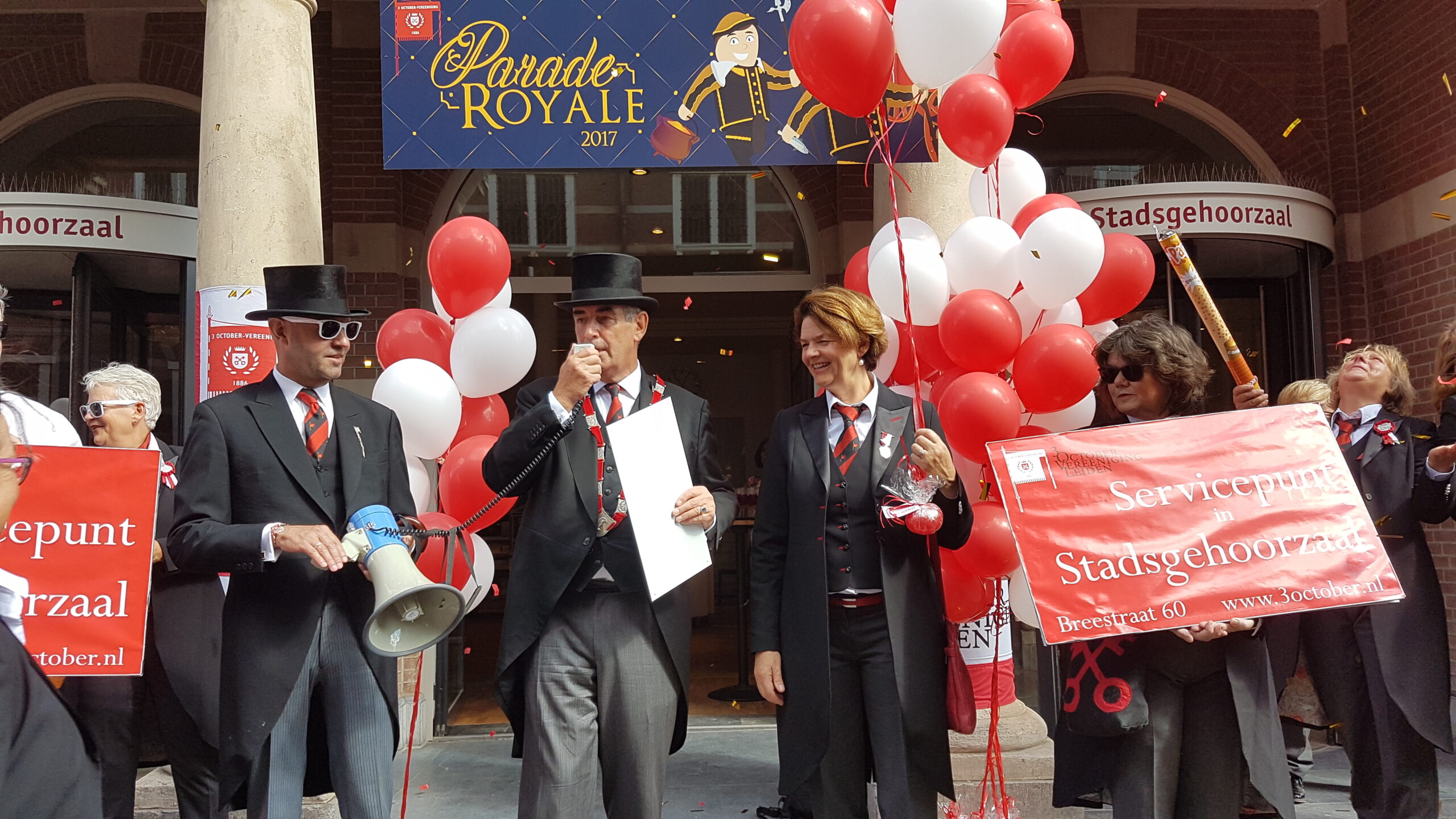 Zaterdag werd voor alweer het achtste jaar op rij het servicepunt geopend van de 3 October Vereeniging. Na een vrolijke rondtocht van De Joffers onder begeleiding van de Party Band Leiden vanaf de Burcht, via de markt en de Haarlemmerstraat, naar de Breestraat, sprak voorzitter Michiel Zonnevylle de aanwezigen toe. Voor de laatste keer, want na de komende viering neemt hij afscheid als voorzitter. Wie hem opvolgt wordt later deze maand bekend gemaakt na de commissarissenavond in de Hooglandse Kerk.