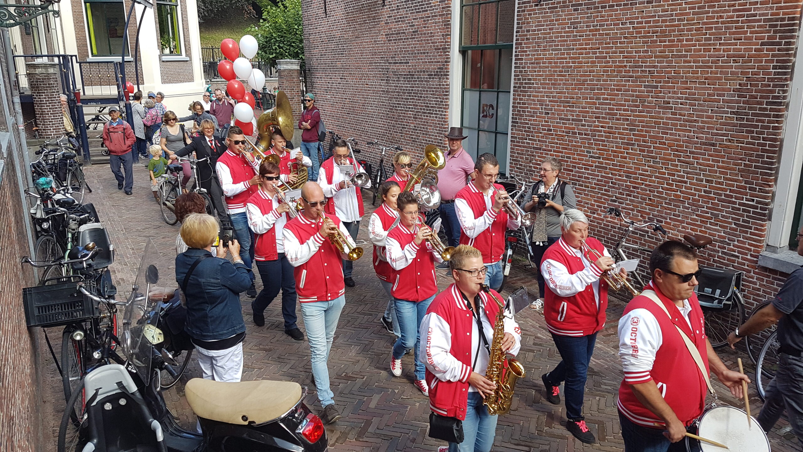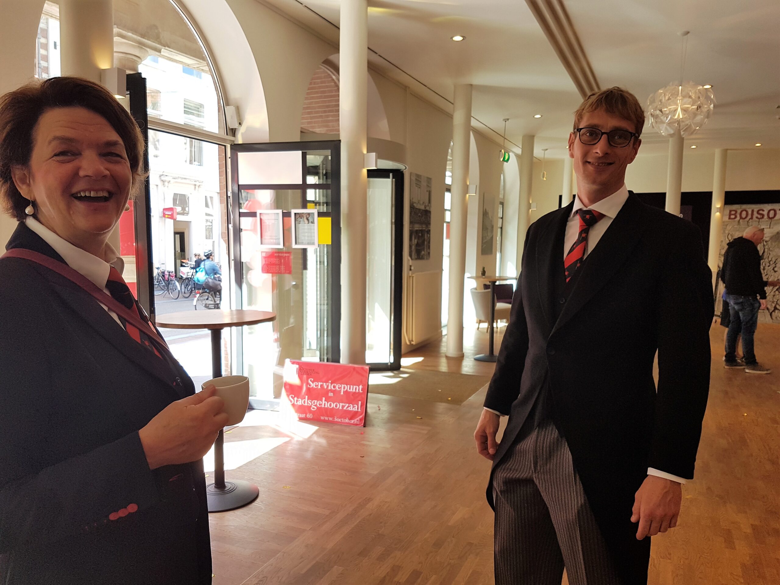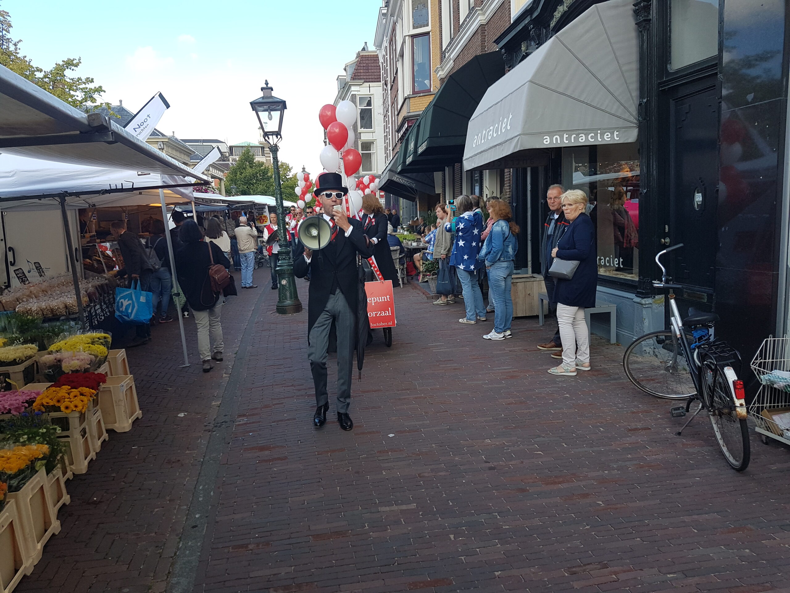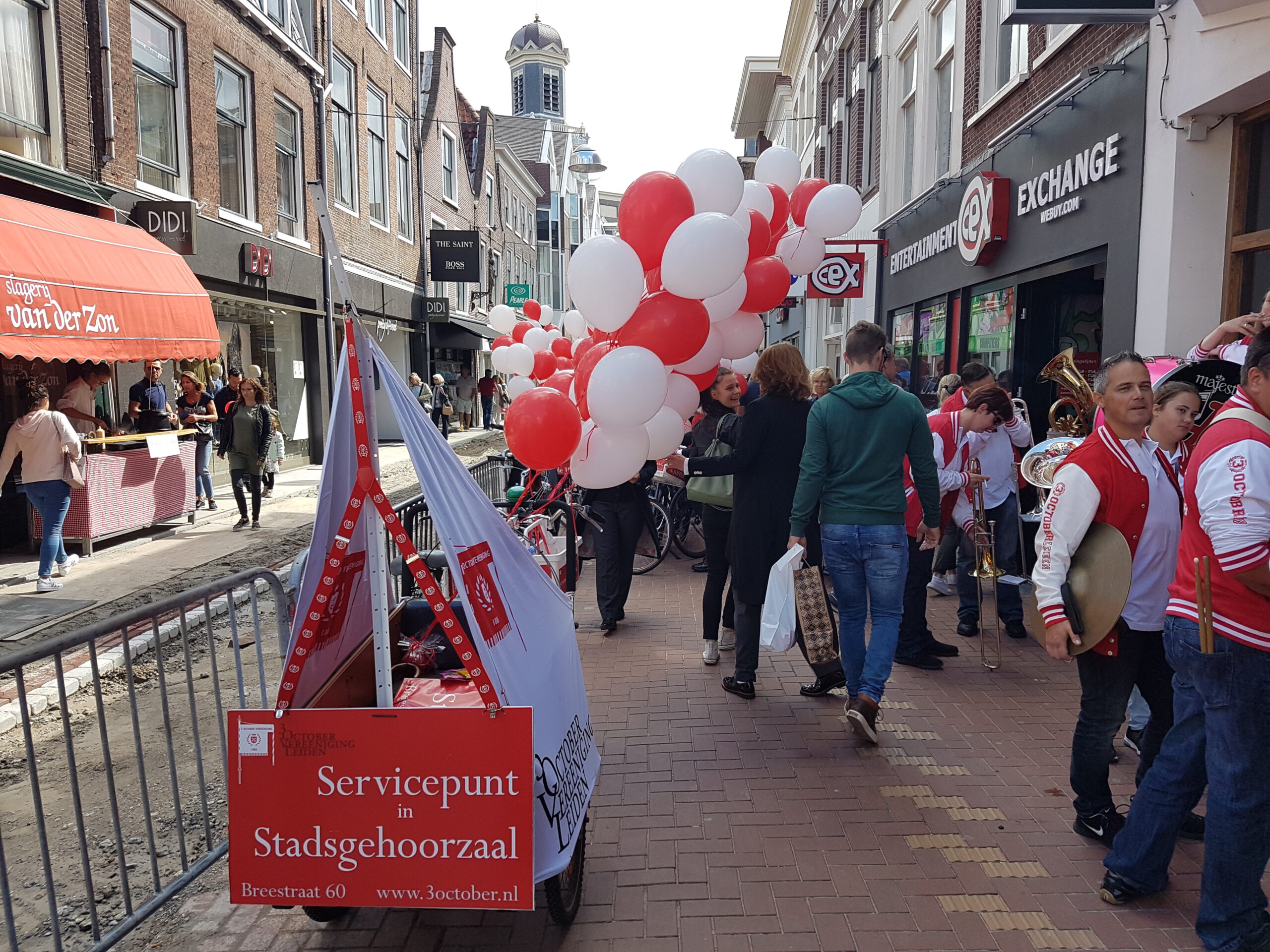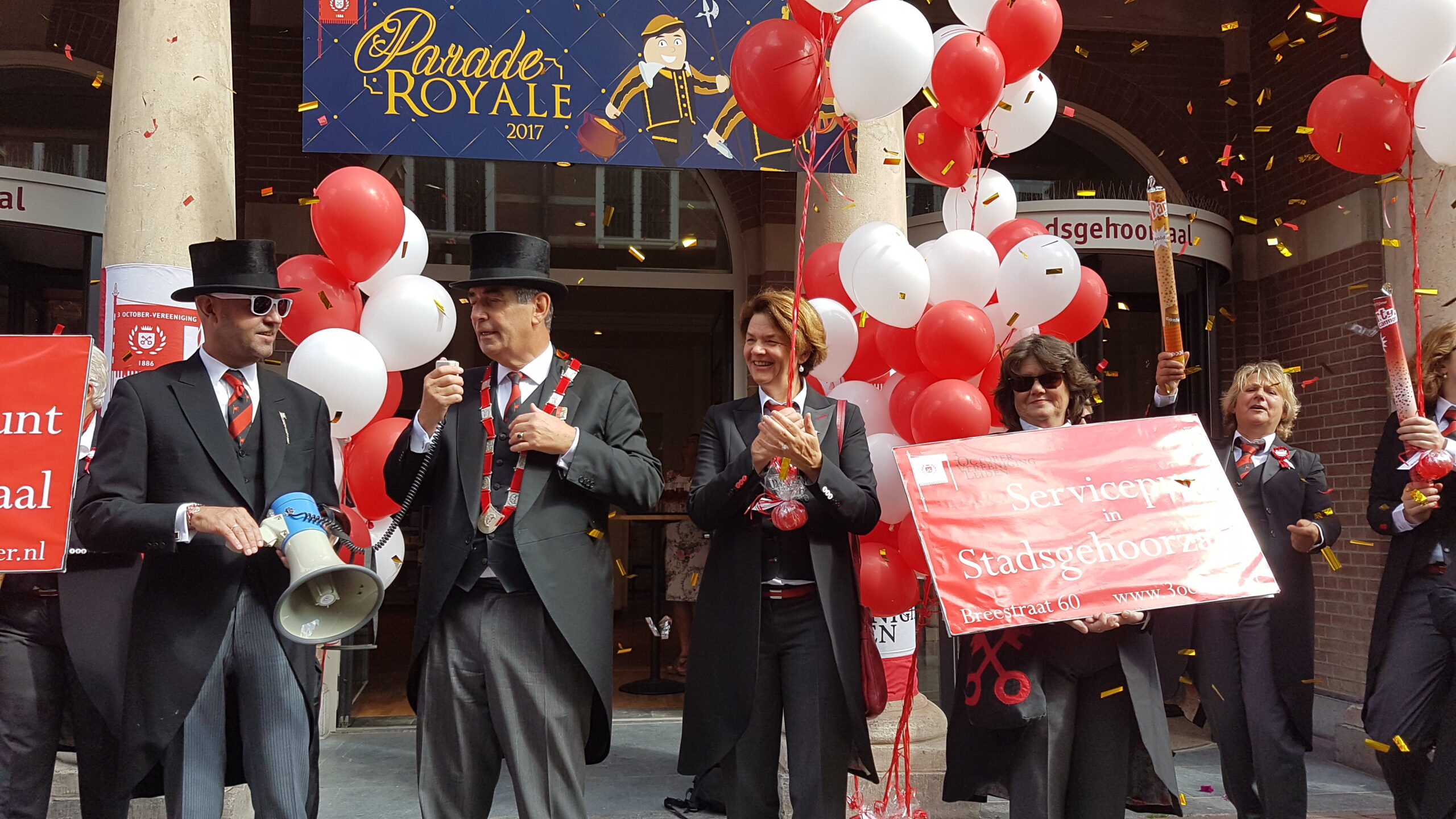 Zaterdag werd voor alweer het achtste jaar op rij het servicepunt geopend van de 3 October Vereeniging. Na een vrolijke rondtocht van De Joffers onder begeleiding van de Party Band Leiden vanaf de Burcht, via de markt en de Haarlemmerstraat, naar de Breestraat, sprak voorzitter Michiel Zonnevylle de aanwezigen toe. Voor de laatste keer, want na de komende viering neemt hij afscheid als voorzitter. Wie hem opvolgt wordt later deze maand bekend gemaakt na de commissarissenavond in de Hooglandse Kerk.