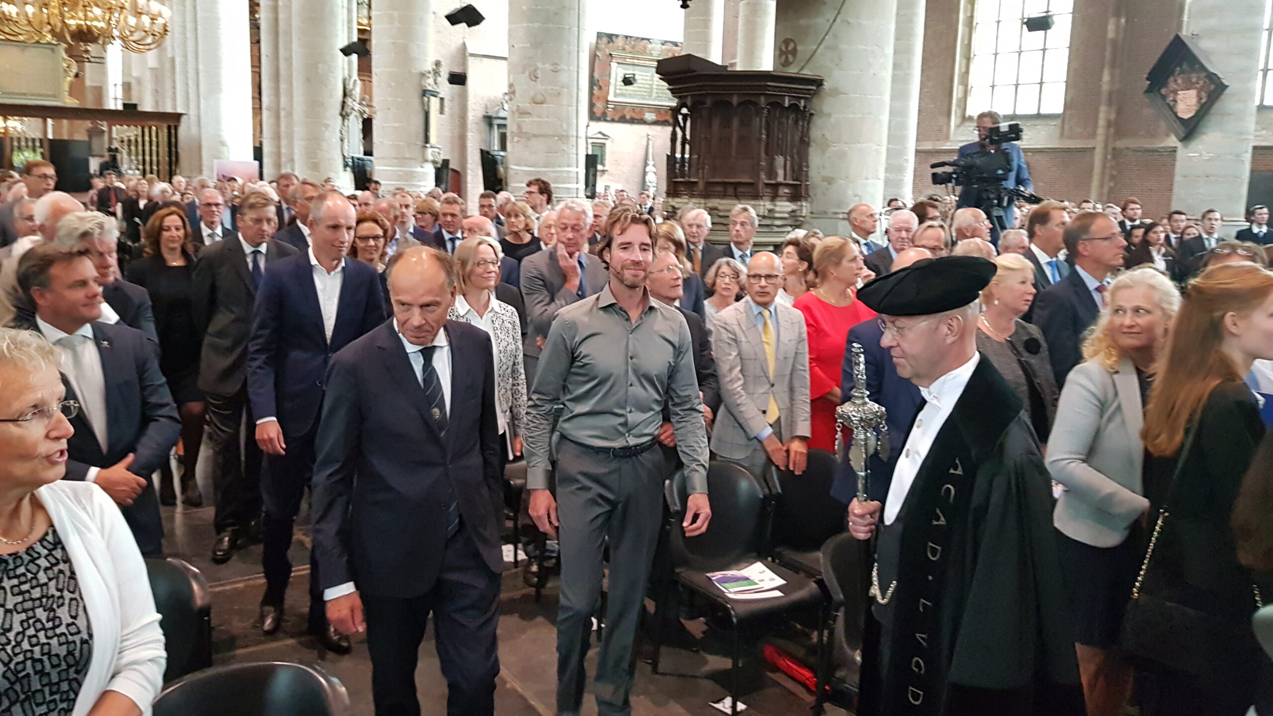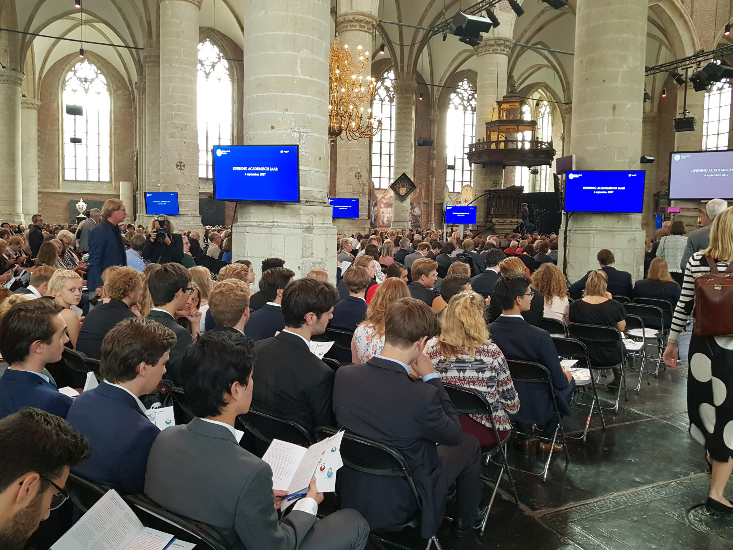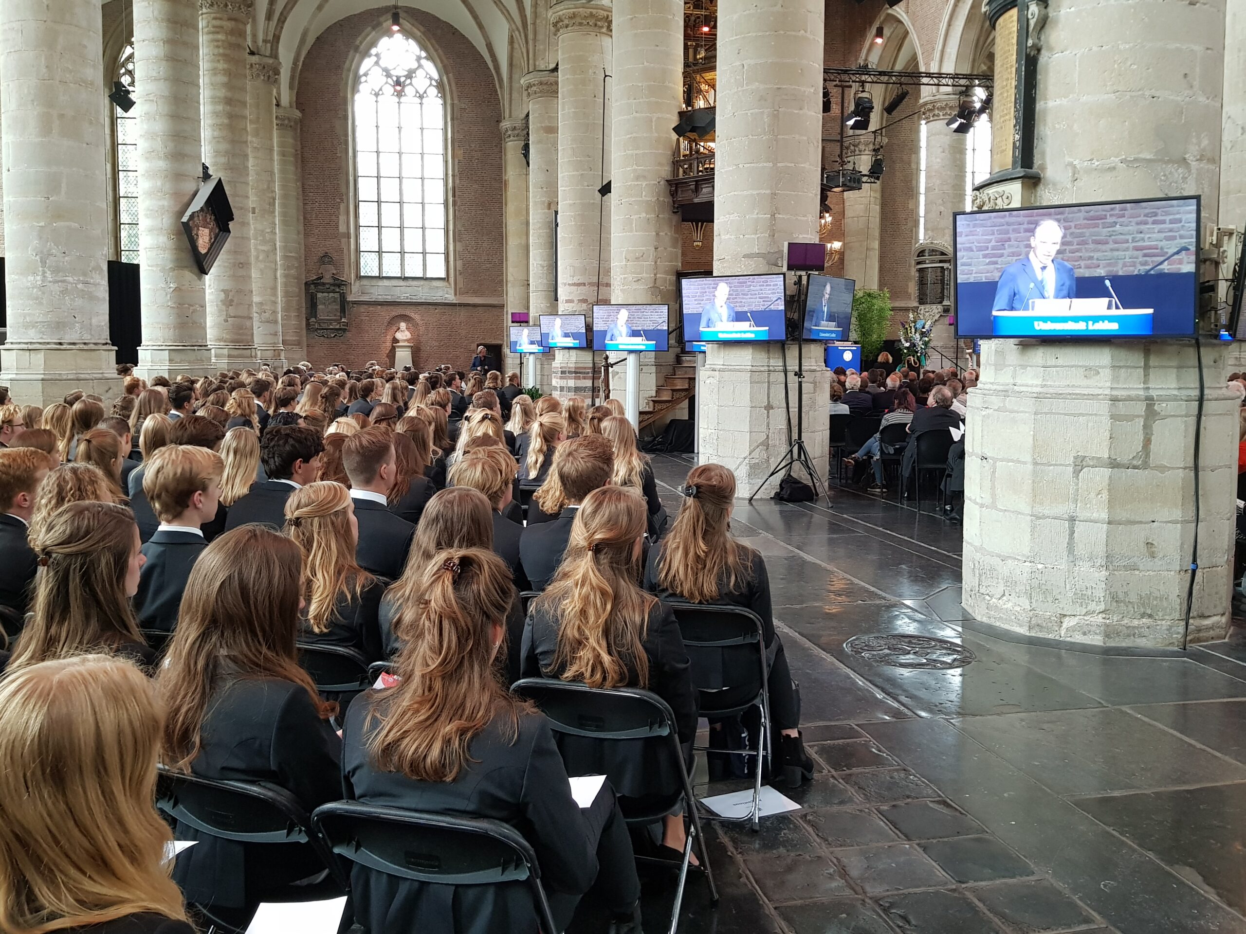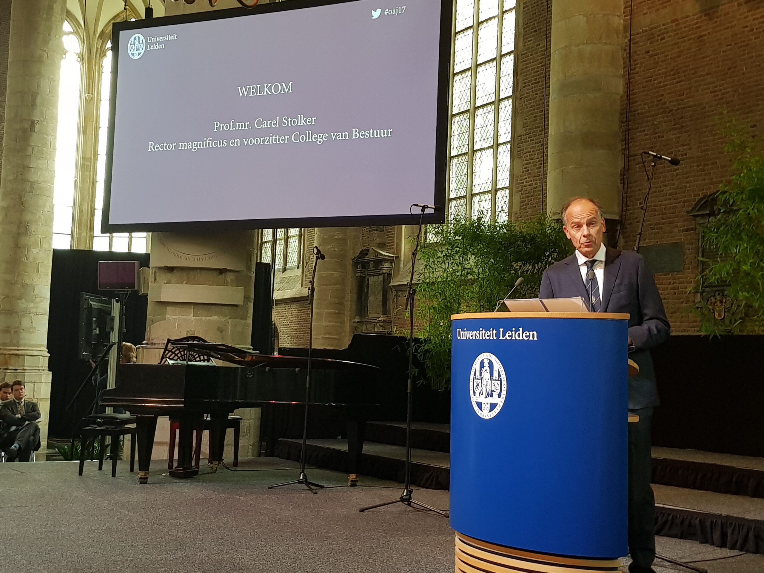 Onder grote belangstelling werd gistermiddag in de Pieterskerk het Academisch Jaar van de Universiteit Leiden geopend. De opening stond in het teken van duurzaamheid. Iets waar de universiteit nog wel een paar slagen kan maken, zo gaf rector Carel Stolker na afloop toe in de Sleutelstad-microfoon: “Het zijn eigenlijk onze studenten die ons de ogen hebben geopend.”