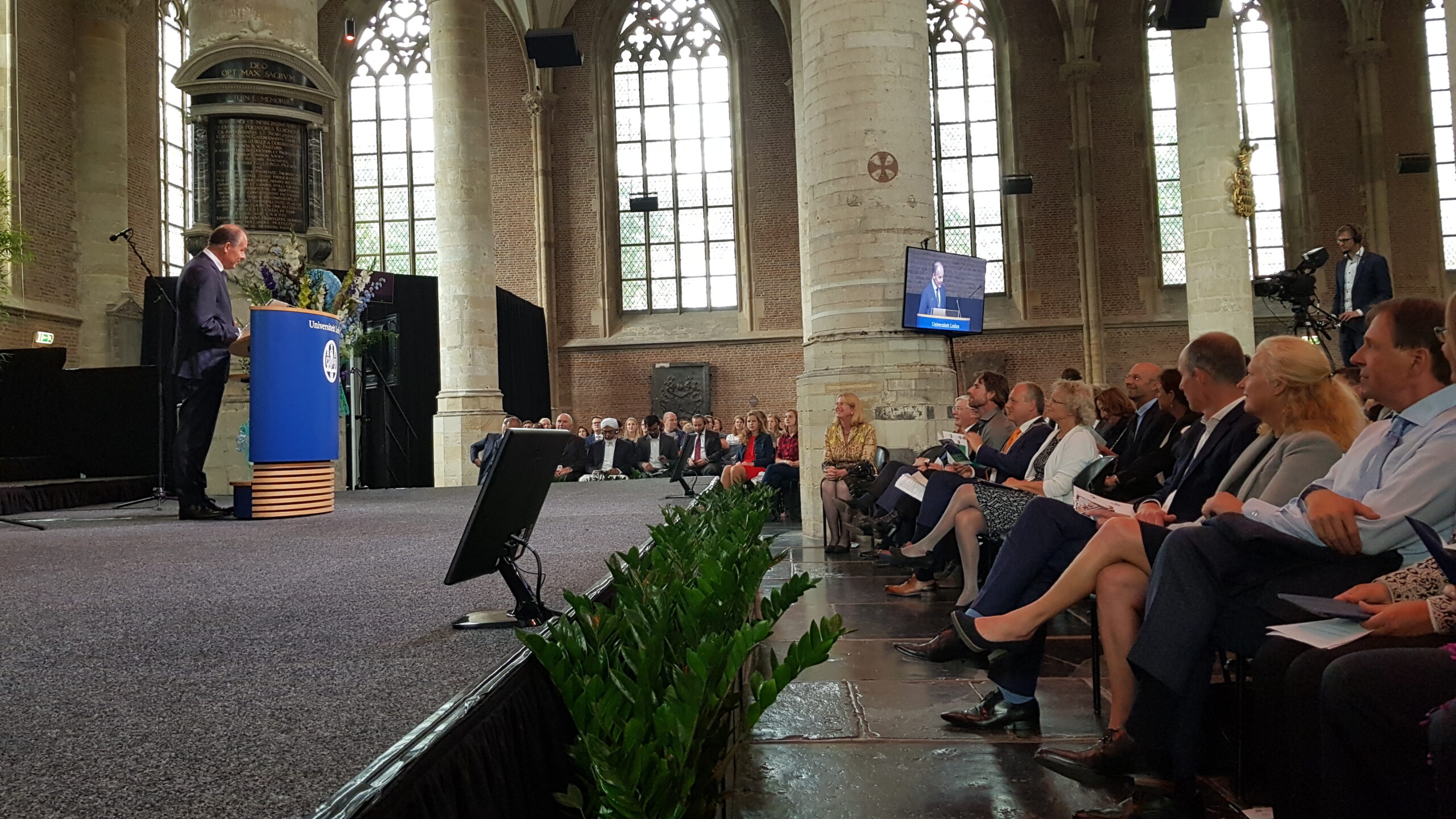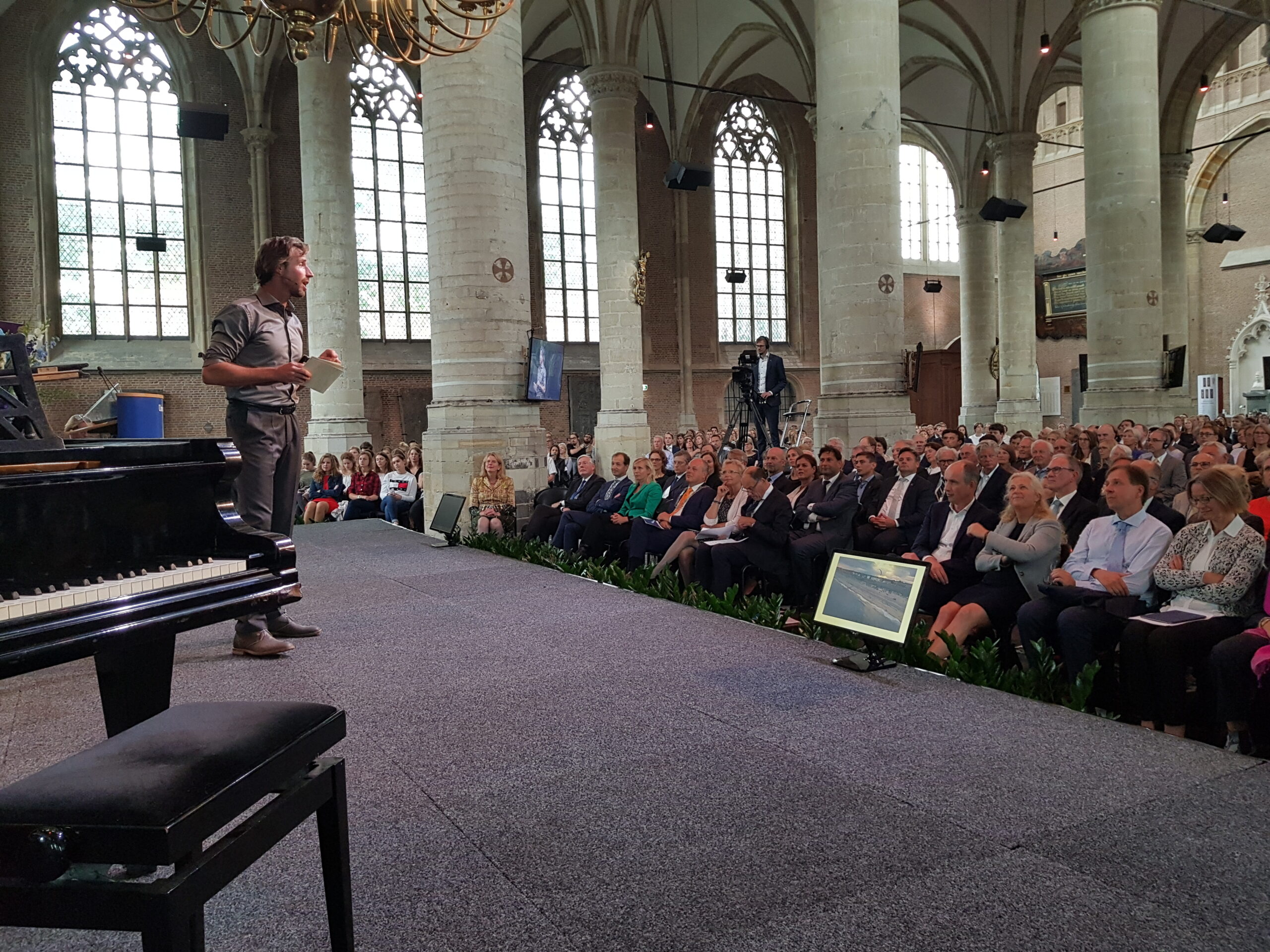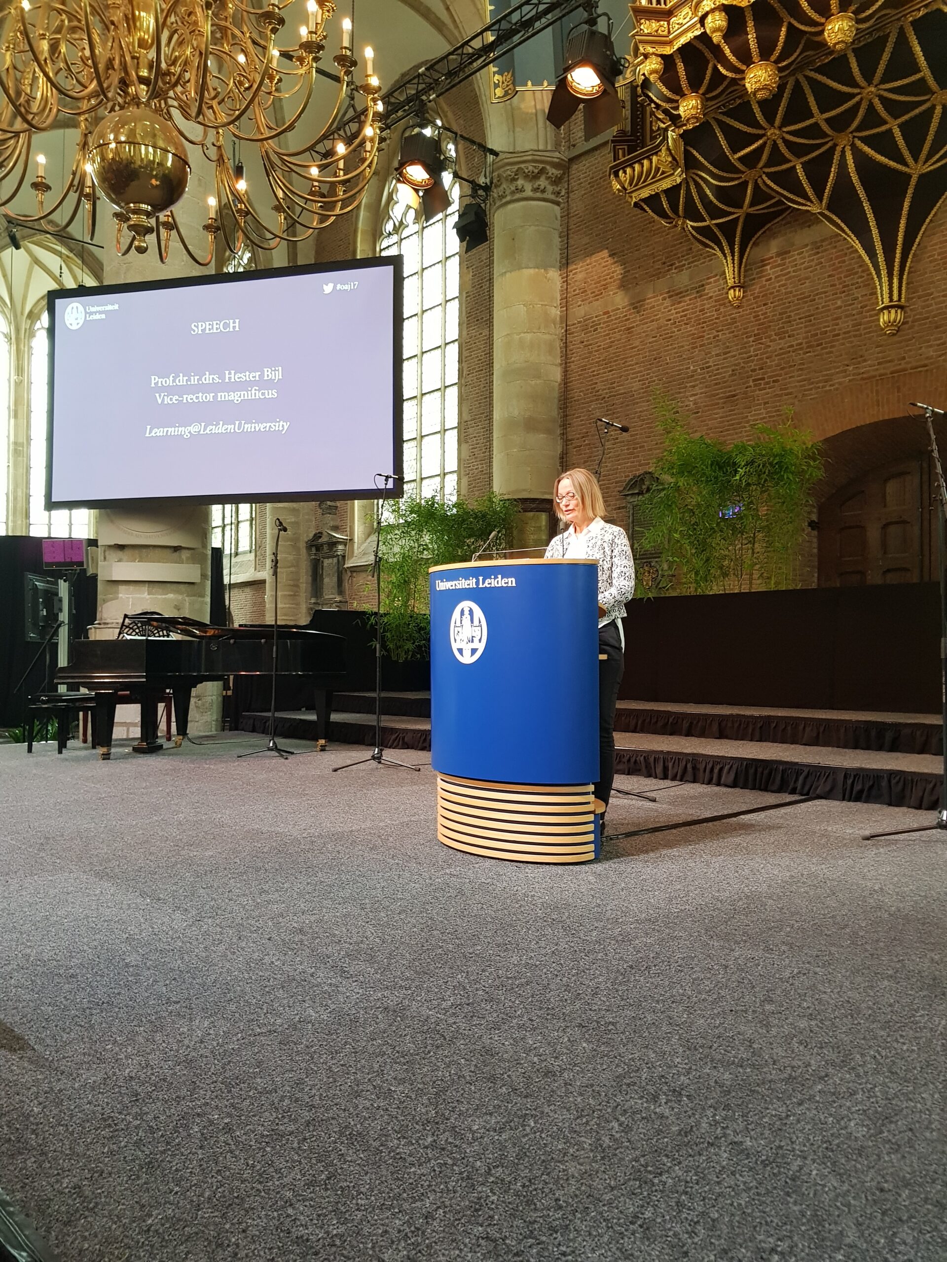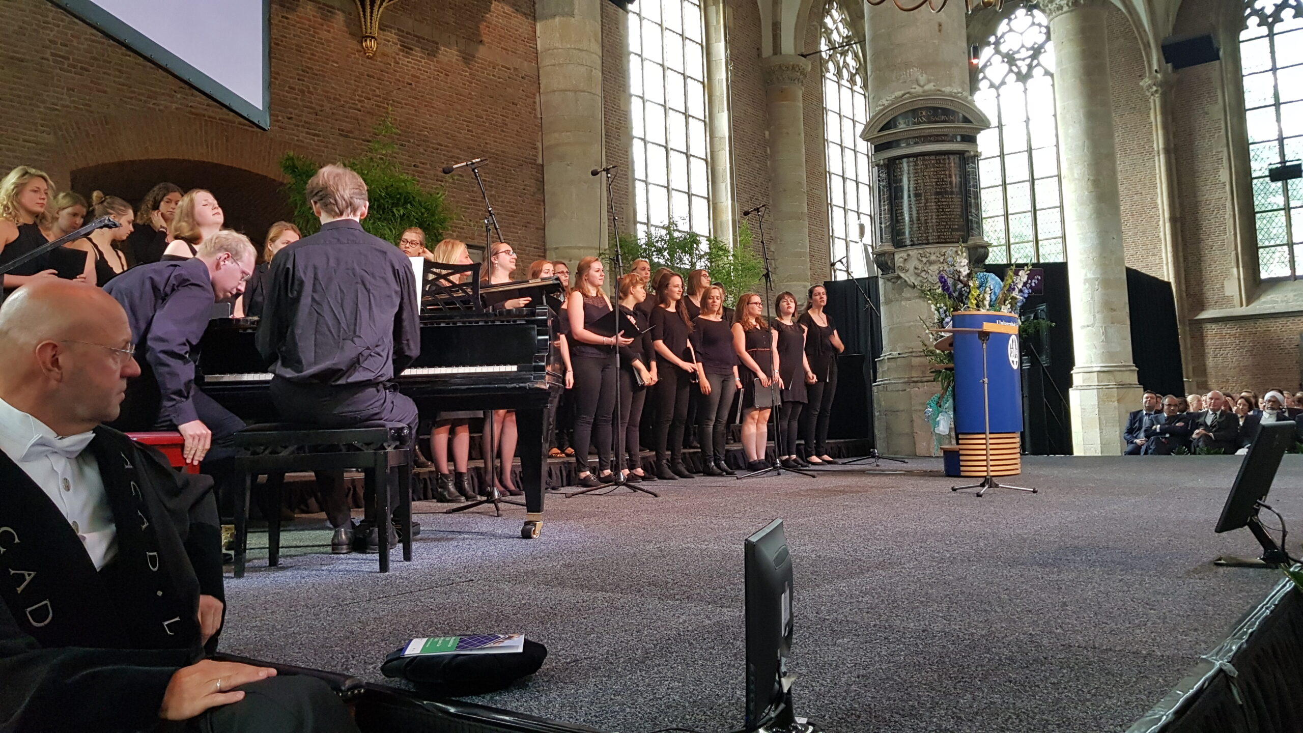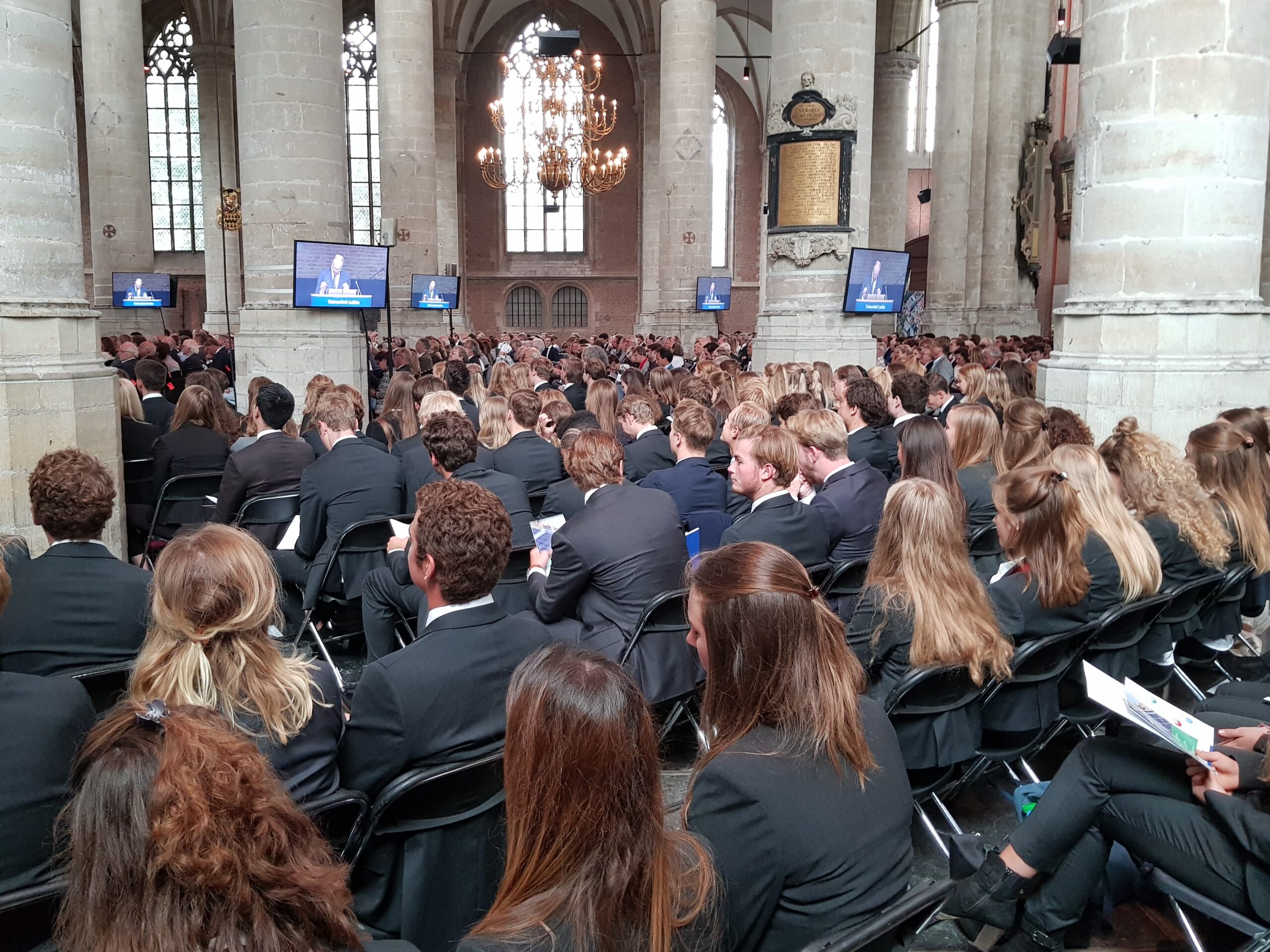 Onder grote belangstelling werd gistermiddag in de Pieterskerk het Academisch Jaar van de Universiteit Leiden geopend. De opening stond in het teken van duurzaamheid. Iets waar de universiteit nog wel een paar slagen kan maken, zo gaf rector Carel Stolker na afloop toe in de Sleutelstad-microfoon: “Het zijn eigenlijk onze studenten die ons de ogen hebben geopend.”