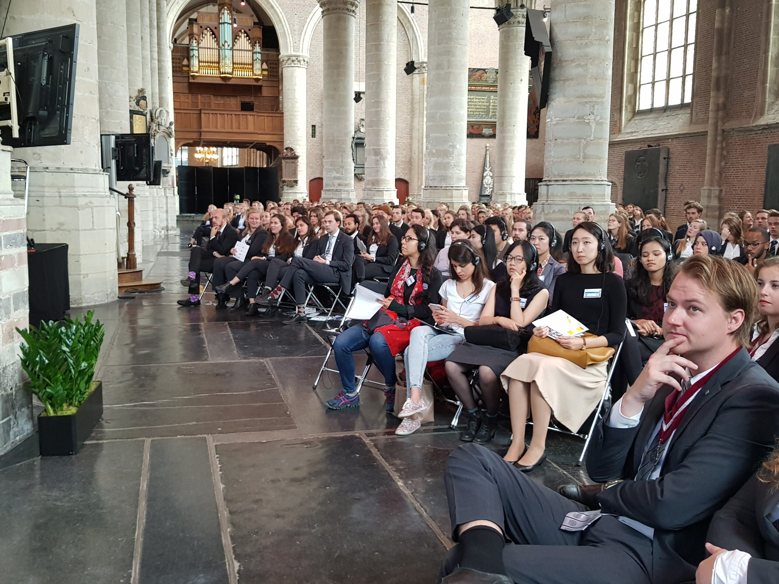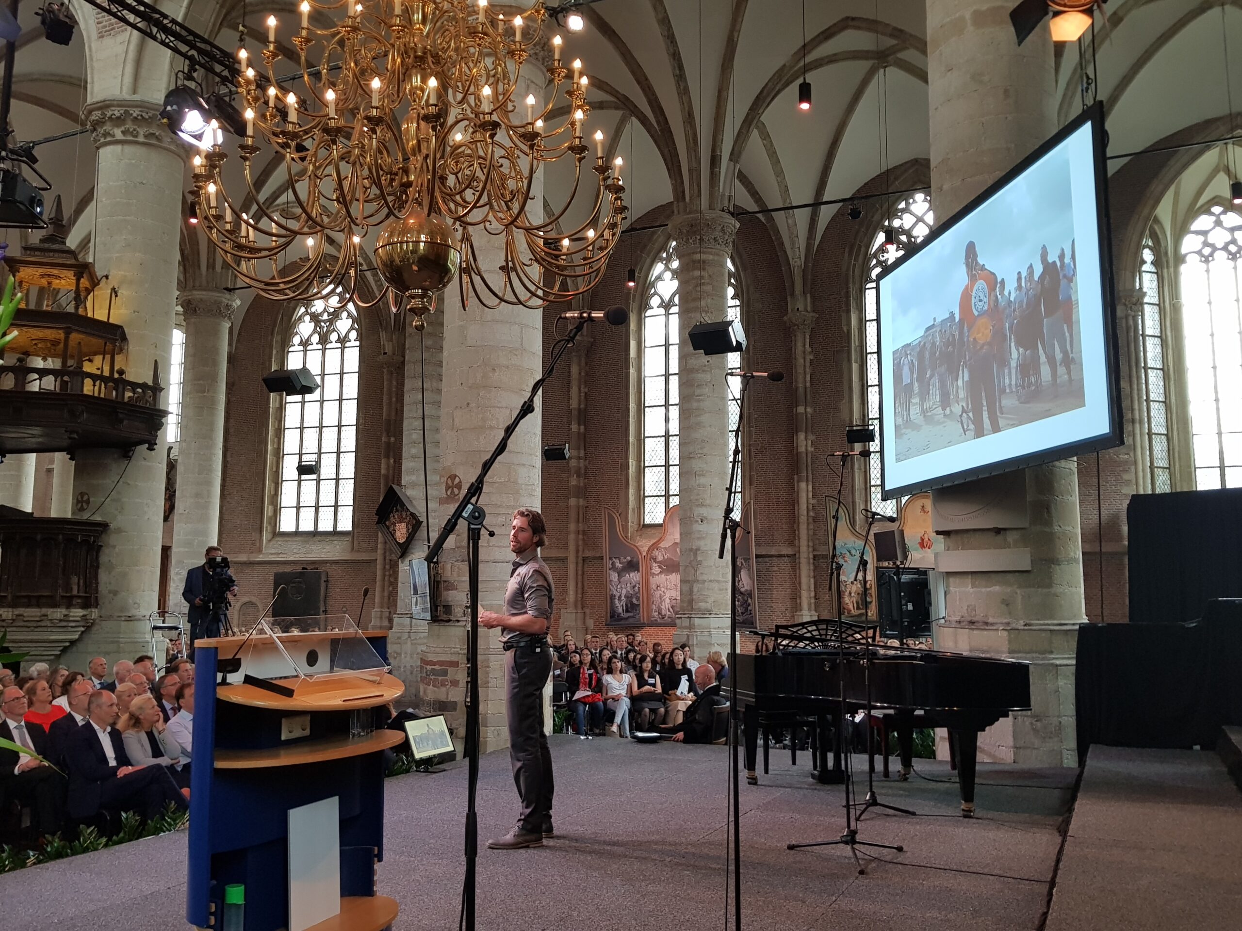 Plastic Soup Surfer Merijn Tinga, alumnus van de Universiteit Leiden, hield de openingstoespraak. Hij toonde zich na afloop zeer verguld met de steun van de universiteit. “Dat is natuurlijk een prestigieus instituut en het helpt als zo’n organisatie achter je gaat staan.”