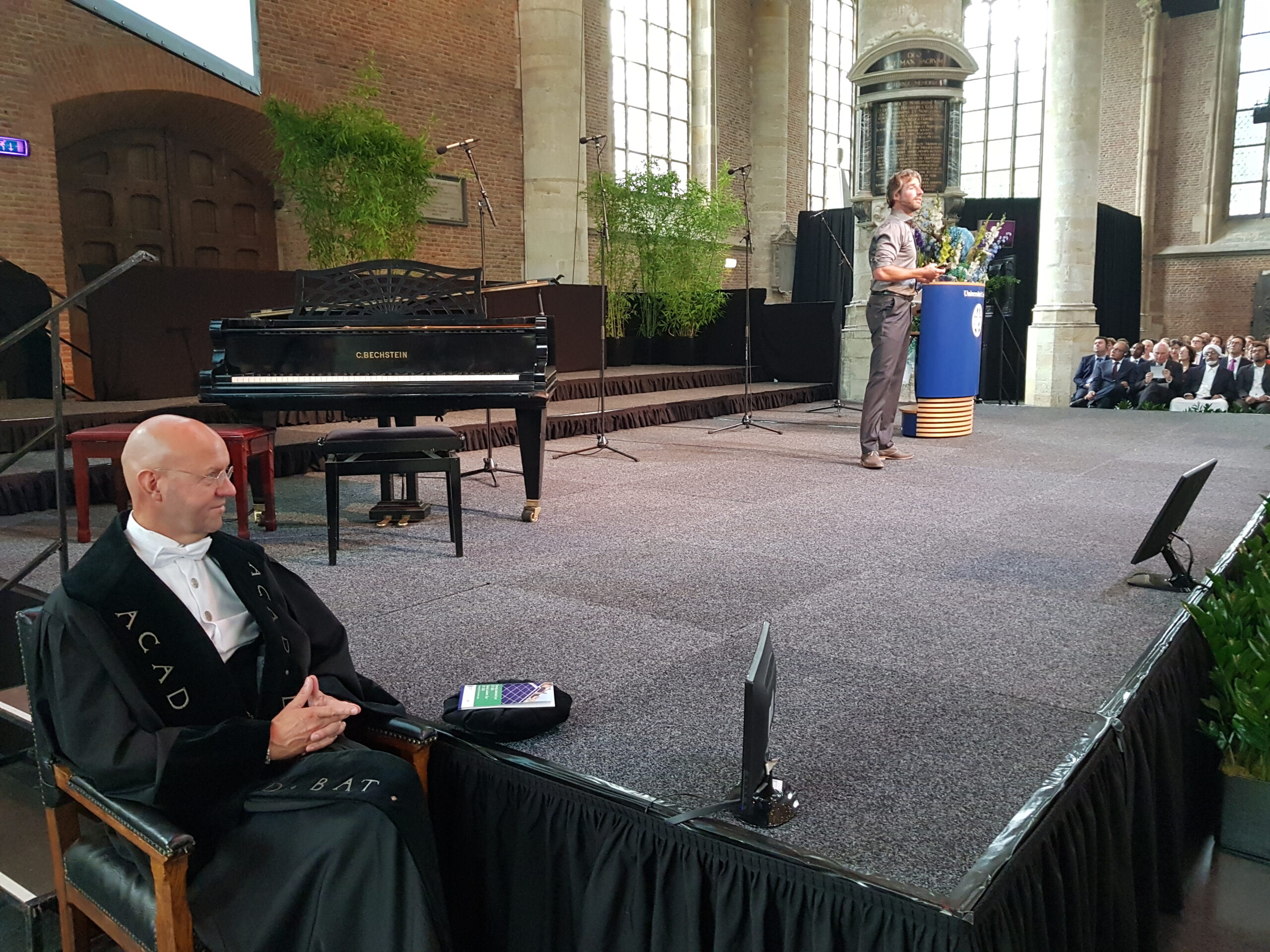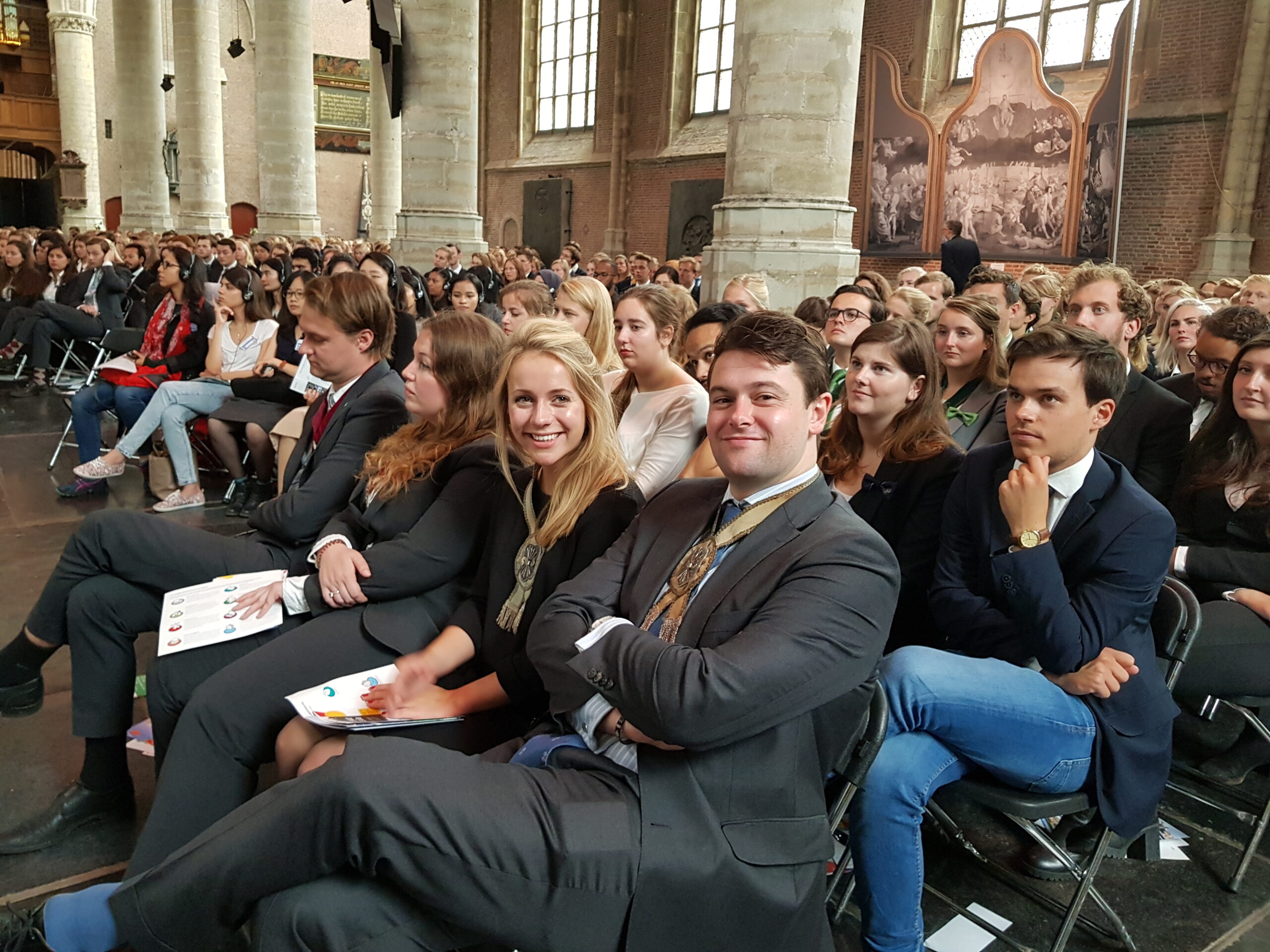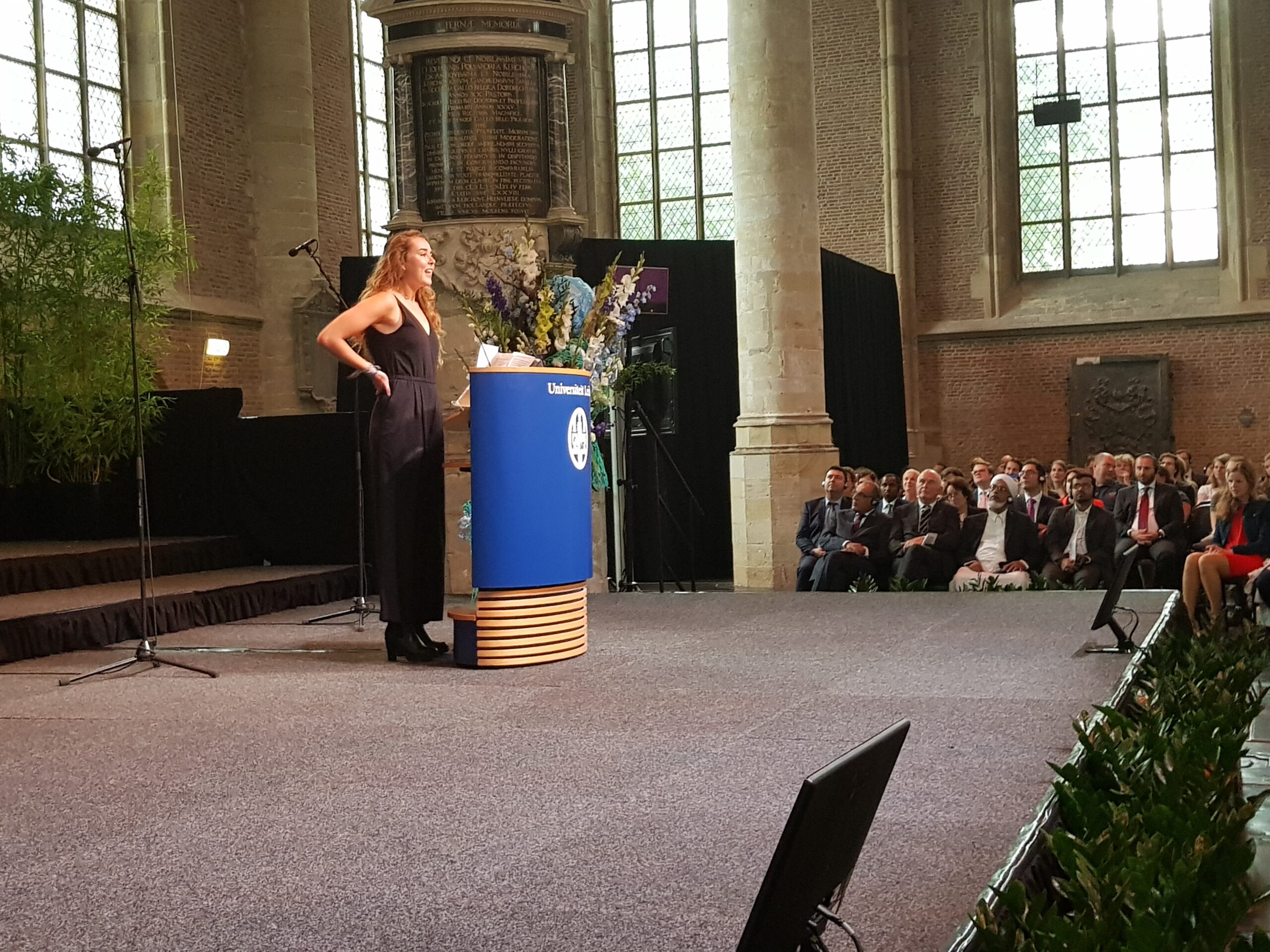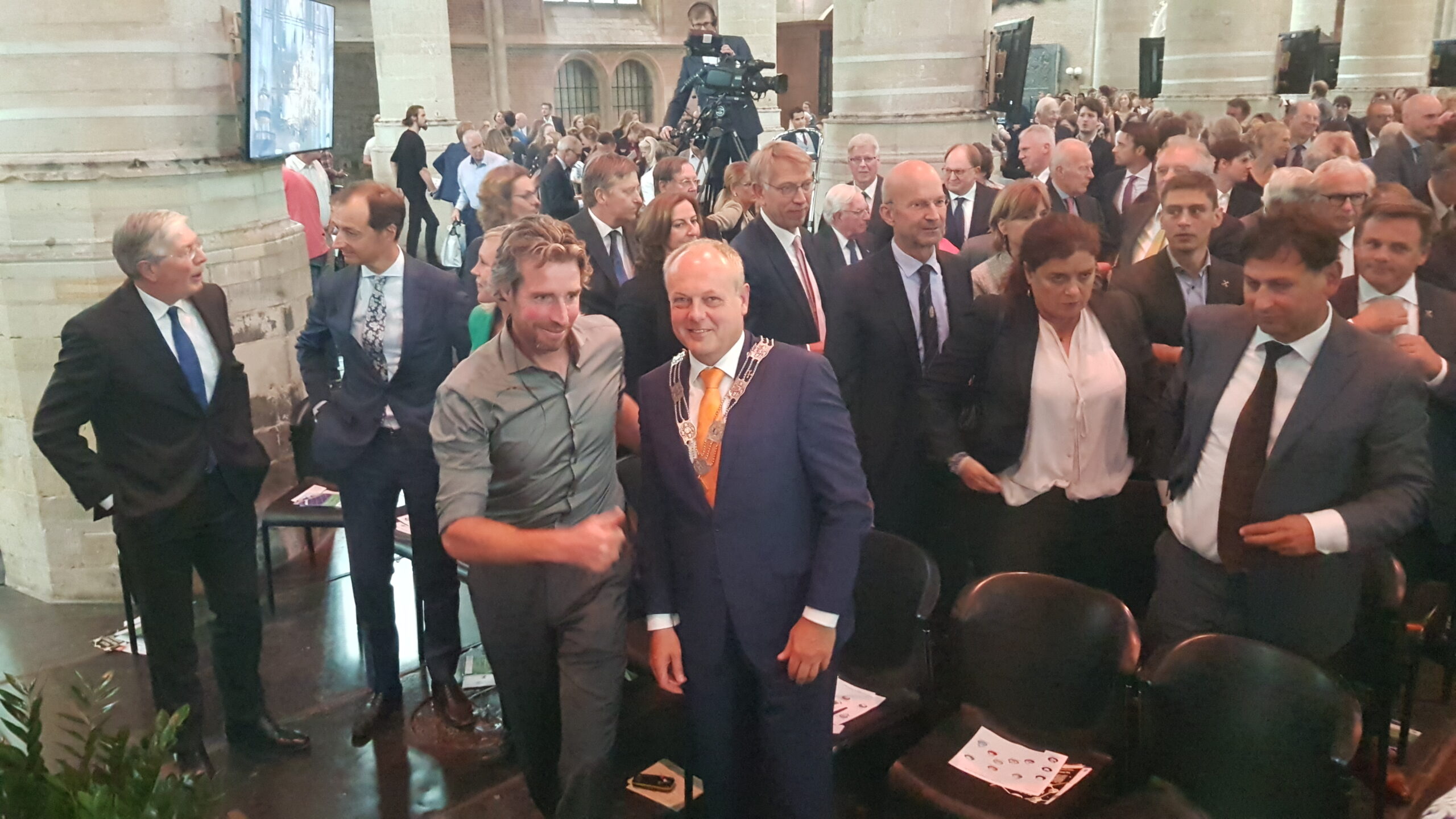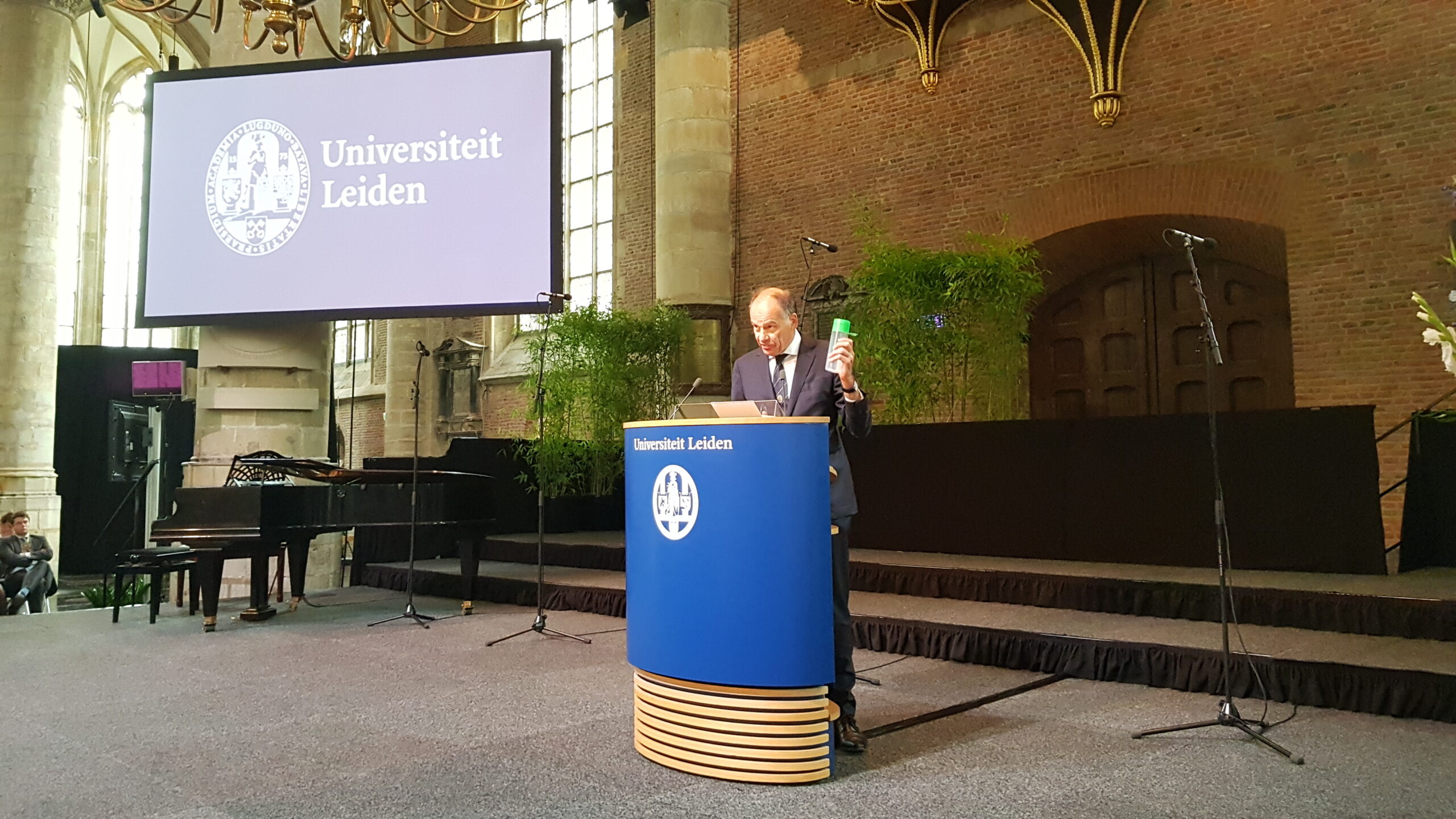 Chris de Waard ging naar de opening van het Academisch Jaar en sprak na afloop van de plechtigheden met bioloog Merijn Tinga alias de Plastic Soup Surfer, met Rector Magnificus Carel Stolker en met student-assessor Anne Leerling van de LUMC-faculteit over duurzaamheid.