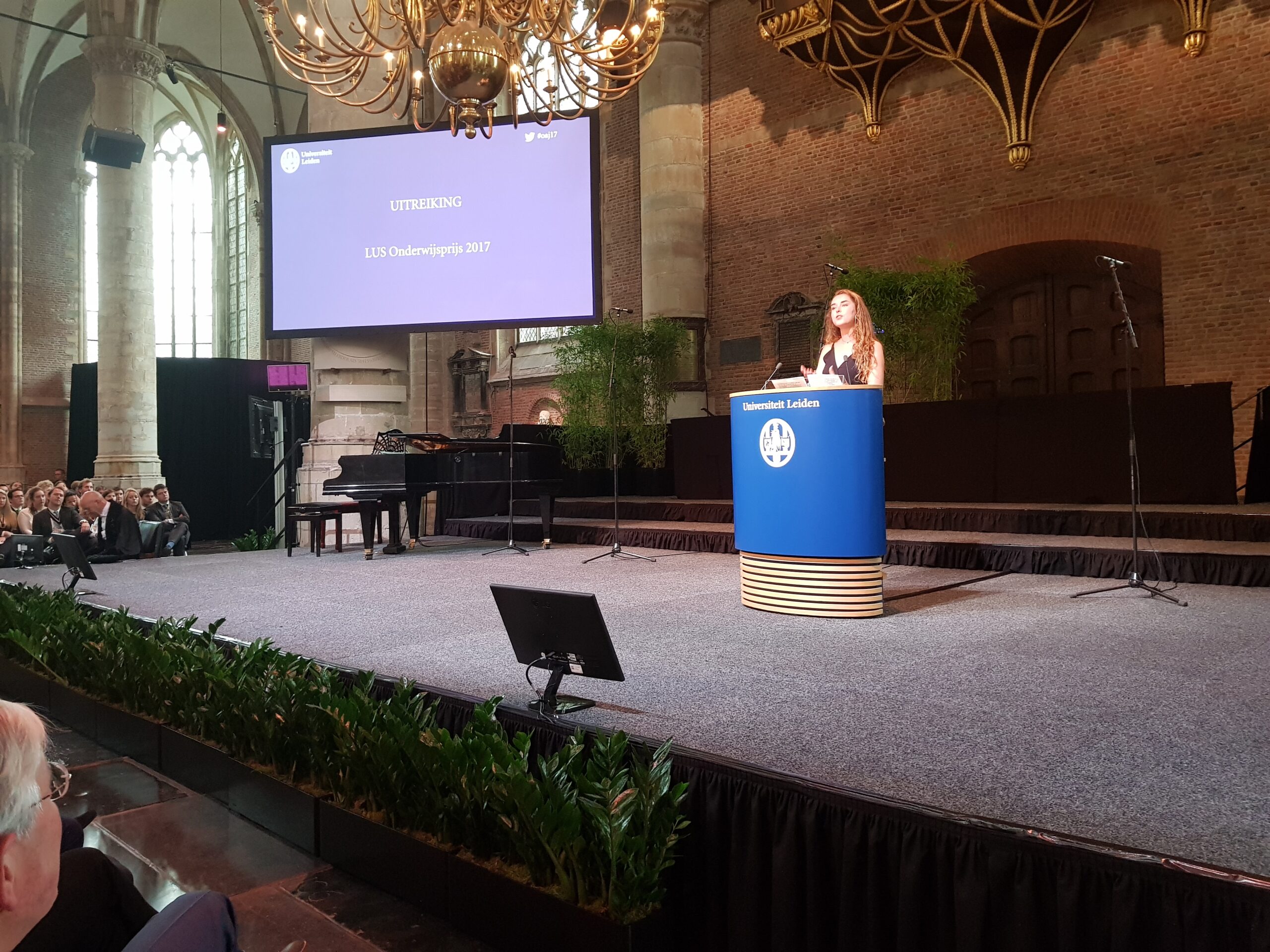 Zichtbaar geroerd nam Schneider de prijs in ontvangst. De winnaar krijgt een plek in de Leiden Teachers’ Academy en daarbij een beurs van 25.000 euro die hij kan besteden aan onderwijsprojecten.