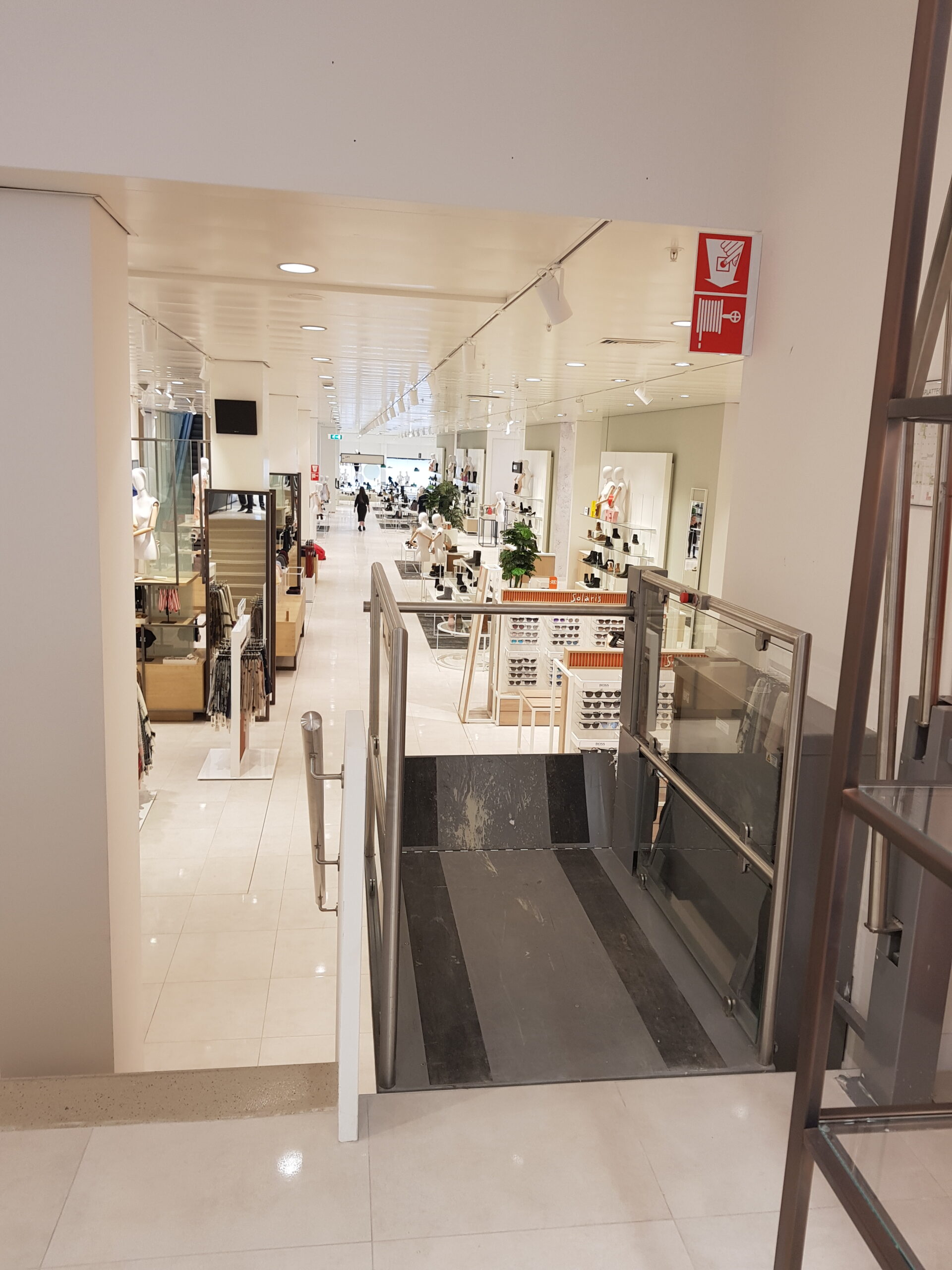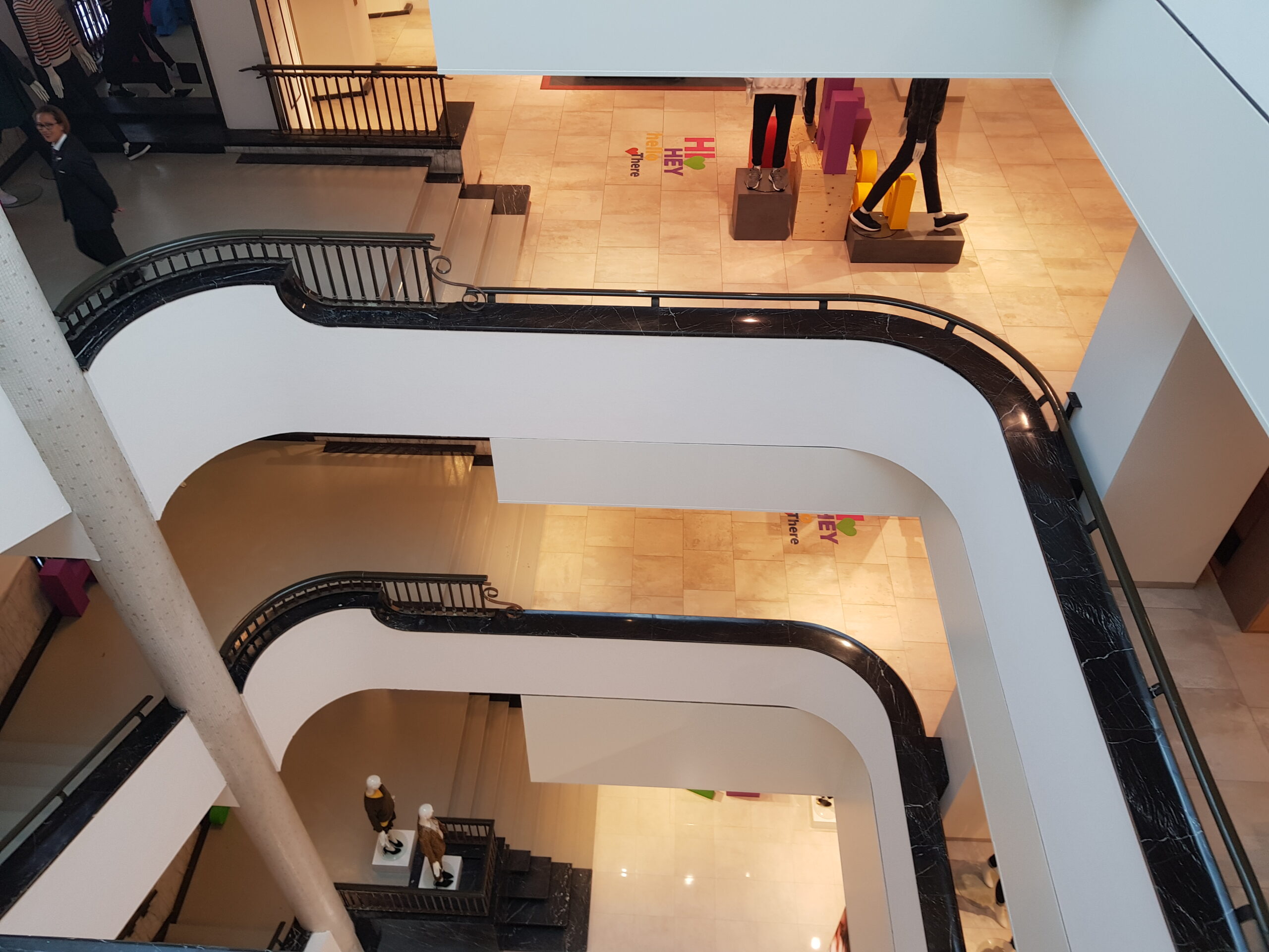 Wat op alle etages opvalt, is de ruime opzet. Brede paden, geen routing. Gewoon lekker struinen tussen het assortiment dat per etage wel een hoofdthema heeft, bijvoorbeeld damesmode op de eerste en herenmode op de stoerder ingerichte tweede etage, maar daarnaast ook verrast met bijvoorbeeld boeken tussen de mode.