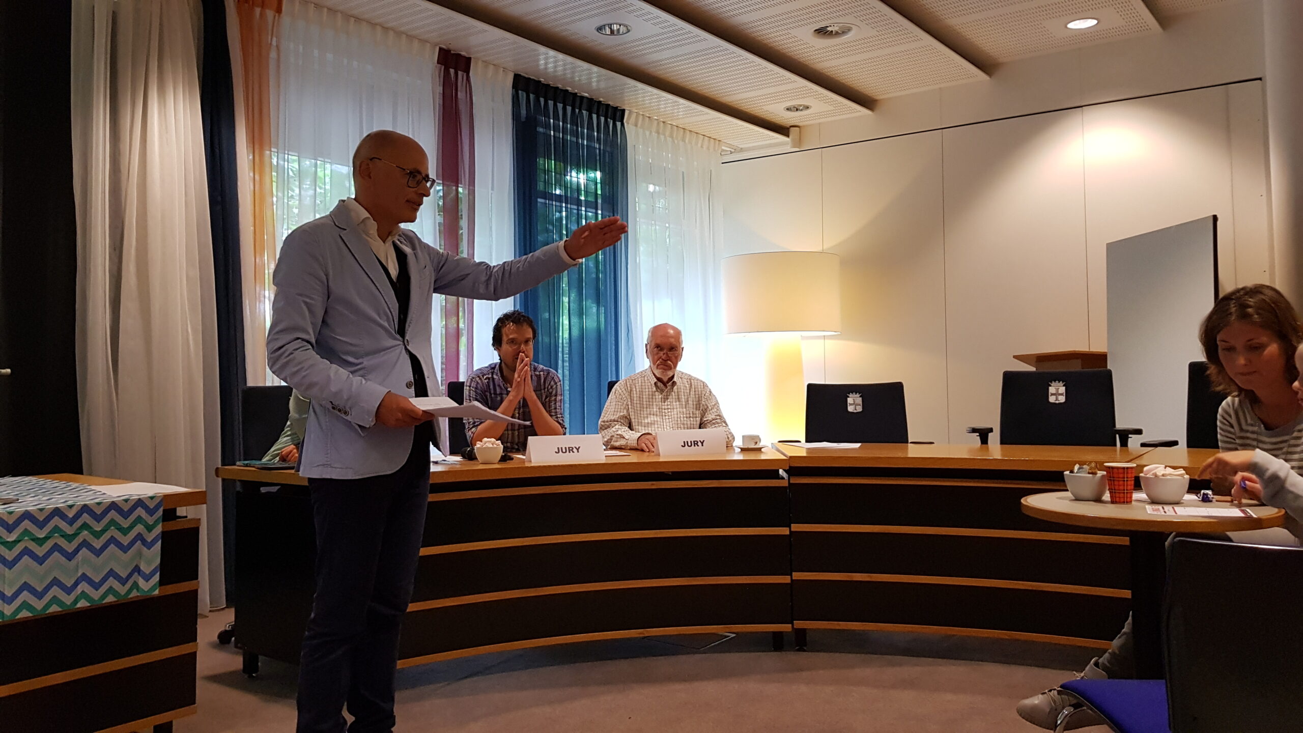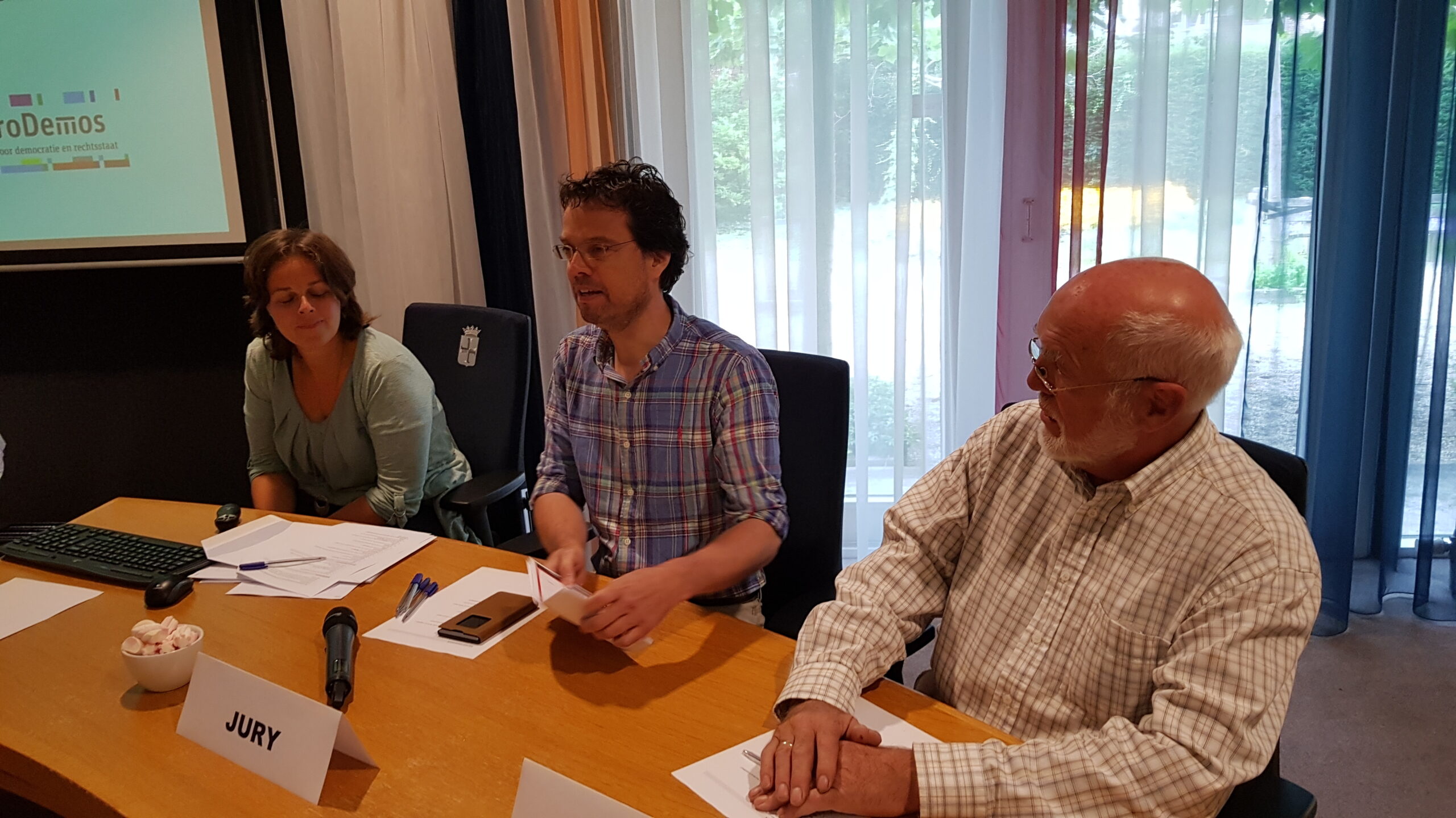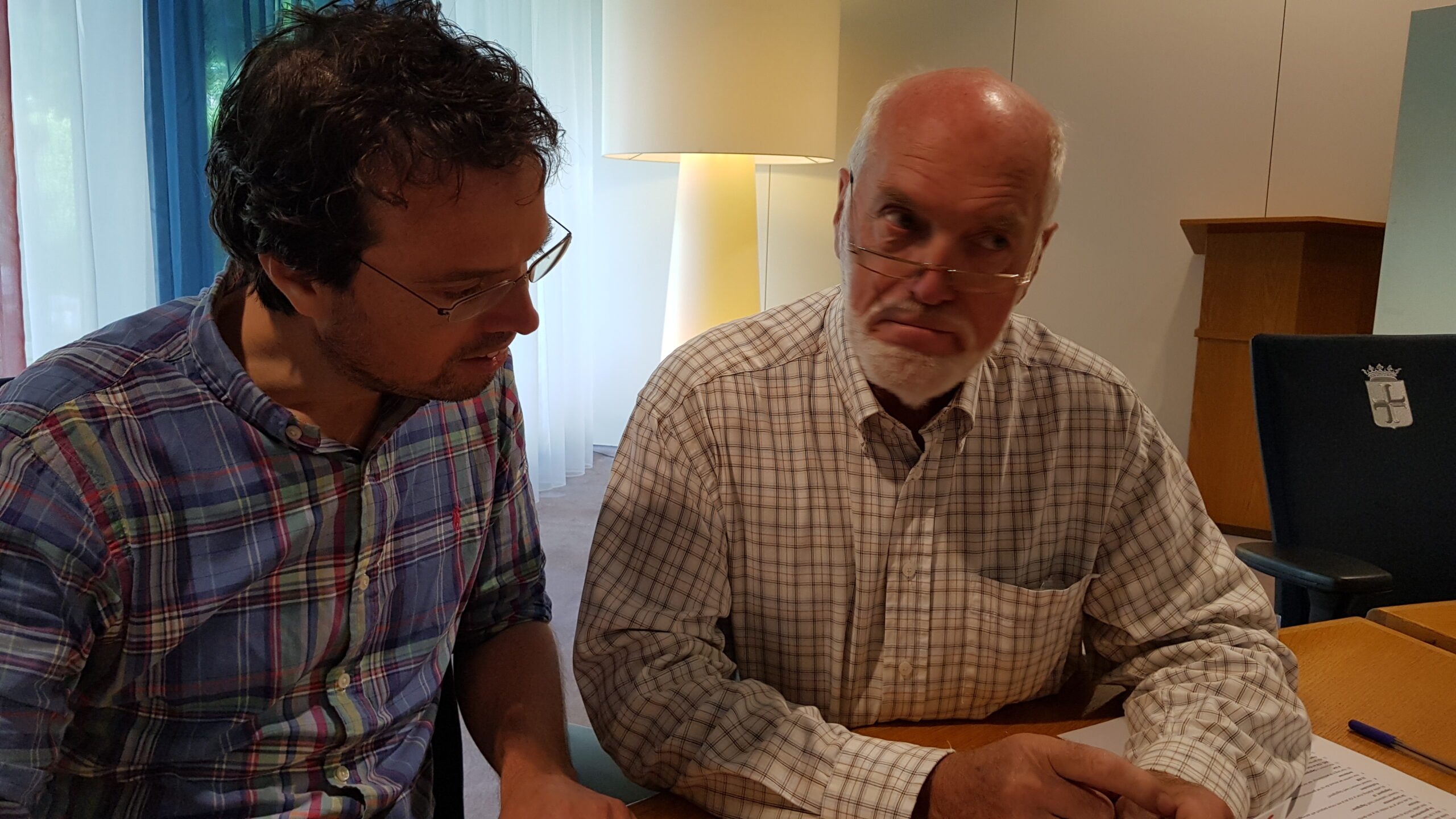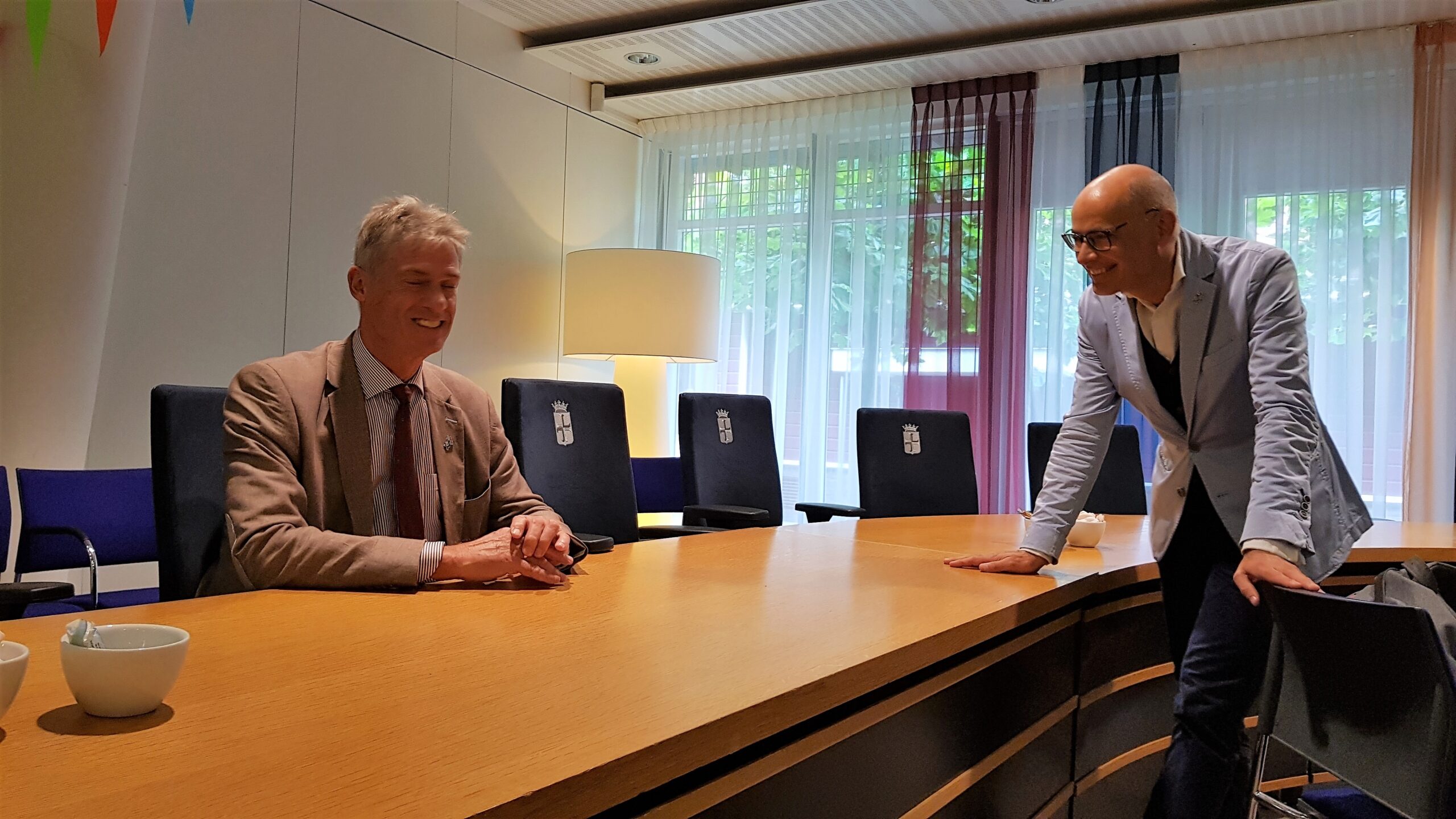 Chris de Waard was zondag in Oegstgeest. Hij kreeg een rondleiding door het gemeentehuis, woonde de kinderbingo bij en sprak met burgemeester Emile Jaensch over de fotowedstrijd en de ideeënboom.