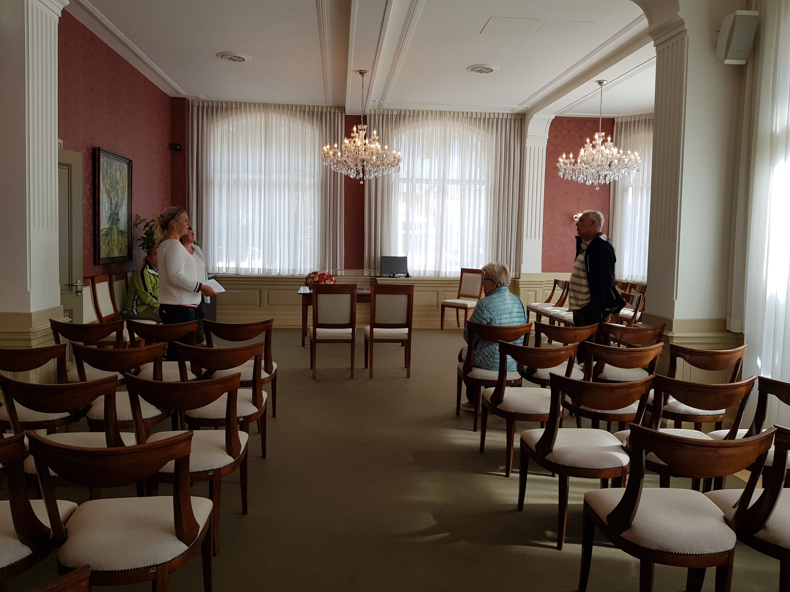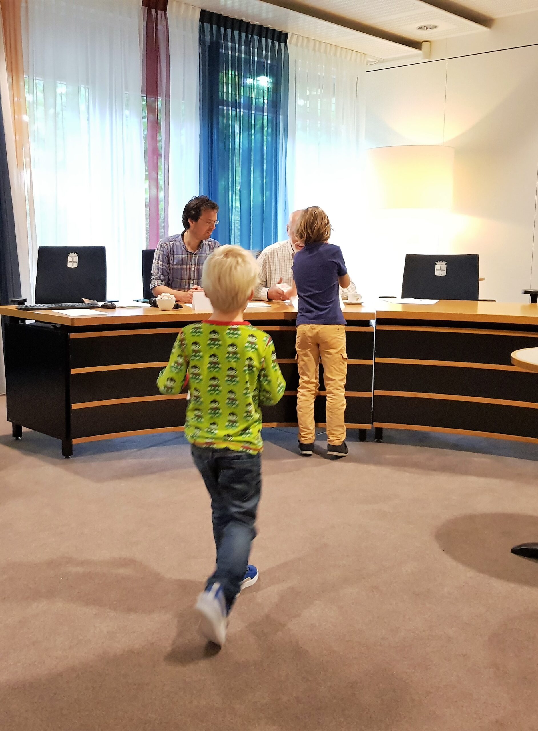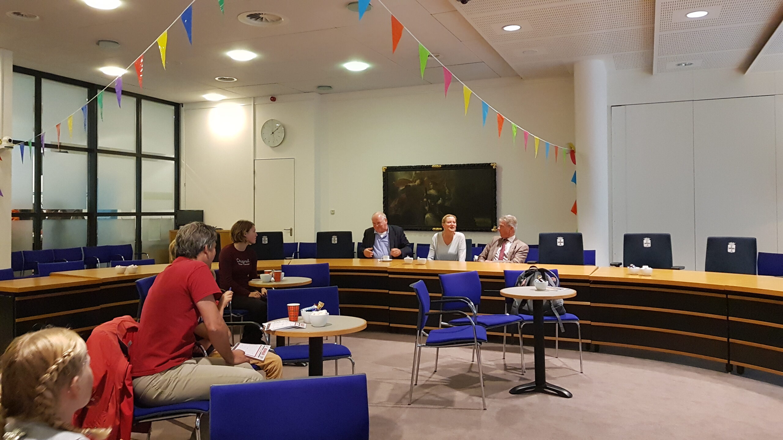 In het gemeentehuis gaven wethouder Jos Roeffen en verschillende raadsleden, waaronder VVD-raadslid Susan Verlinden rondleidingen.