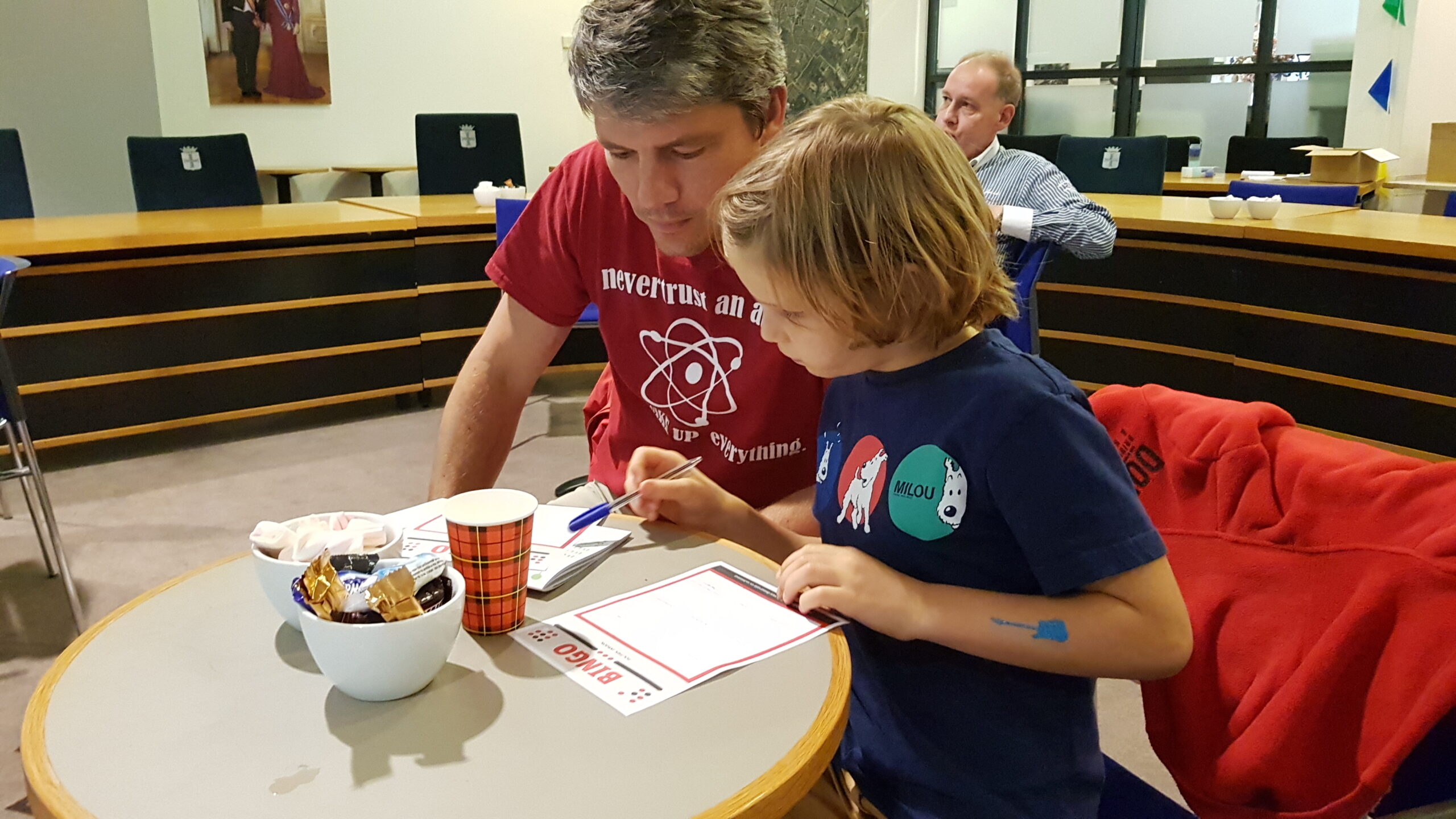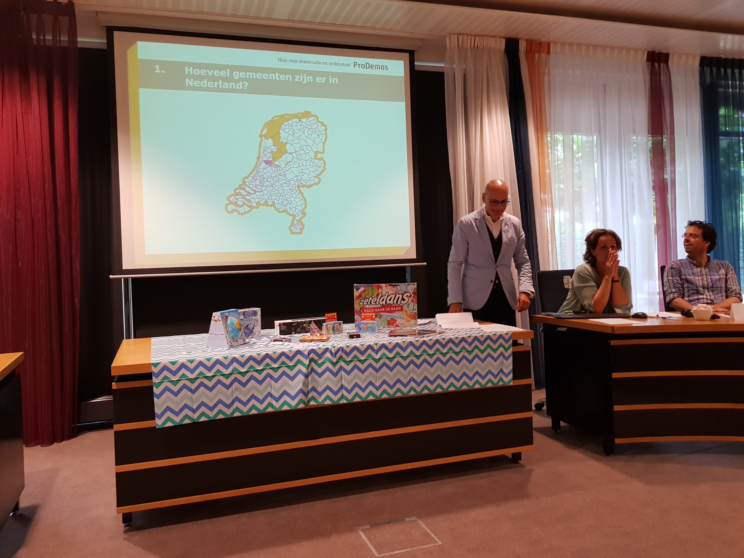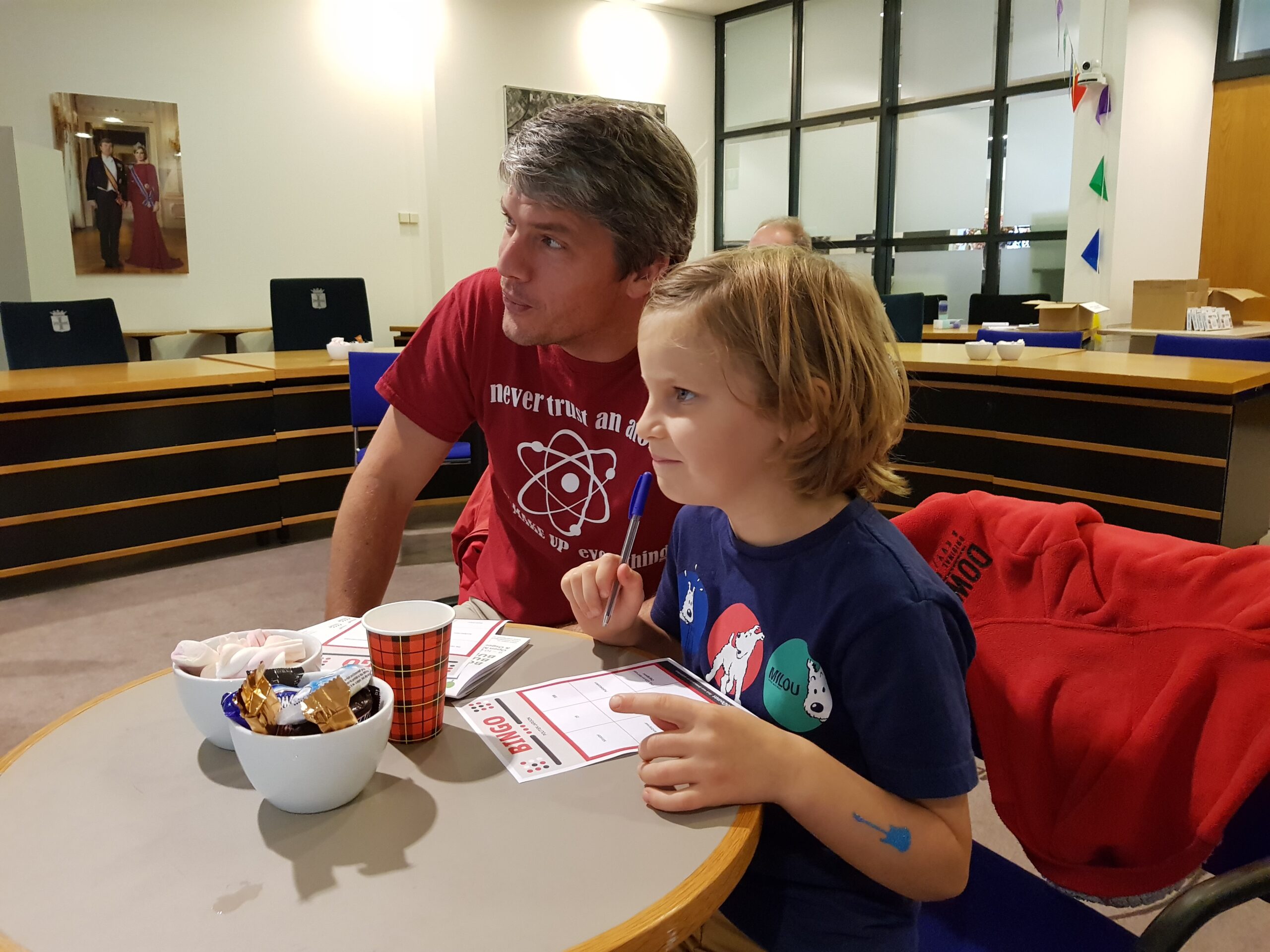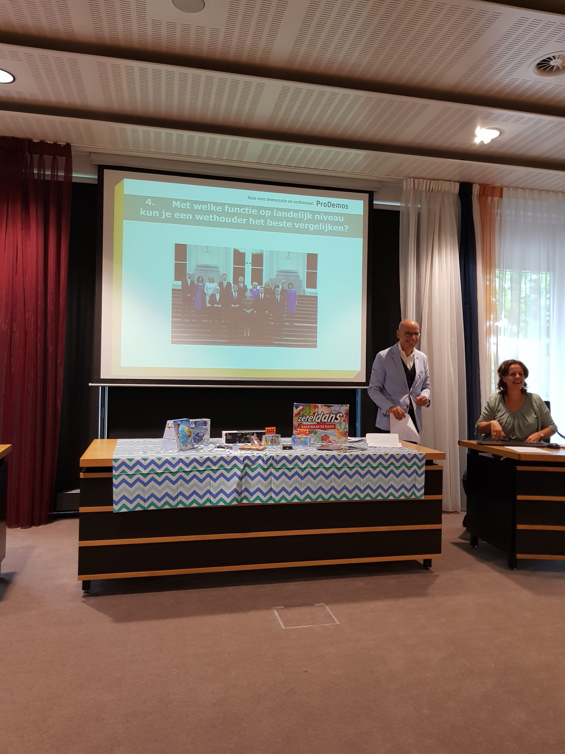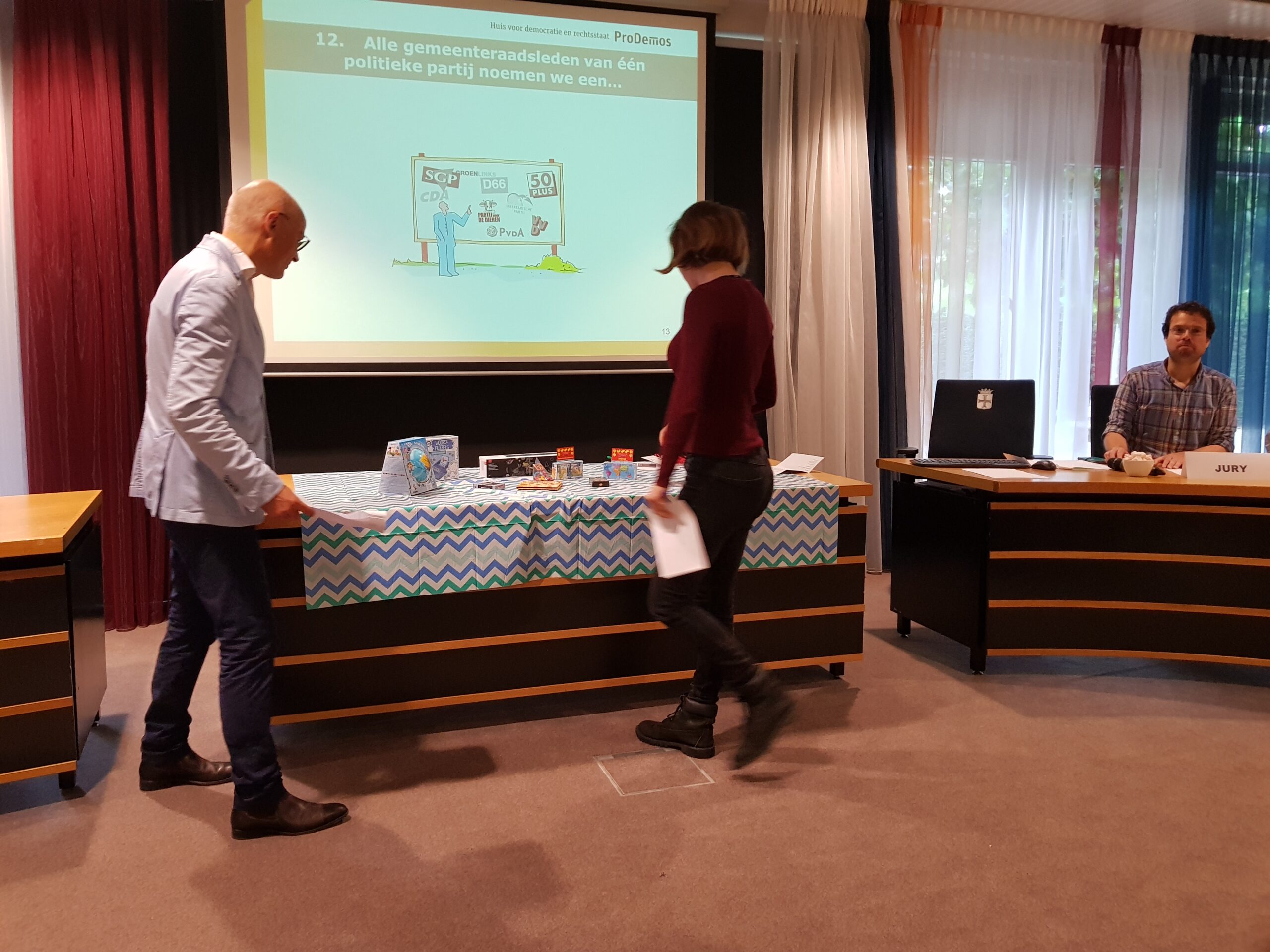 Burgemeester Jaensch van Oegstgeest stelde de vragen bij de bingo en de hoofdprijs, een dagje meelopen met de burgemeester, eindigt als het aan de zesjarige winnares Elize ligt in zwembad Poelmeer. “Maar misschien durft ‘ie wel helemaal niet te zwemmen omdat hij geen diploma heeft,” opperde de winnares. “Ik heb een beetje watervrees,” gaf Jaensch wel toe. Maar een leuke dag gaan ze er zeker van maken.