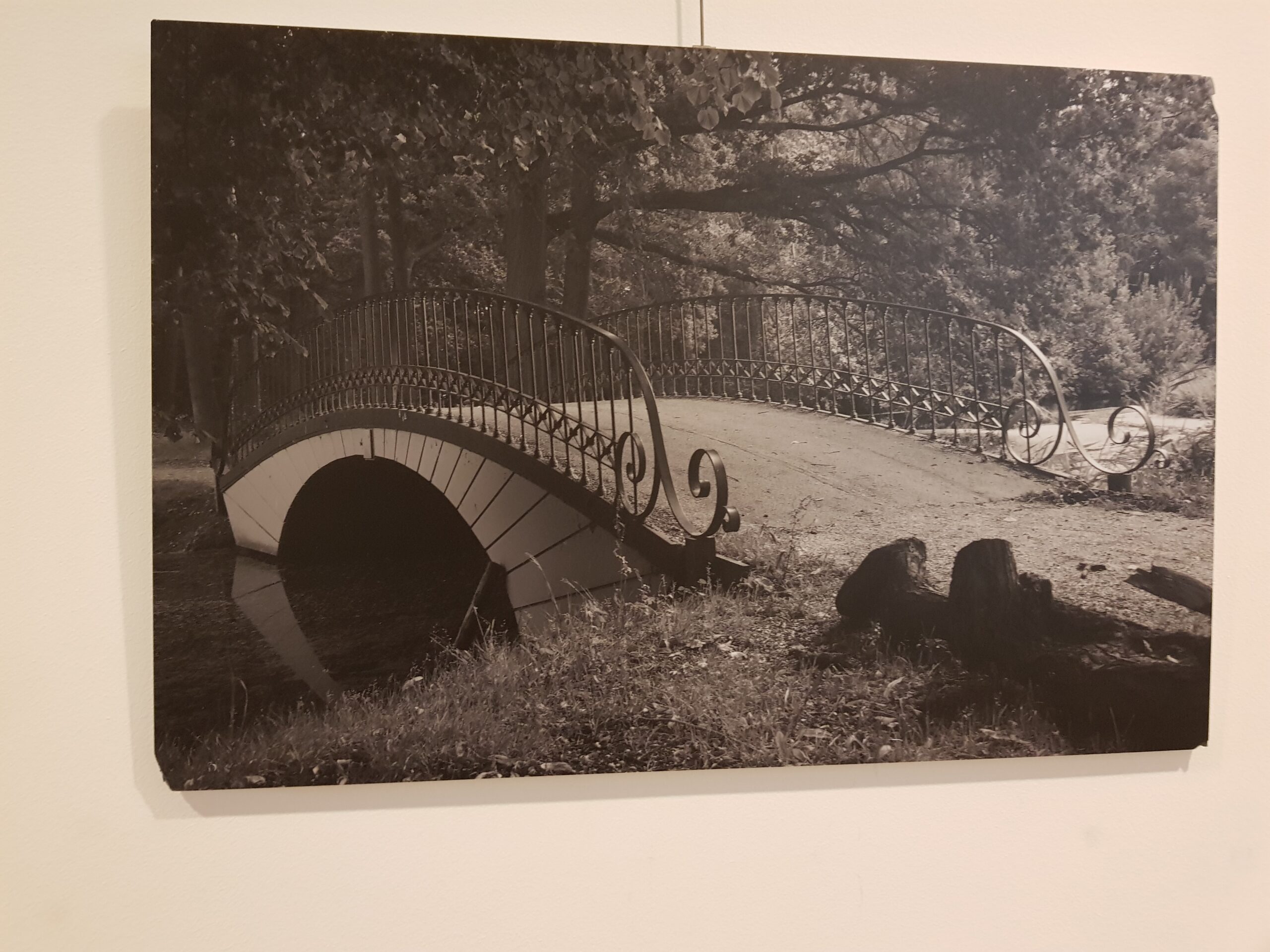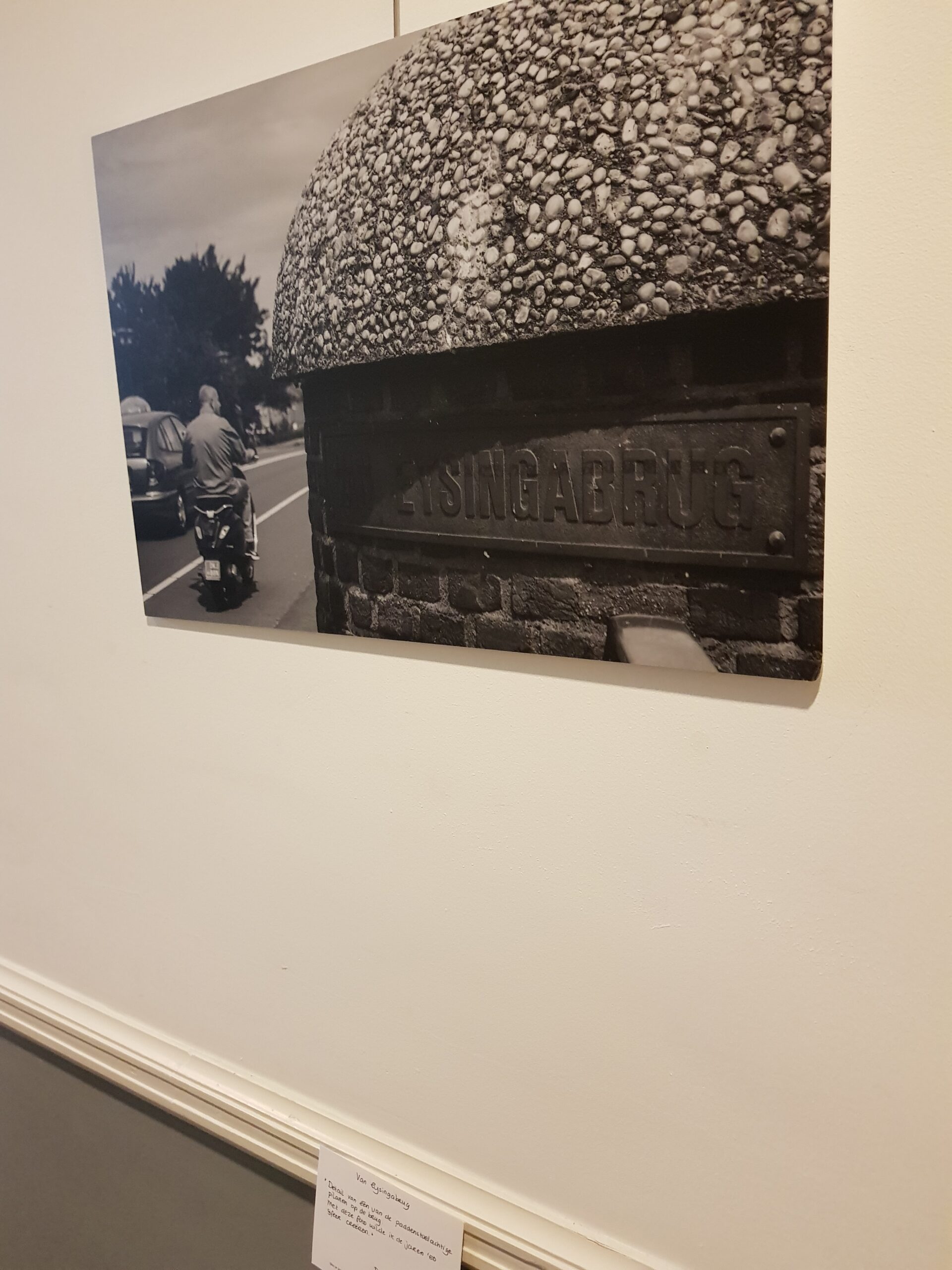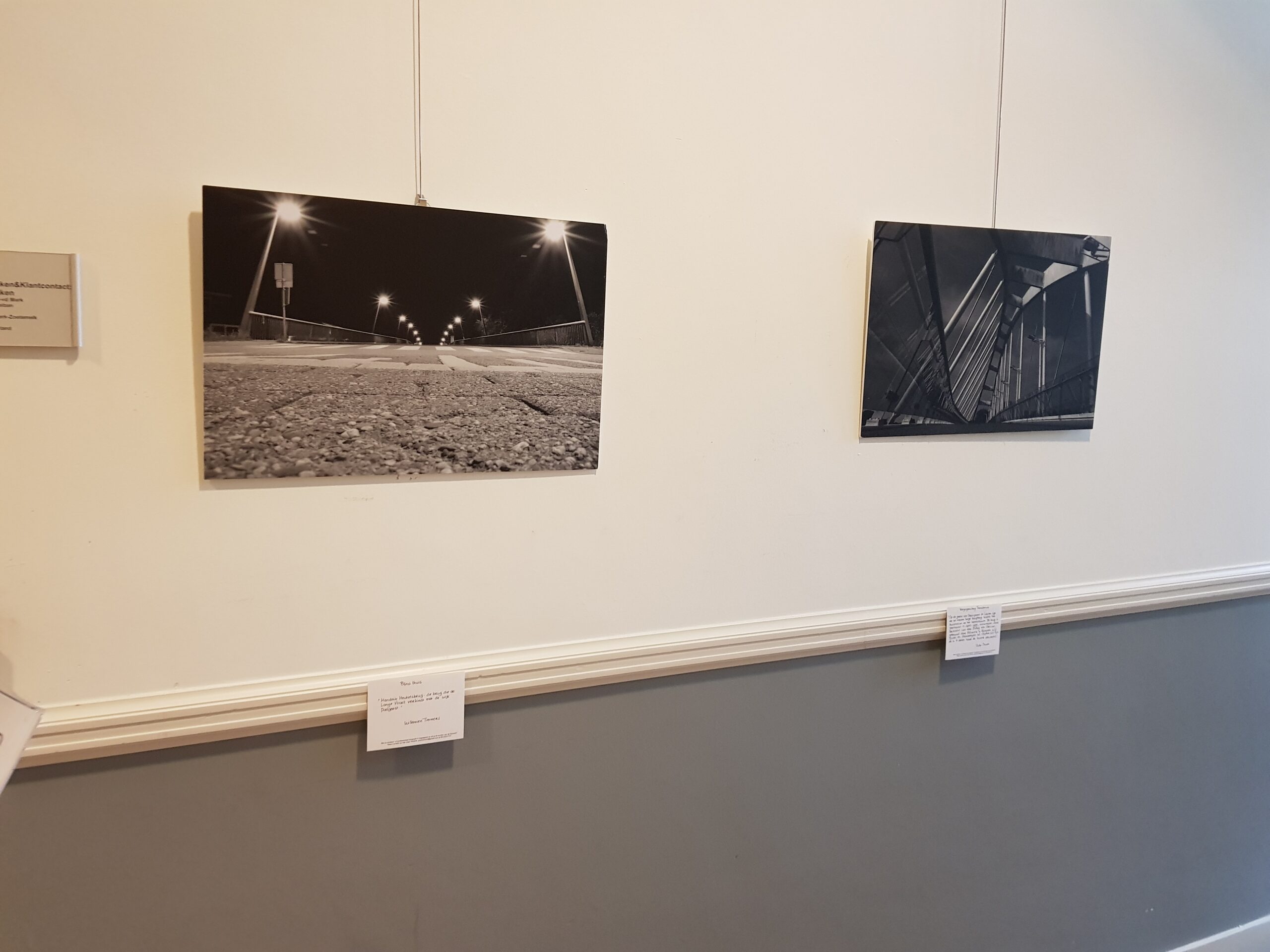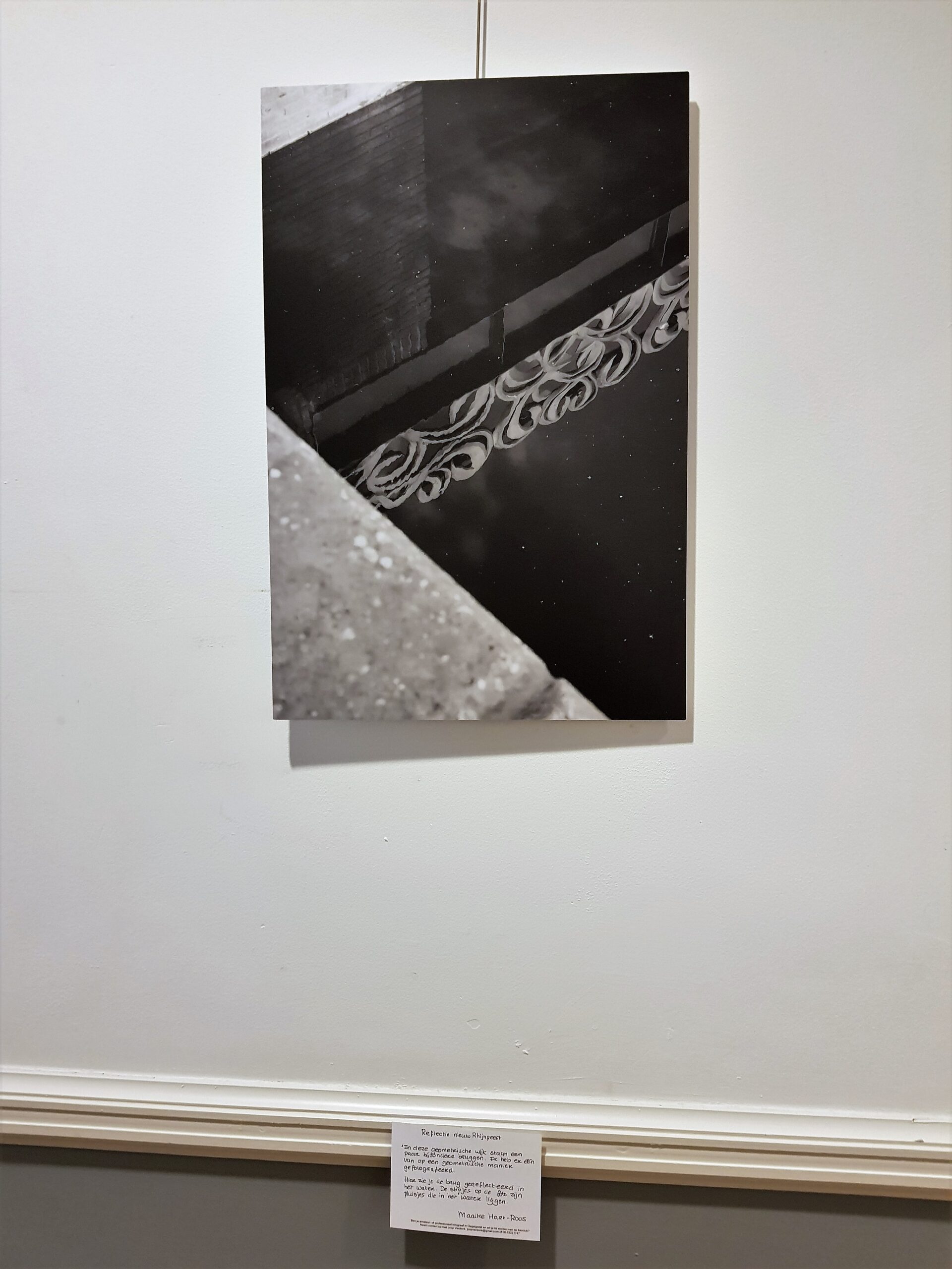 In de hal een expositie van zwartwitfoto’s van bruggen in Oegstgeest. Gemaakt door de leden van de Fotoclub Oegstgeest. Winnares werd Maaike Hart met haar foto van een brug in Nieuw Rhijngeest. Dat is de eerste van het overzicht hierboven.