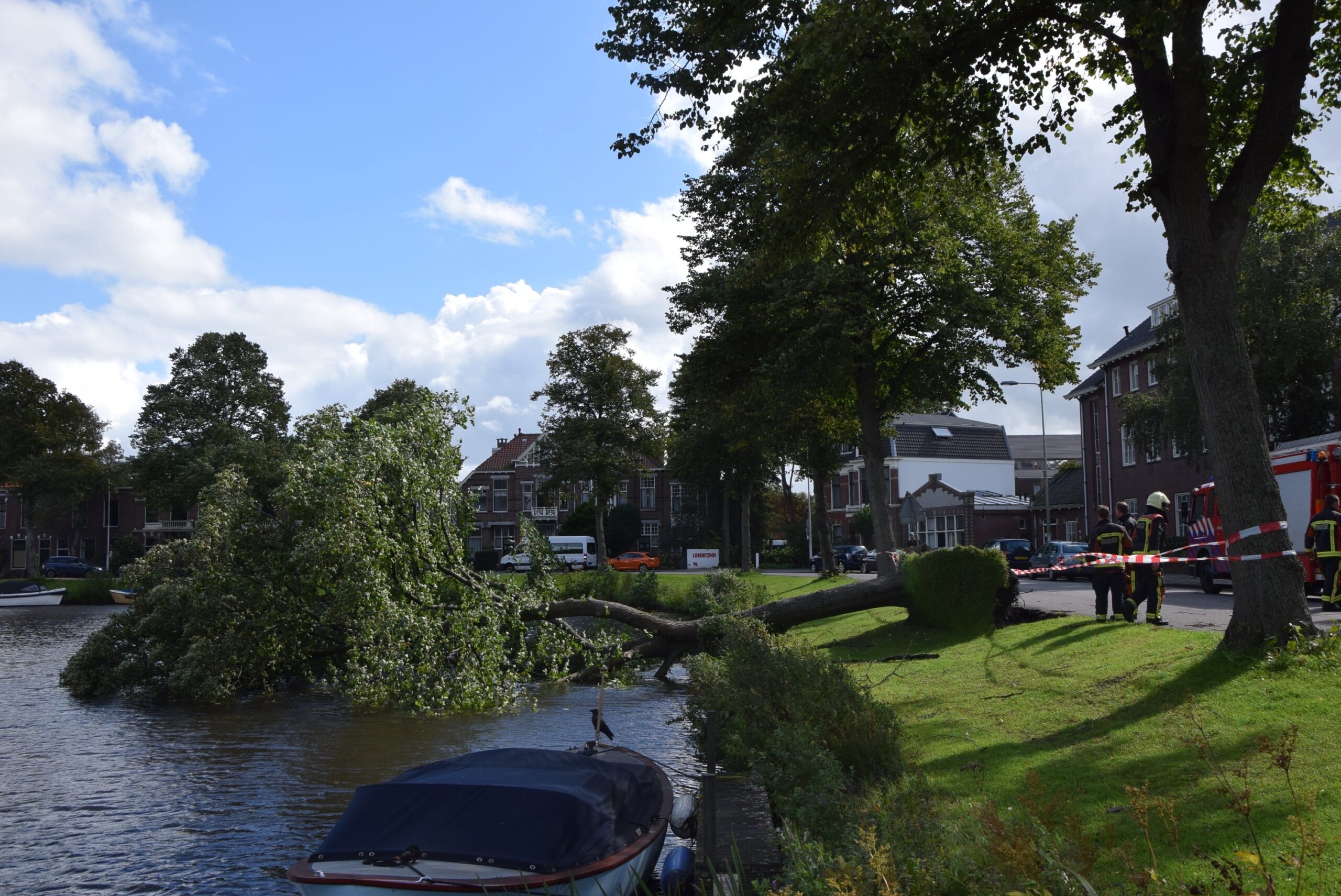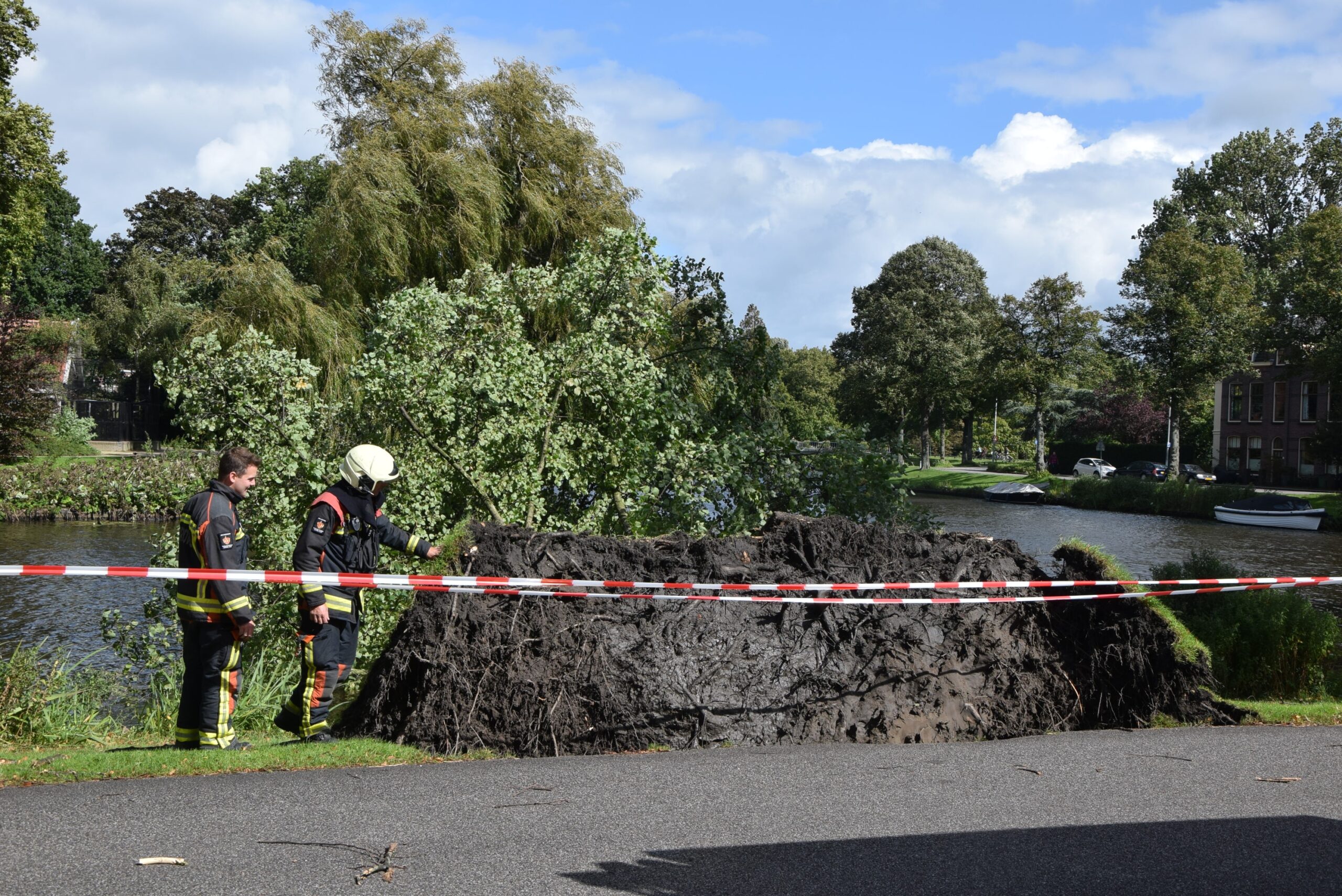 In de eerste herfststorm van dit jaar is een forse boom geveld op de Zoeterwoudsesingel. De boom ging met wortel en al om en kwam in het water terecht. De windworp zorgde niet voor gevaarlijke situaties en dus heeft de brandweer het vanwege de drukte bij het afzetten van de omgewaaide boom gelaten.