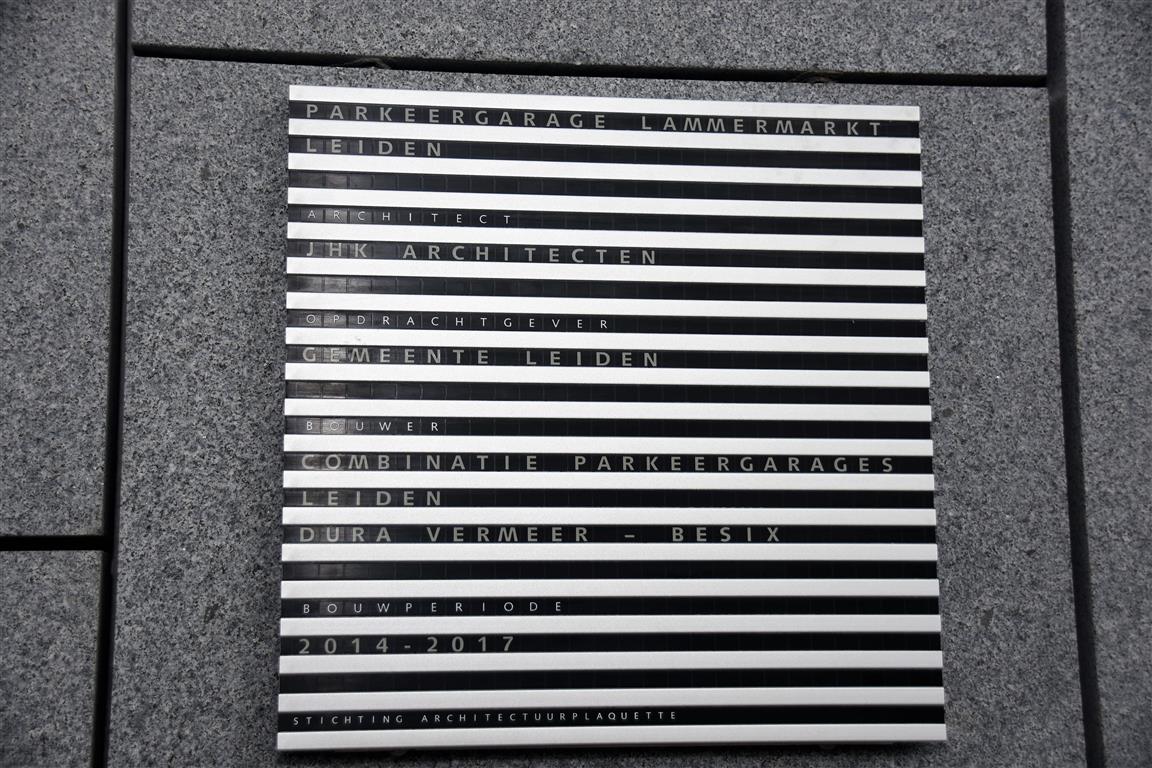 In de Parkeergarage Lammermarkt is donderdagmiddag de architectuurplaquette onthuld. Daarbij waren alle partijen aanwezig die betrokken waren bij de voorbereiding en realisatie van de garage: Gemeente Leiden als opdrachtgever, JHK Architecten en de combinatie parkeergarages Leiden Dura Vermeer/Besix. De architectuurplaquette is geen prijs, maar meer een waardering die de partijen op deze manier uitspreken voor de samenwerking en het resultaat.
