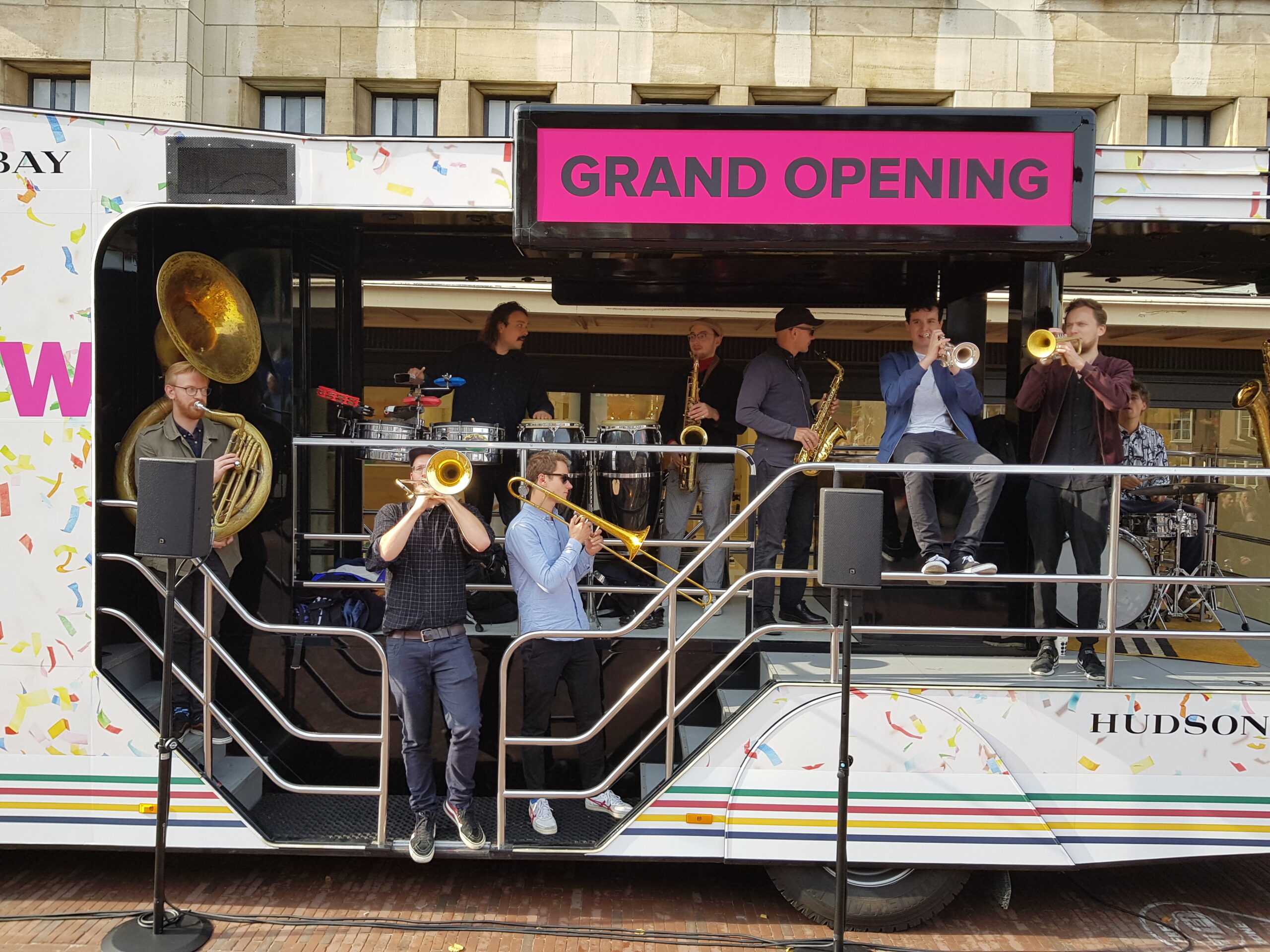Hudson’s Bay is vanmorgen officieel geopend door locoburgemeester Robert Strijk. Op de opening die gepaard ging met feestelijke muziek, confetti en het uitdelen van cadeautjes kwamen honderden mensen af. Op 12 september ging de winkel al open voor het winkelend publiek.