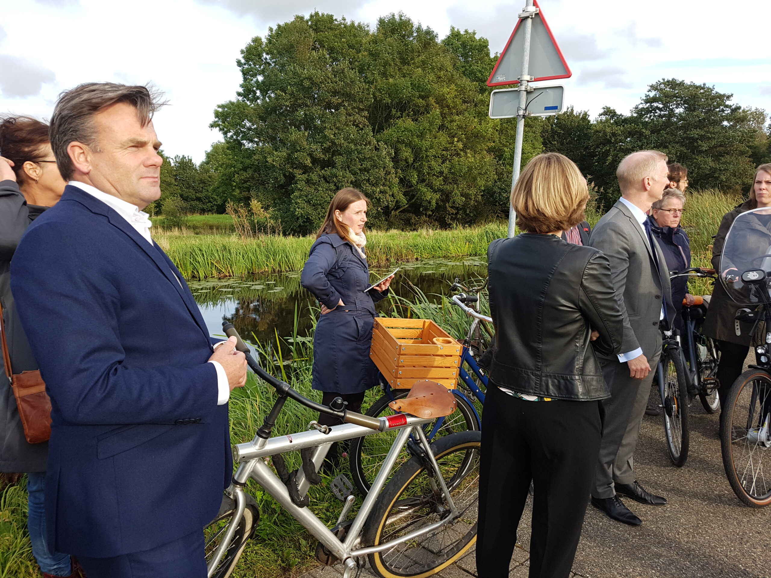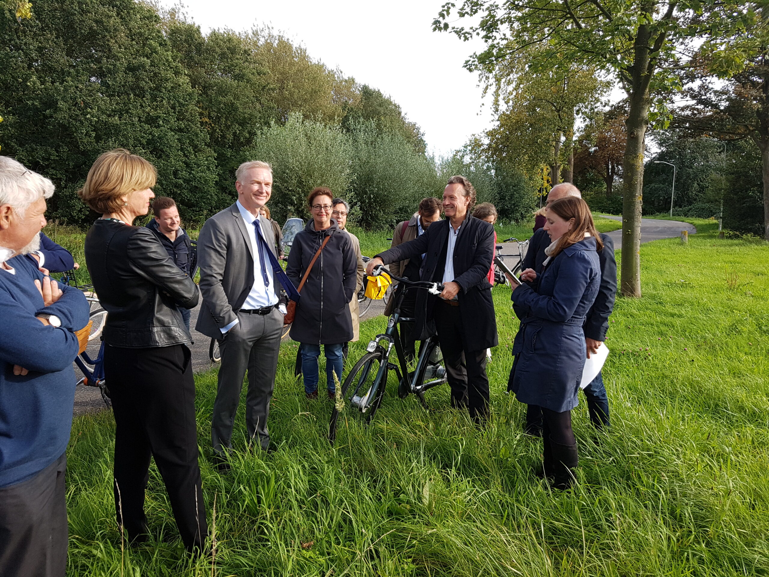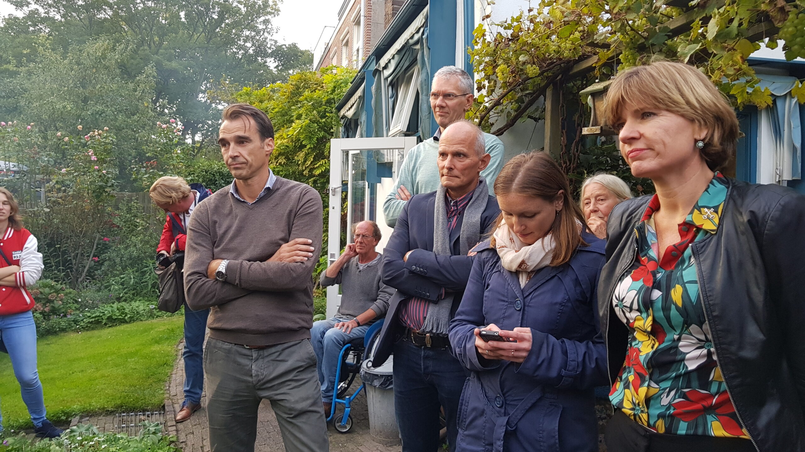De dag begon aan de Vrouwenweg. Voorzitter Alexandra van Strien van de bewonersvereniging heeft de kans aangegrepen om de wethouders de mooie kanten van ‘het dorp in de stad’ te laten zien, maar ook wat knelpunten te bespreken. Van Strien zegt dat de buurt erg hecht is en zeer groen, maar wel last heeft van vandalisme en hardrijders door de straat, zowel met de auto als op de fiets.
