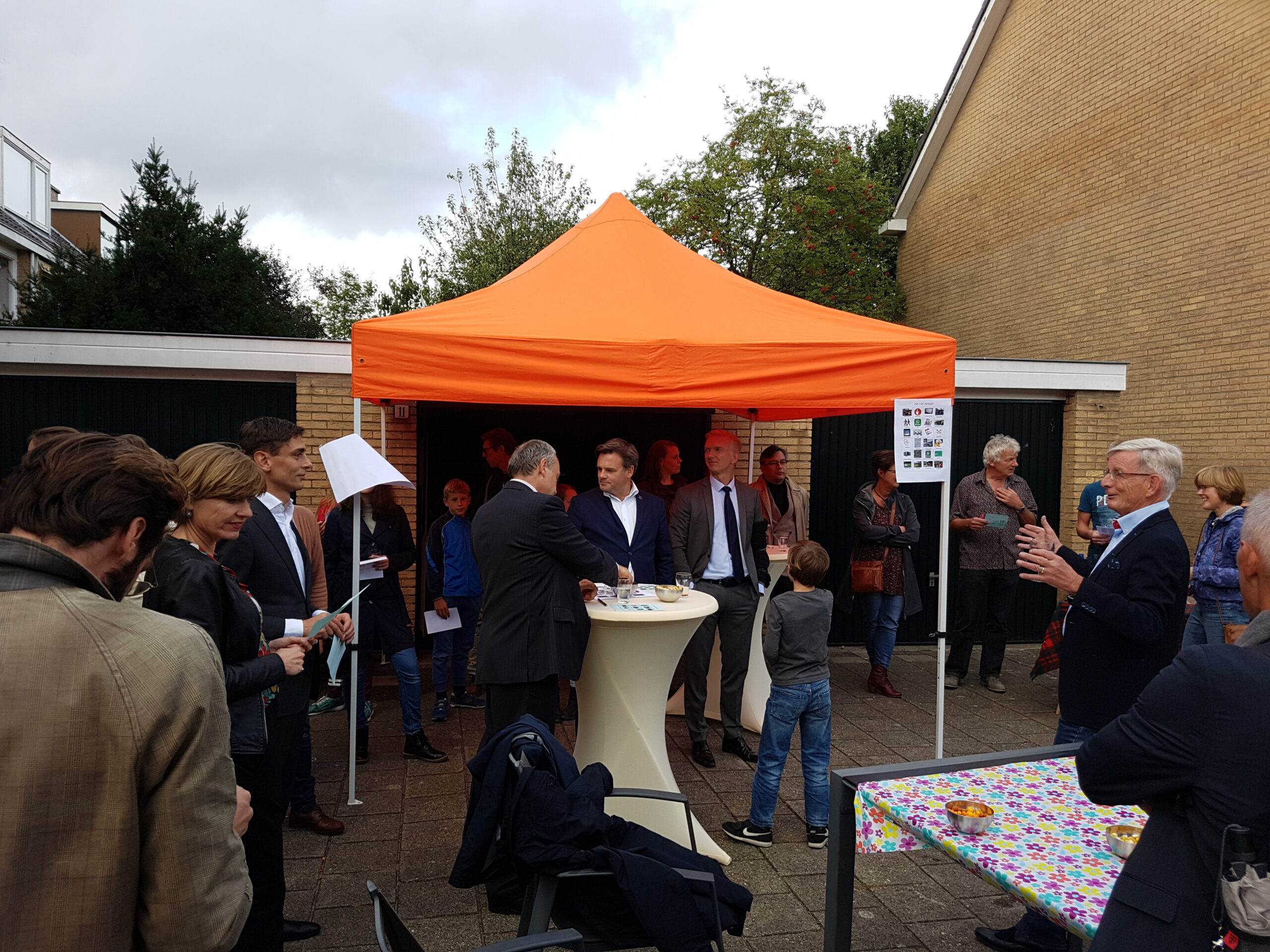 De College Tour gaat verder naar de Bewonersontmoetingsplek aan de Willem Klooslaan om te praten met de nieuwe bewoners van het Churchillpark over wateroverlast in de wijk en de ‘racebaan’ Boshuizerkade waar wel 80 kilometer per uur wordt gereden.