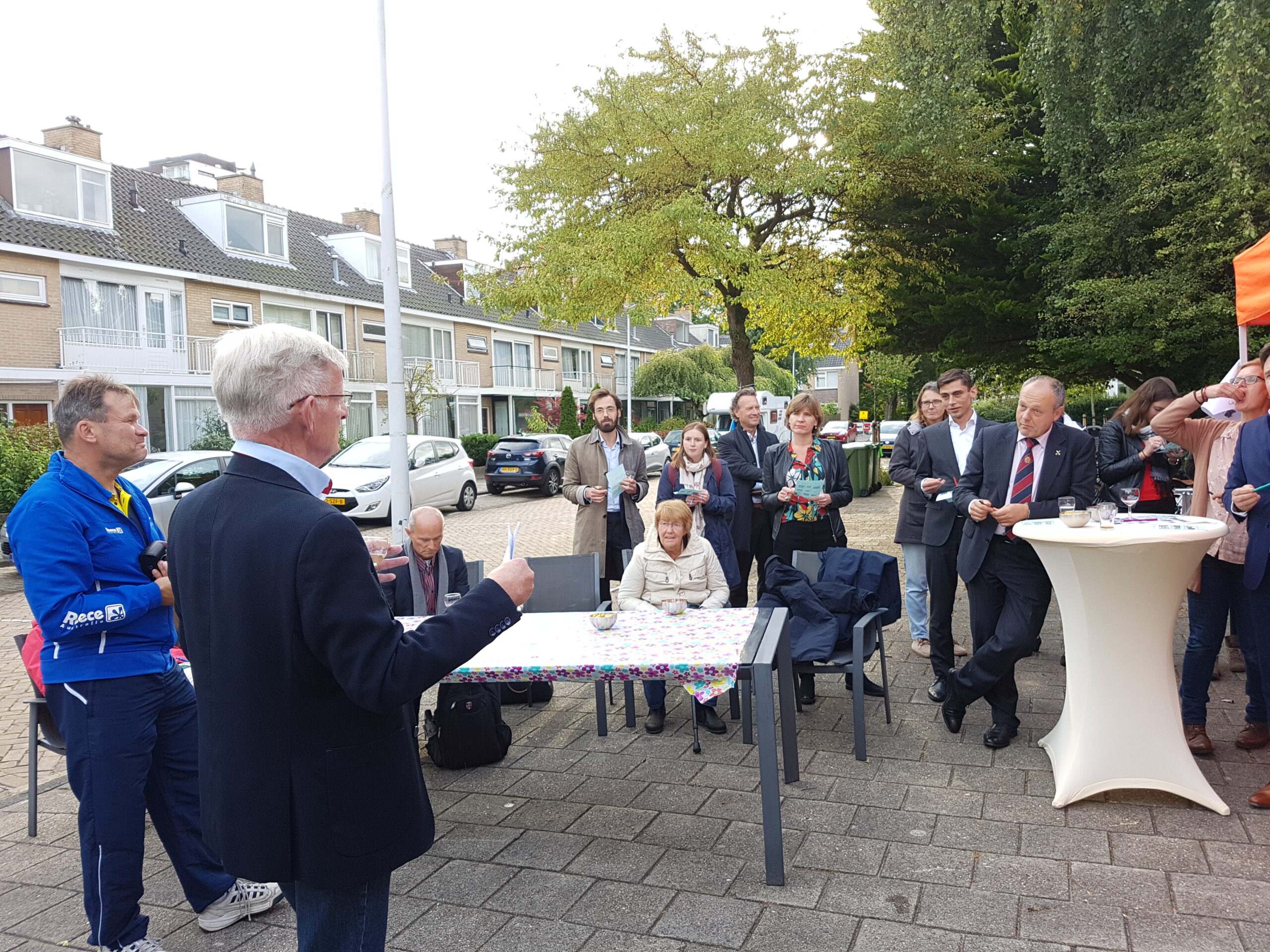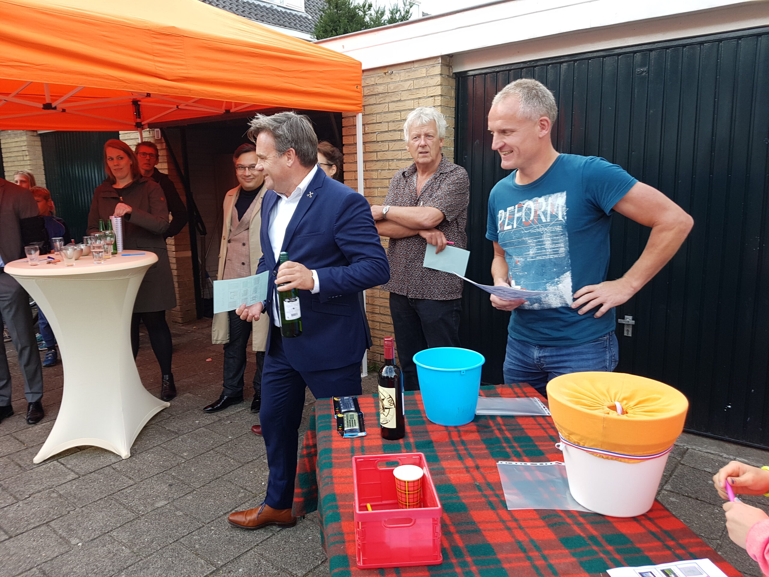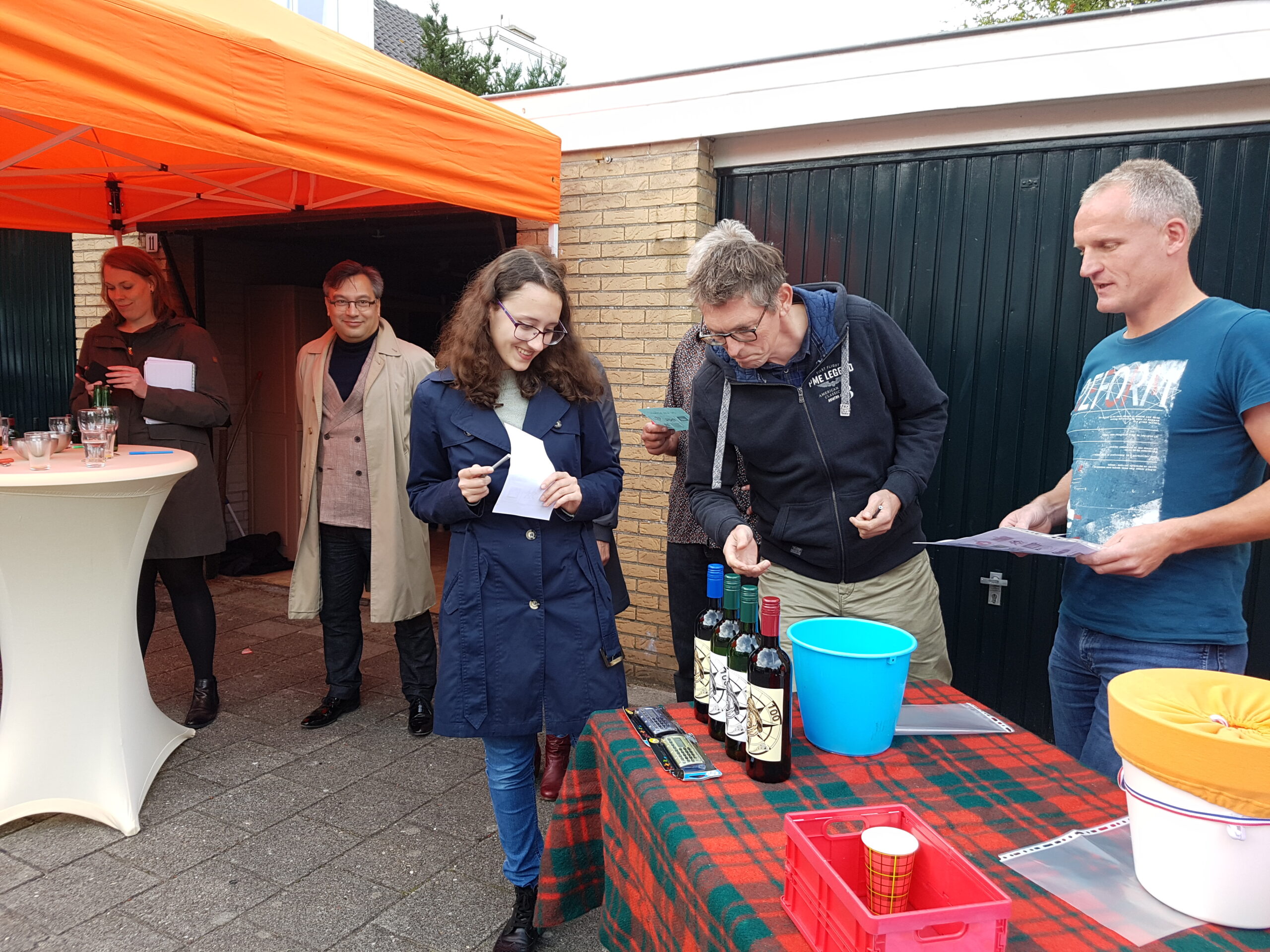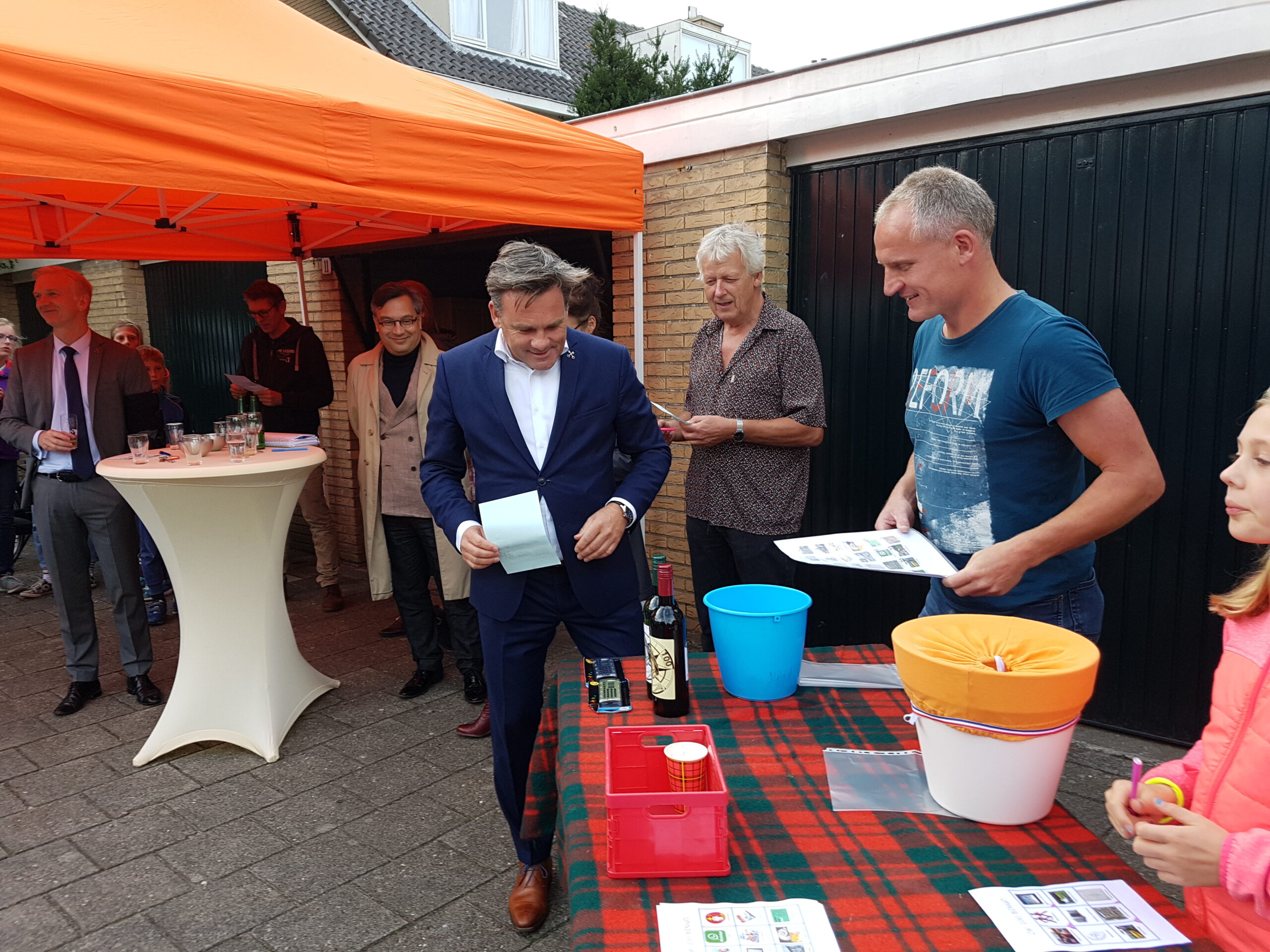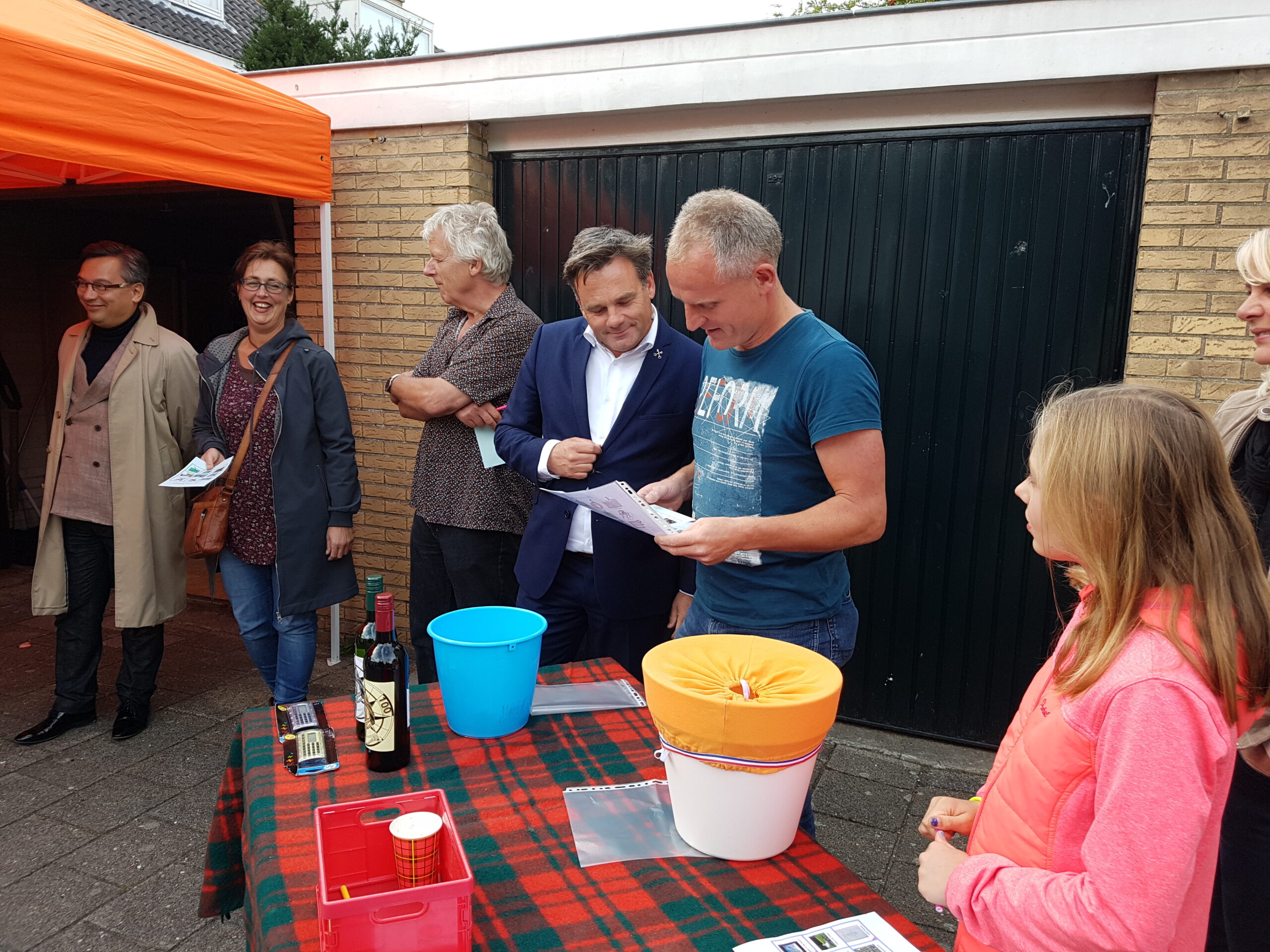De volgende stop was in de componistenbuurt waar een buurtbingo werd georganiseerd door de Vereniging van Eigenaren in de Paganinistraat. Een bijzondere vereniging die al 50 jaar bestaat en regelmatig evenementen voor de buurt organiseert. Wethouder Paul Dirkse viel in de prijzen, hij mocht een fles wijn uitzoeken voor het college. Hij kwam wel eerst aanzetten met een ‘valse bingo’, maar dat foutje werd door de vingers gezien.