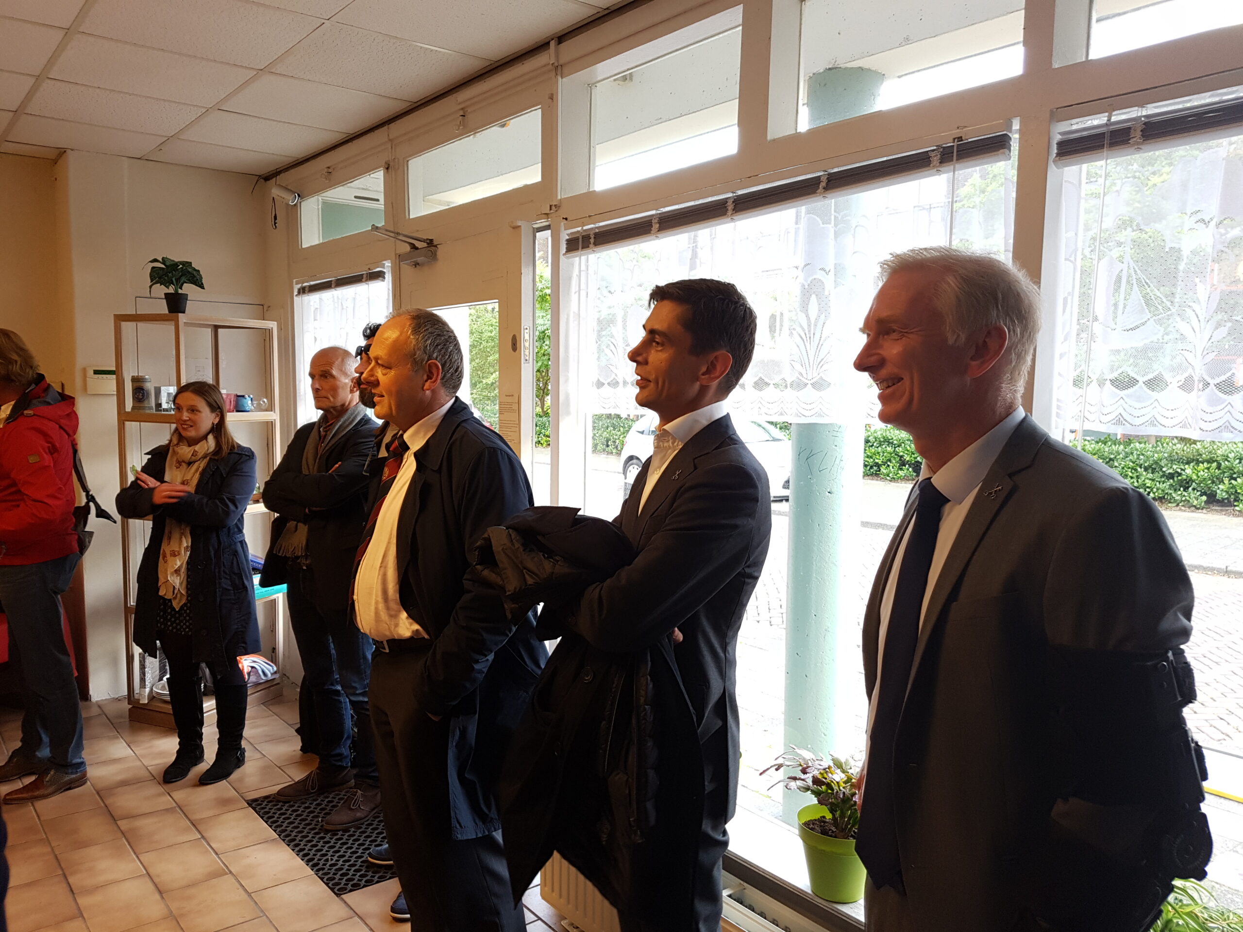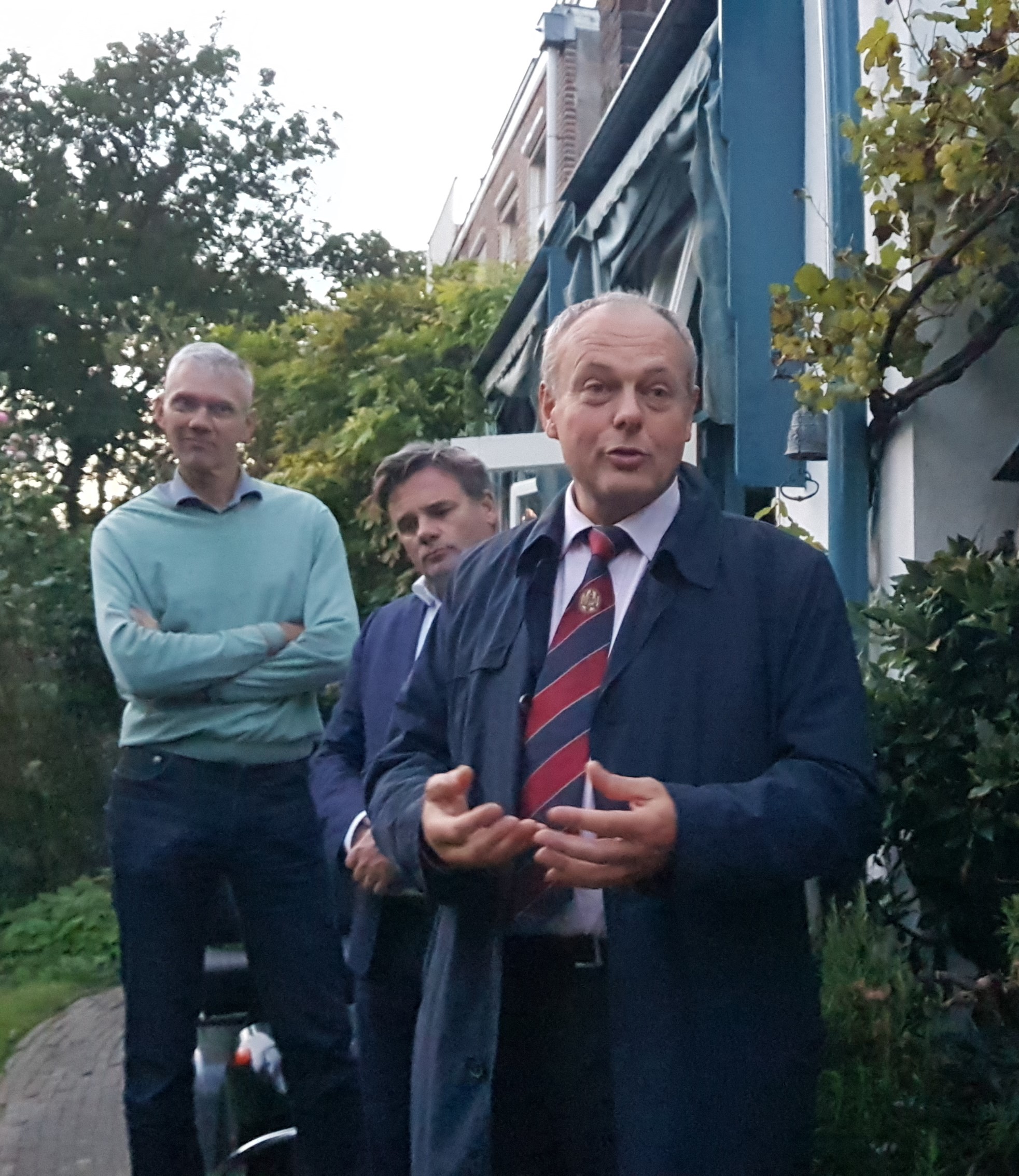 Wethouder Damen hoorde wat Leidenaars vinden van de Rijnlandroute, verkeersoverlast, en andere zorgen die ze hebben over hun woonomgeving. Maar Damen is ook blij om te horen dat veel mensen met zeer veel plezier wonen in hun wijk en zelf ook willen bijdragen aan verbeteringen.