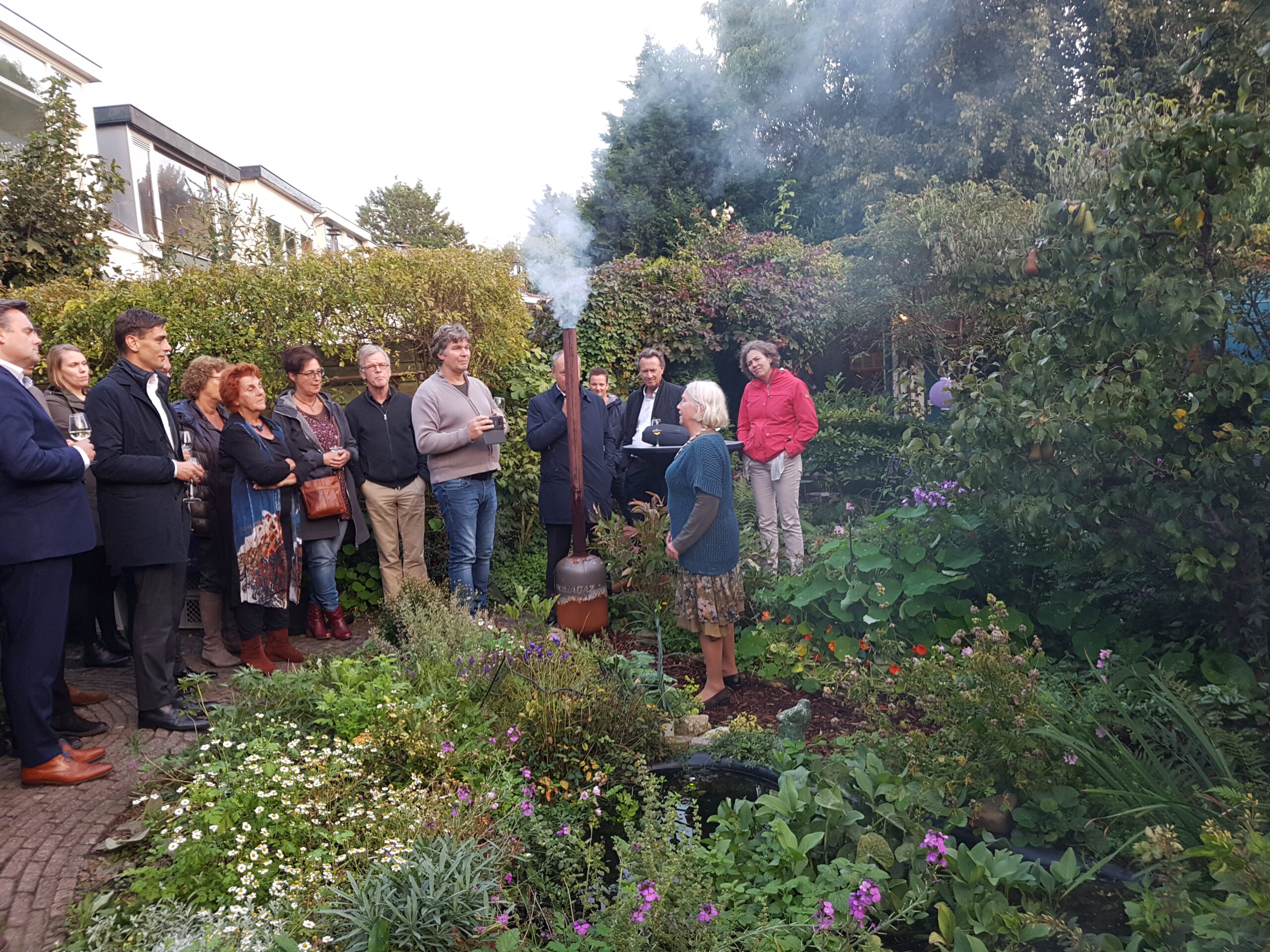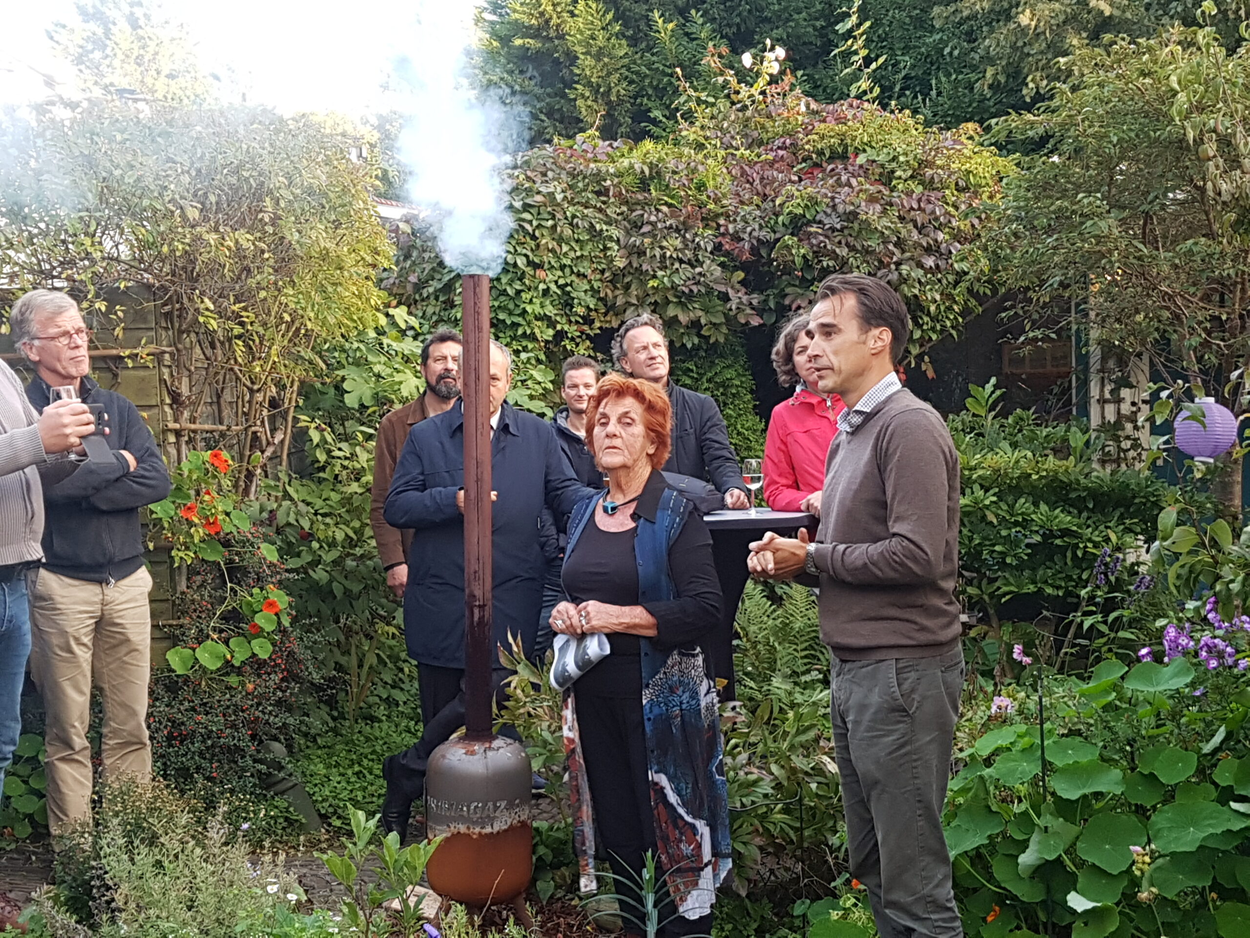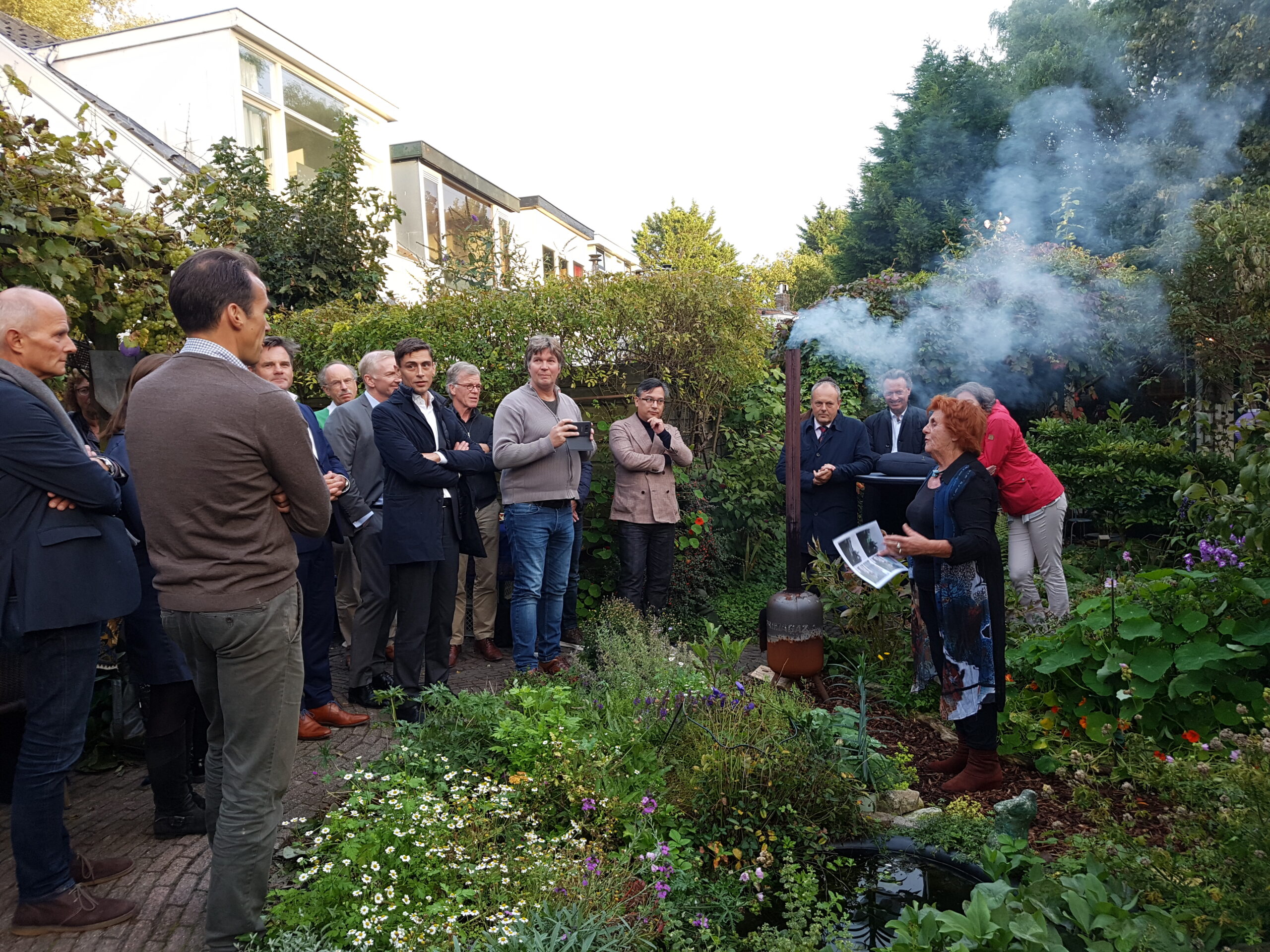 De laatste stop van de collegetoer was in de achtertuin van wijkbewoner Hilde Jansen. Om aan de wethouders te kunnen laten zien wat de nieuwbouw op het Pasmanterrein betekent voor hun woongenot. Hilde Jansen en Huib Ribbers dachten dat de nieuwbouw niet hoger zou worden dan de bestaande gebouwen. Maar ze vergisten zich in begrippen goothoogte en bouwhoogte en dreigen nu veel zon en lichtinval te verliezen door de bouw van een kap op de eerste verdieping.  De buurtbewoners zijn in gesprek met de nieuwe eigenaar en hopen tot een gezamenlijke oplossing te komen.