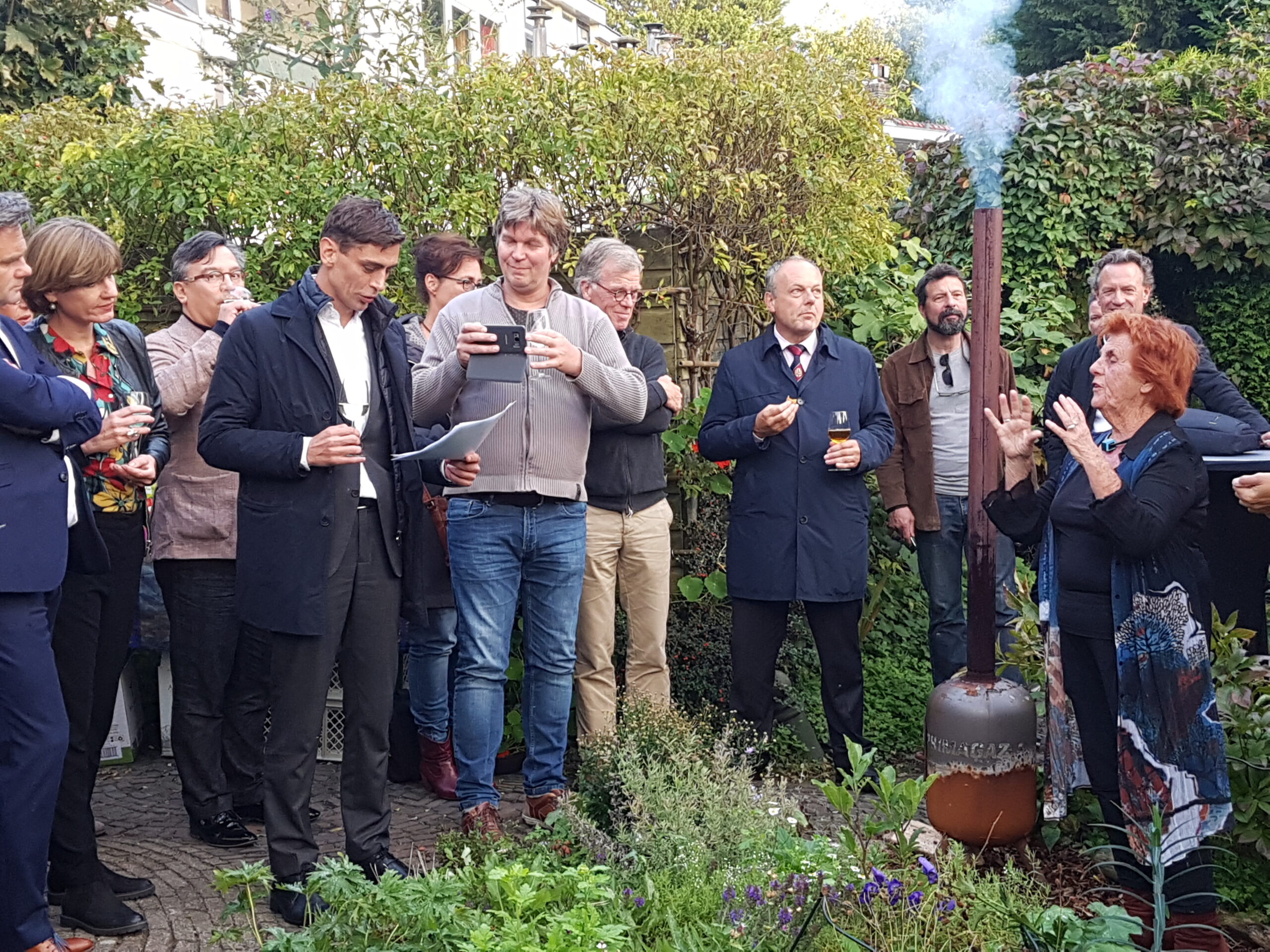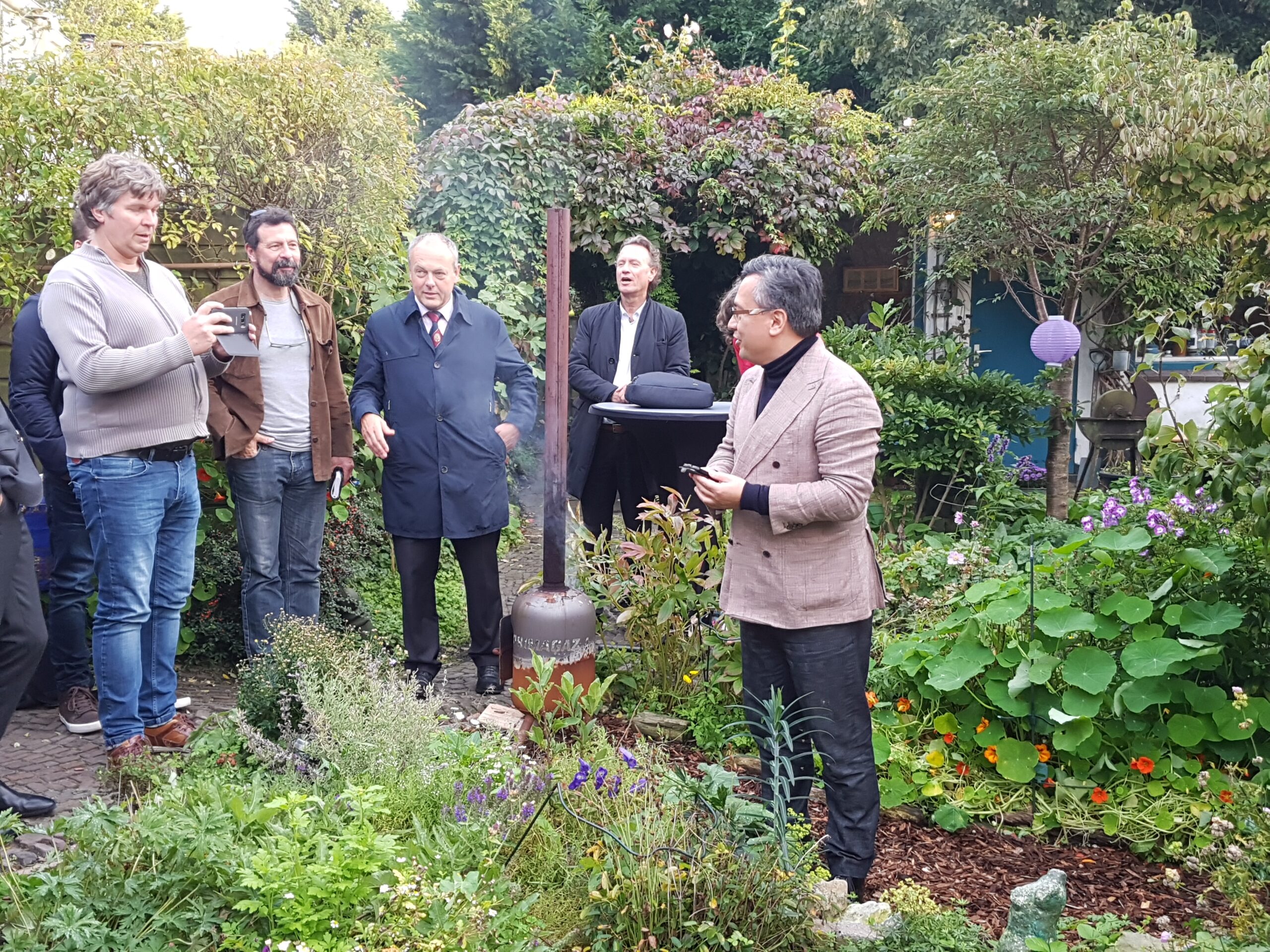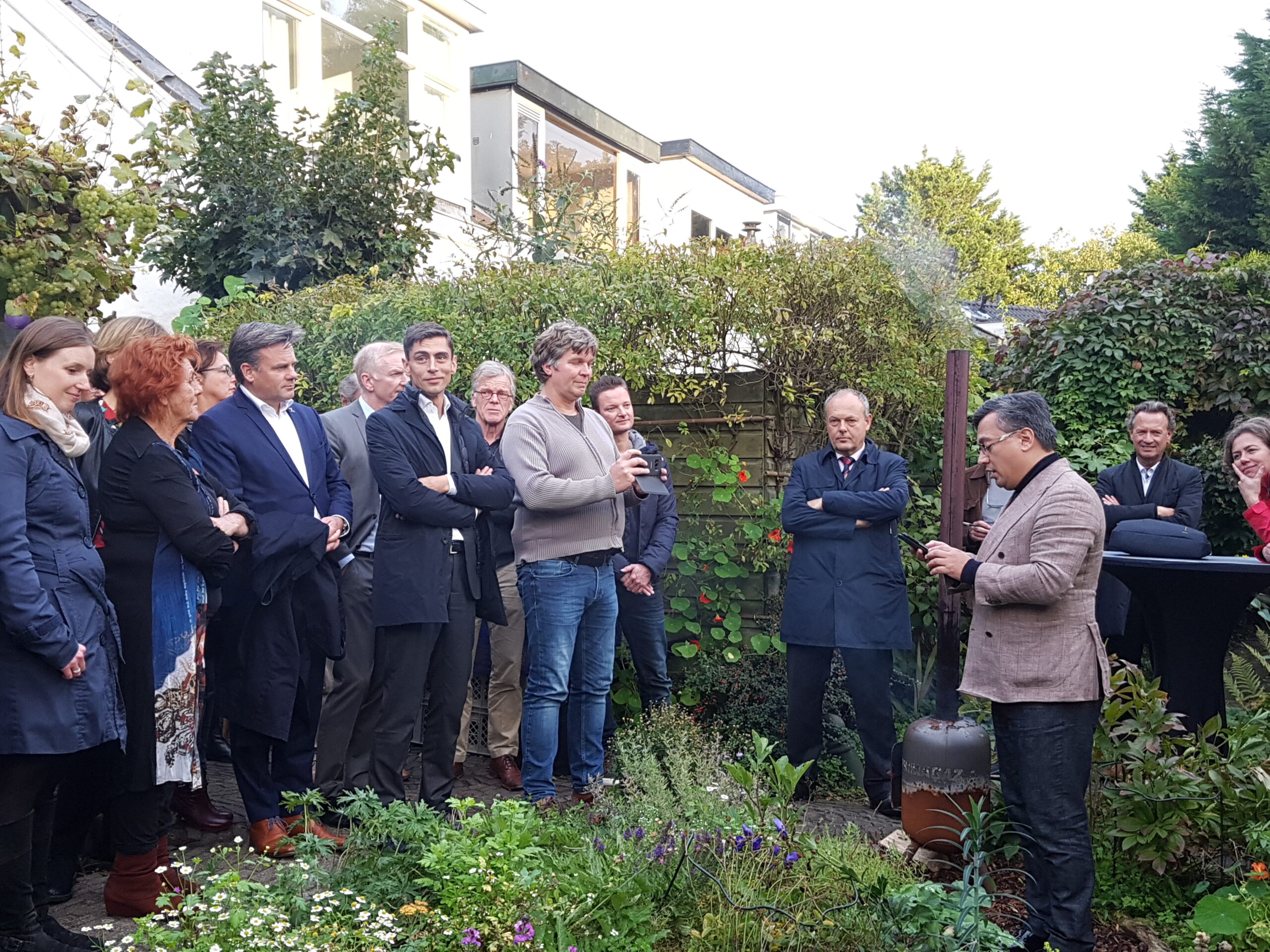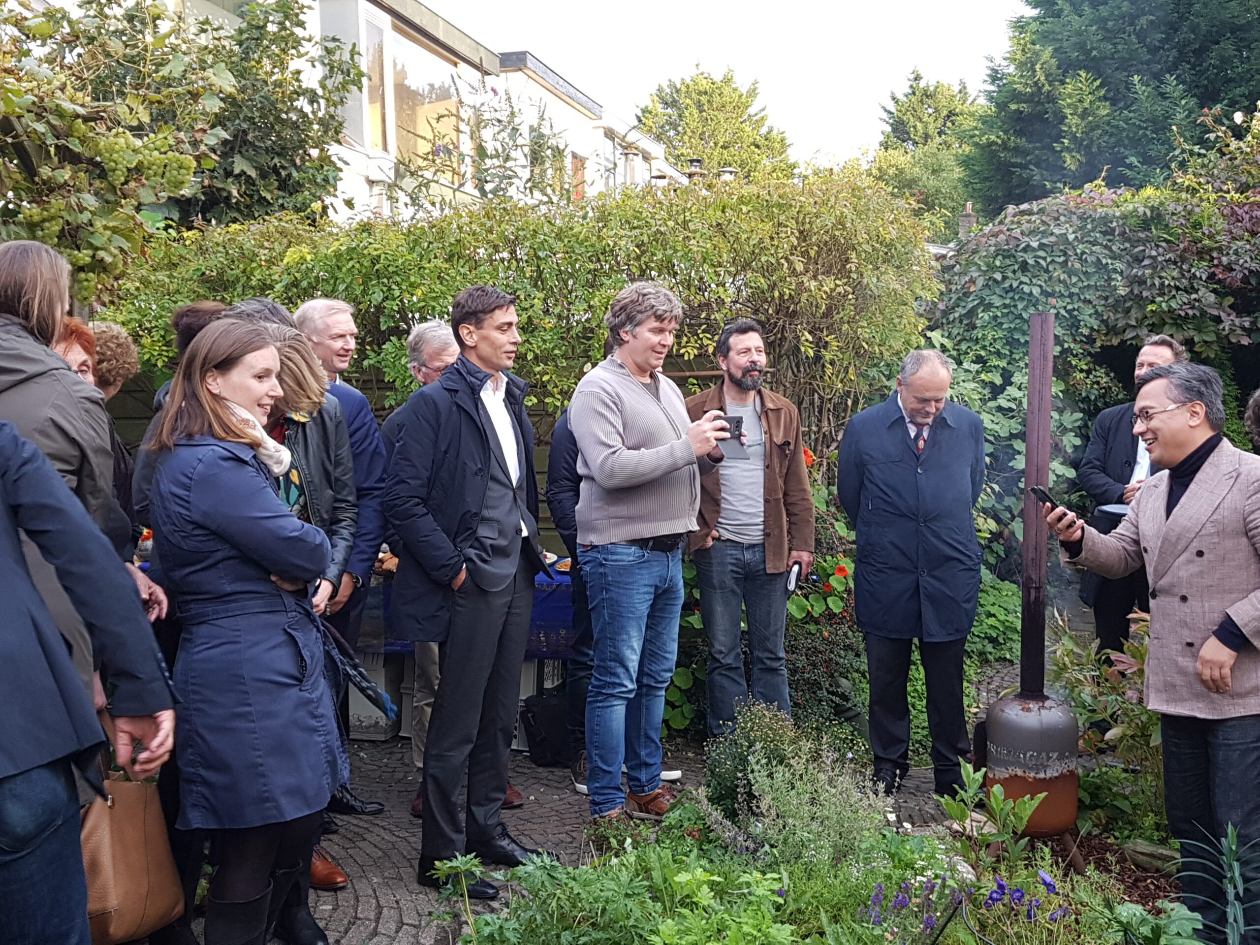 De laatste stop van de collegetoer was in de achtertuin van wijkbewoner Hilde Jansen. Om aan de wethouders te kunnen laten zien wat de nieuwbouw op het Pasmanterrein betekent voor hun woongenot. Hilde Jansen en Huib Ribbers dachten dat de nieuwbouw niet hoger zou worden dan de bestaande gebouwen. Maar ze vergisten zich in begrippen goothoogte en bouwhoogte en dreigen nu veel zon en lichtinval te verliezen door de bouw van een kap op de eerste verdieping.  De buurtbewoners zijn in gesprek met de nieuwe eigenaar en hopen tot een gezamenlijke oplossing te komen.