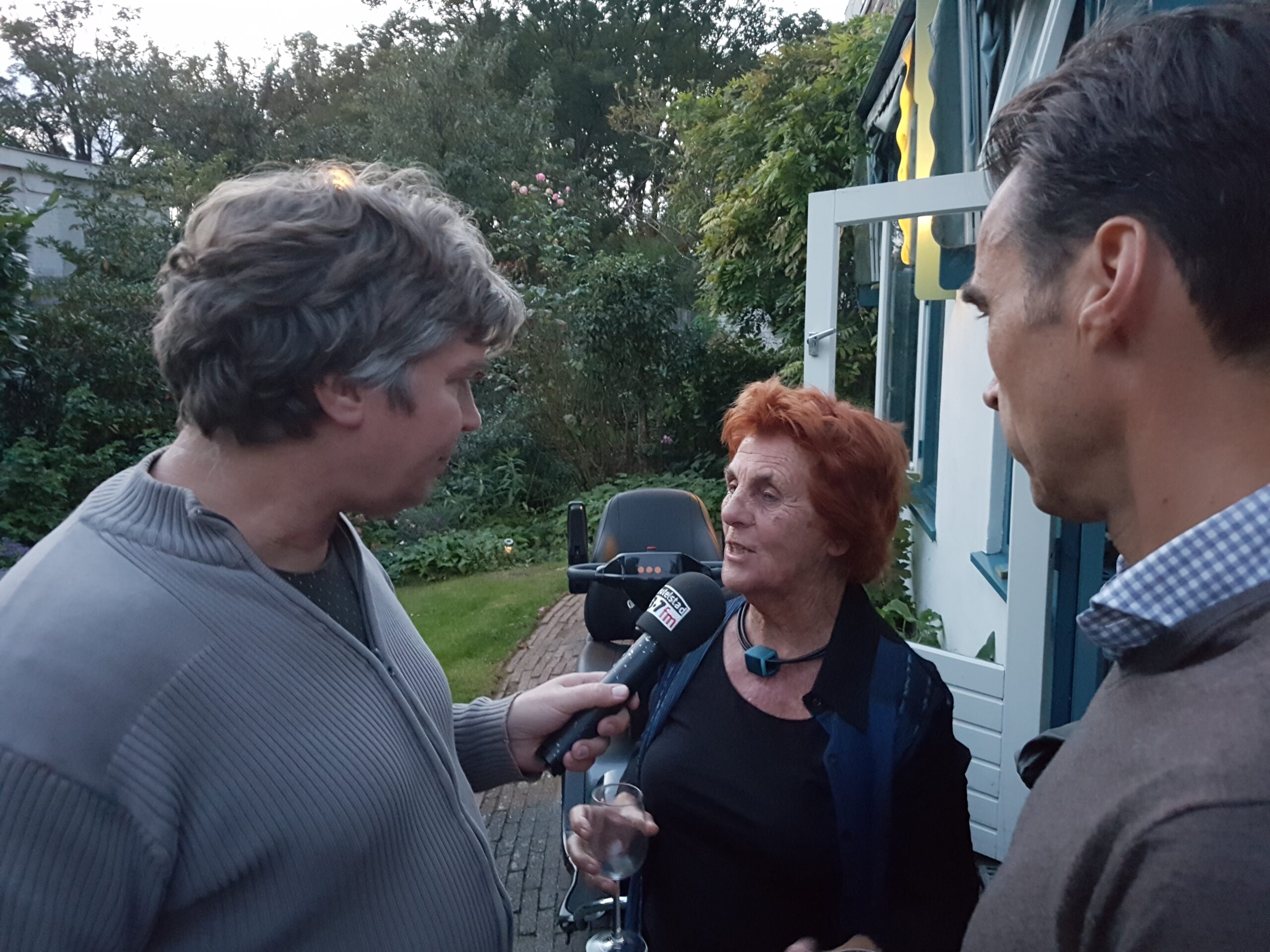 Chris de Waard in gesprek met Hilde Jansen, Huib Ribbers en wethouder Laudy over het Pasmanterrein.
