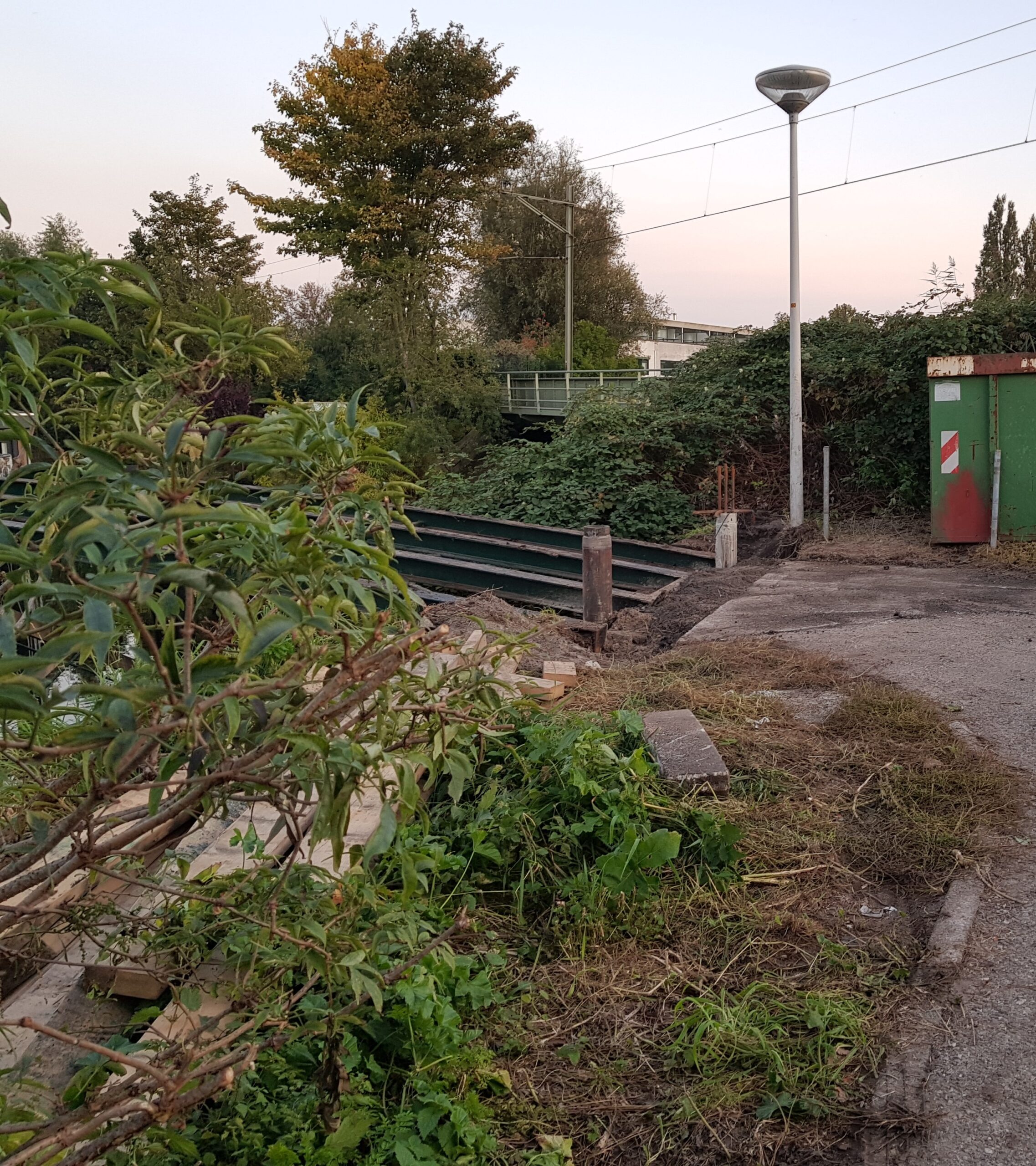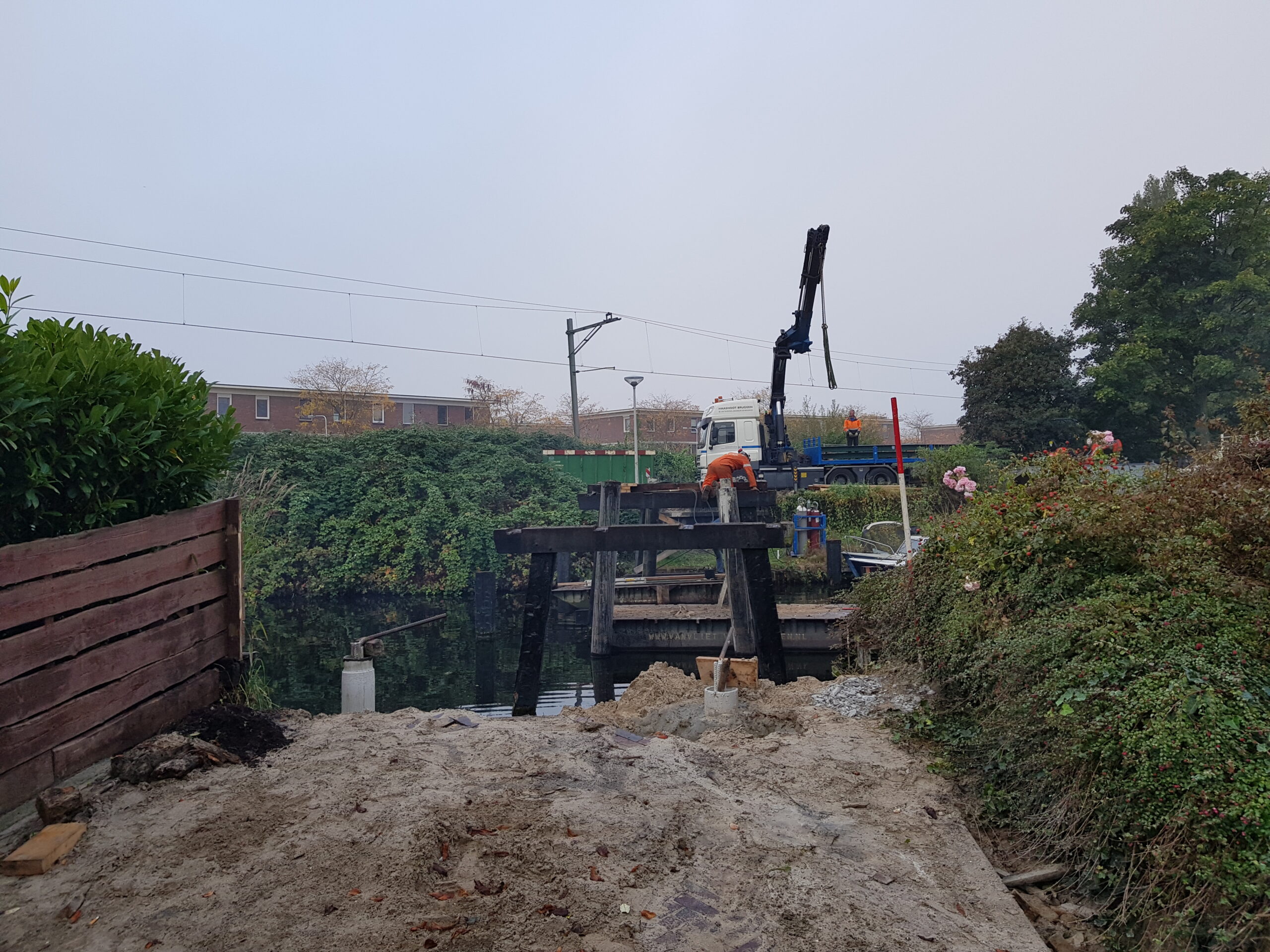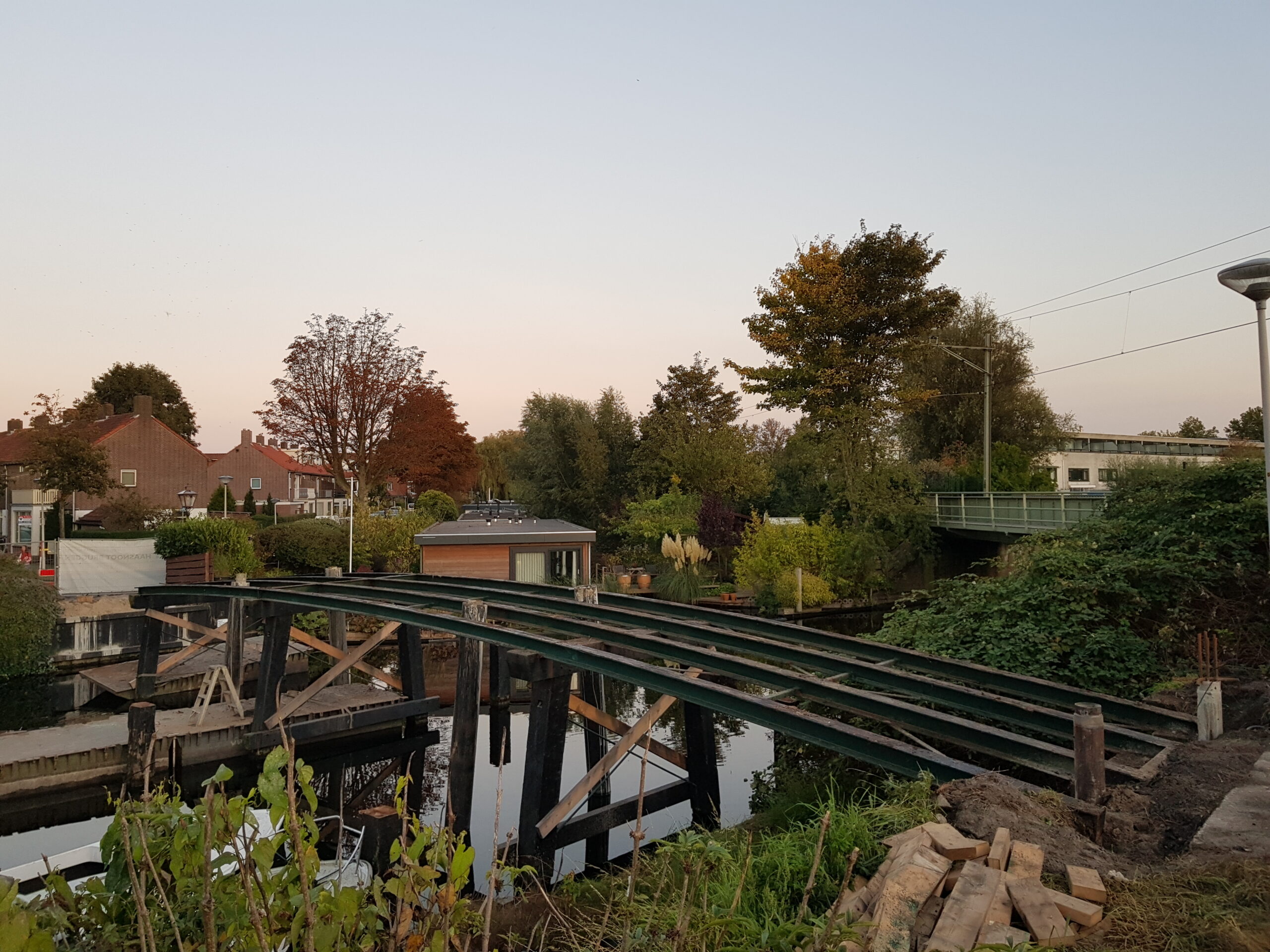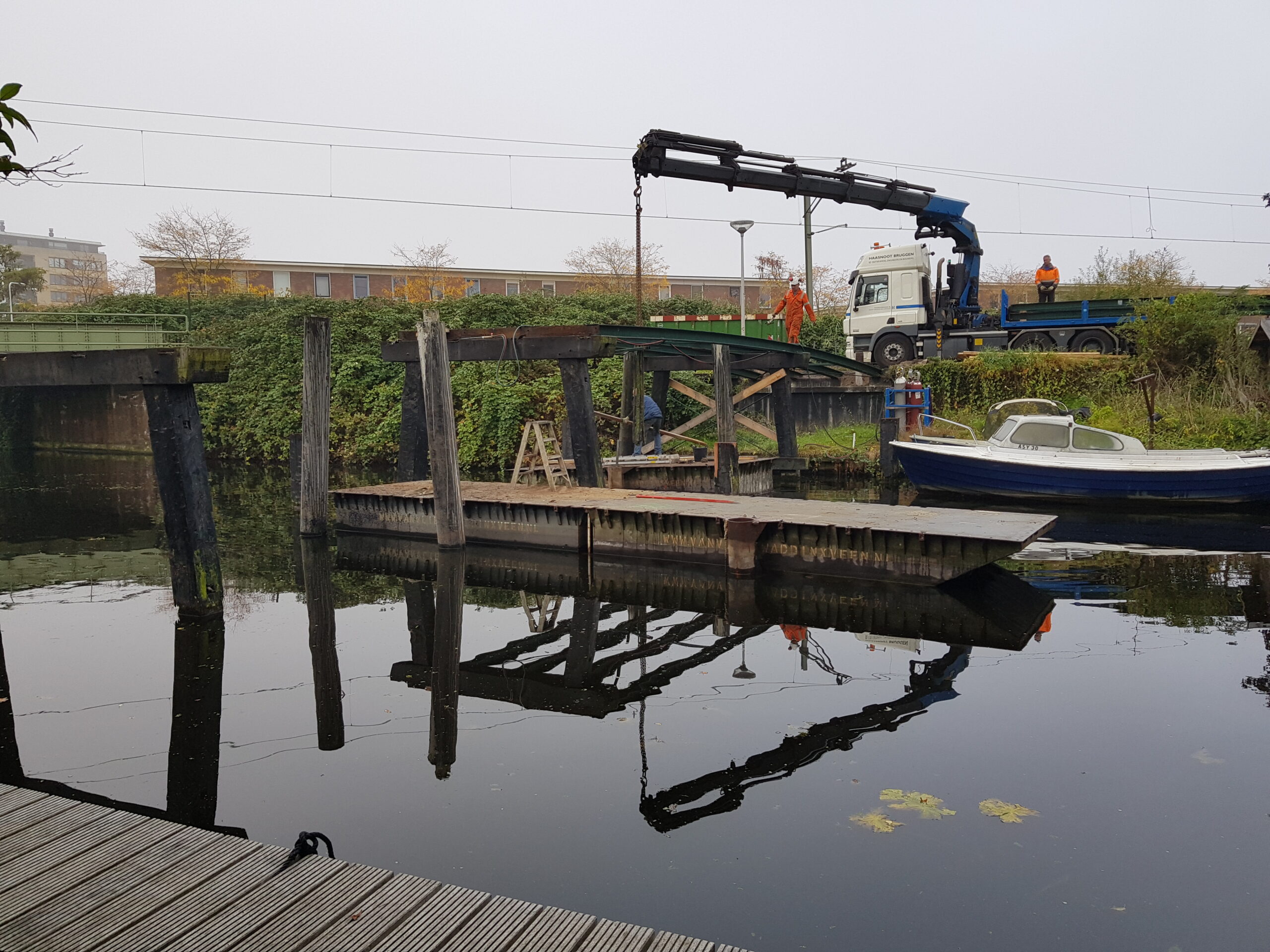 Eerst wordt de huidige brug verwijderd. Dat is nu bijna klaar. Daarna worden er nieuwe funderingspalen voor de aangebracht. Om geluids- en trillingsoverlast te voorkomen wordt er gebruik gemaakt van zogenaamde schroefpalen. Daarna worden de nieuwe brug en de beschoeiing geplaatst.