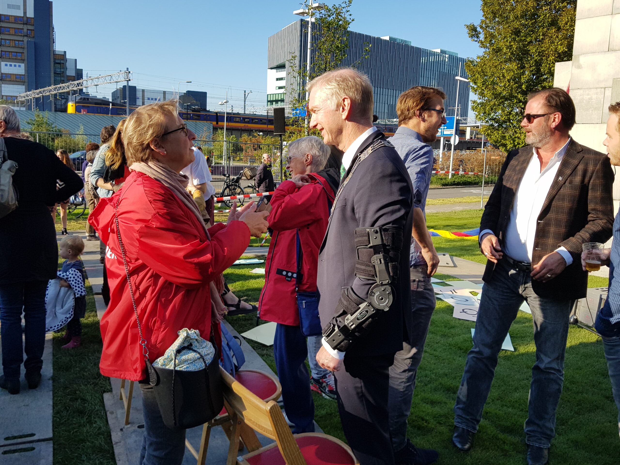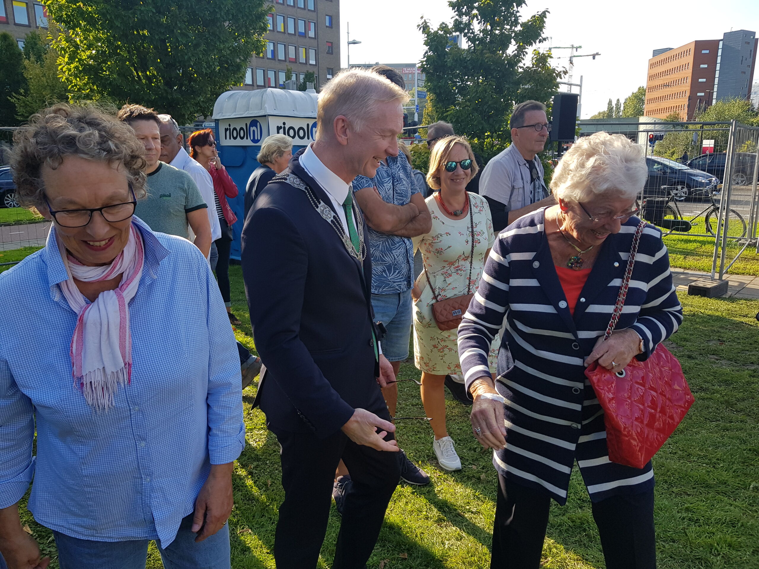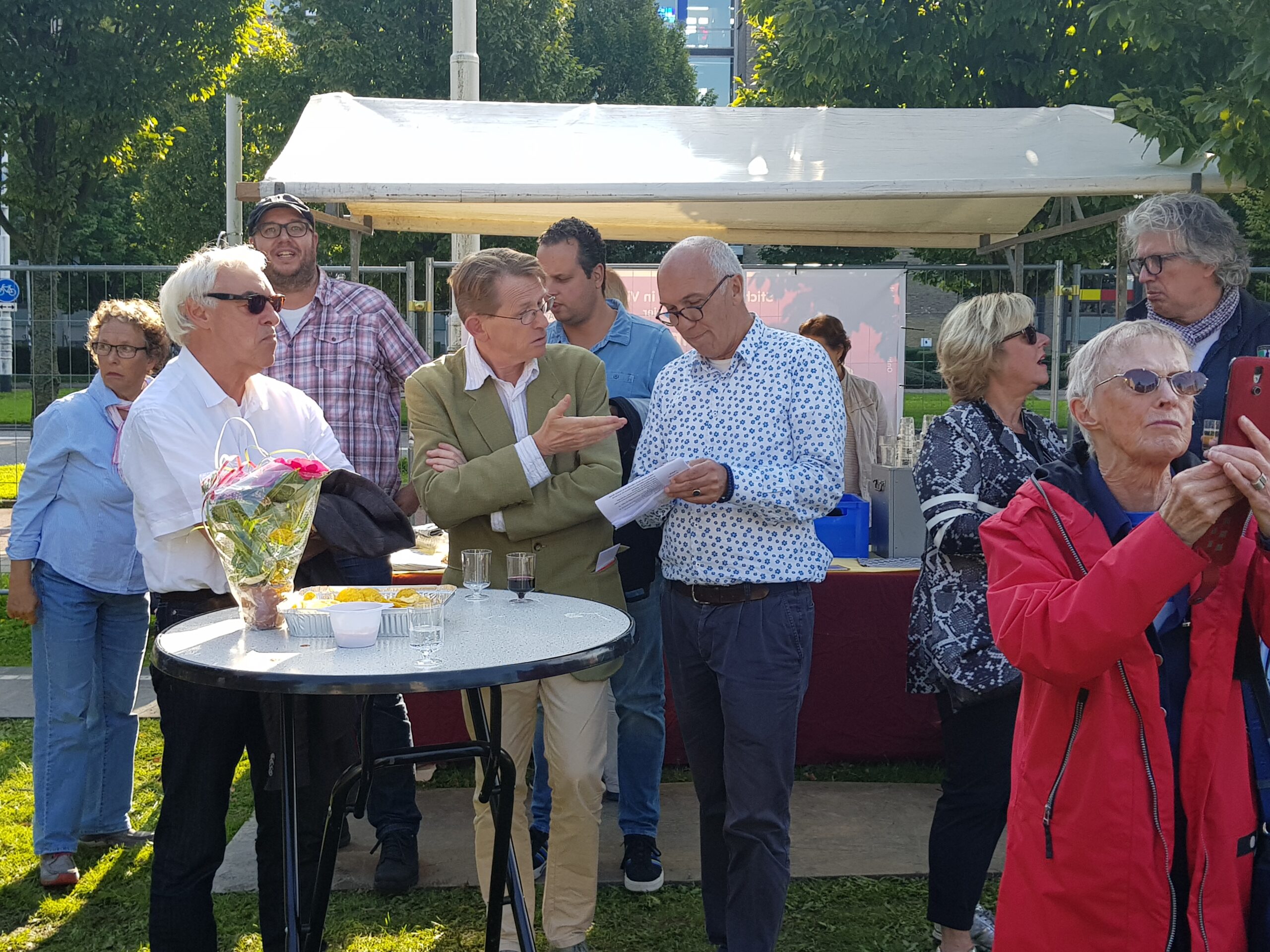 Chris de Waard sprak na de overdracht met initiatiefnemers van het eerste uur Petra Hoogeveen en Ron Mittelmeijer, GroenLinks-fractievoorzitter Walter van Peijpe, de huidige cultuurwethouder Robert Strijk en zijn voorganger Jan-Jaap de Haan en met projectleider Arjen Pels Rijcken.